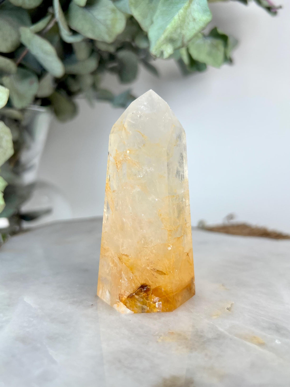Grade AA Golden Healer Tower - Natural Hematoid Quartz for Ultimate Healing, Abundance, and High Energy Frequency GHC50, 154g