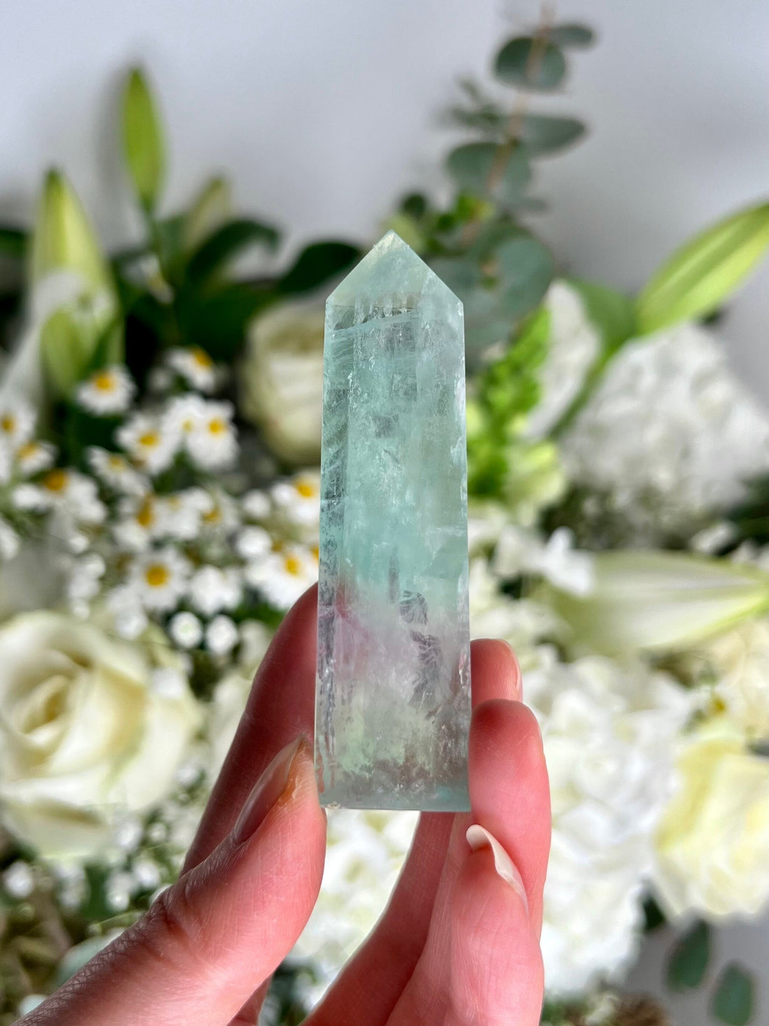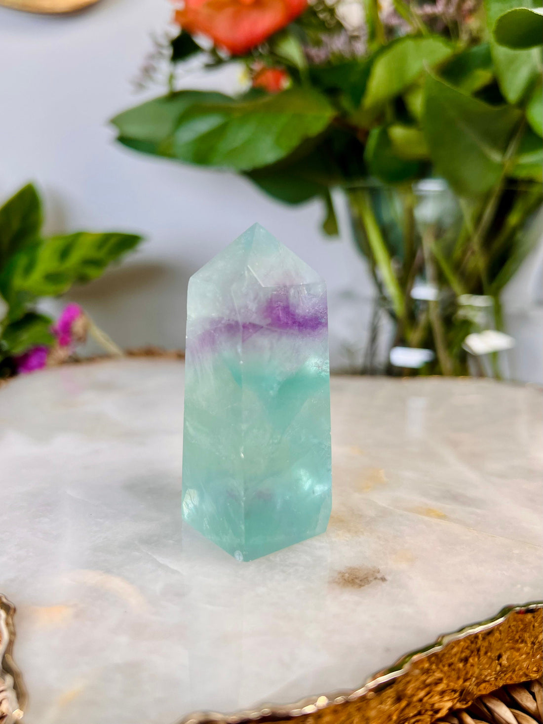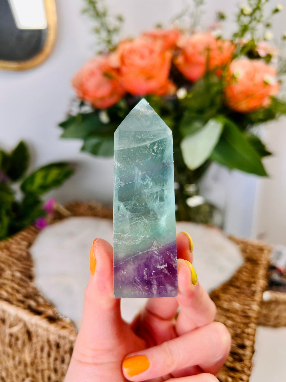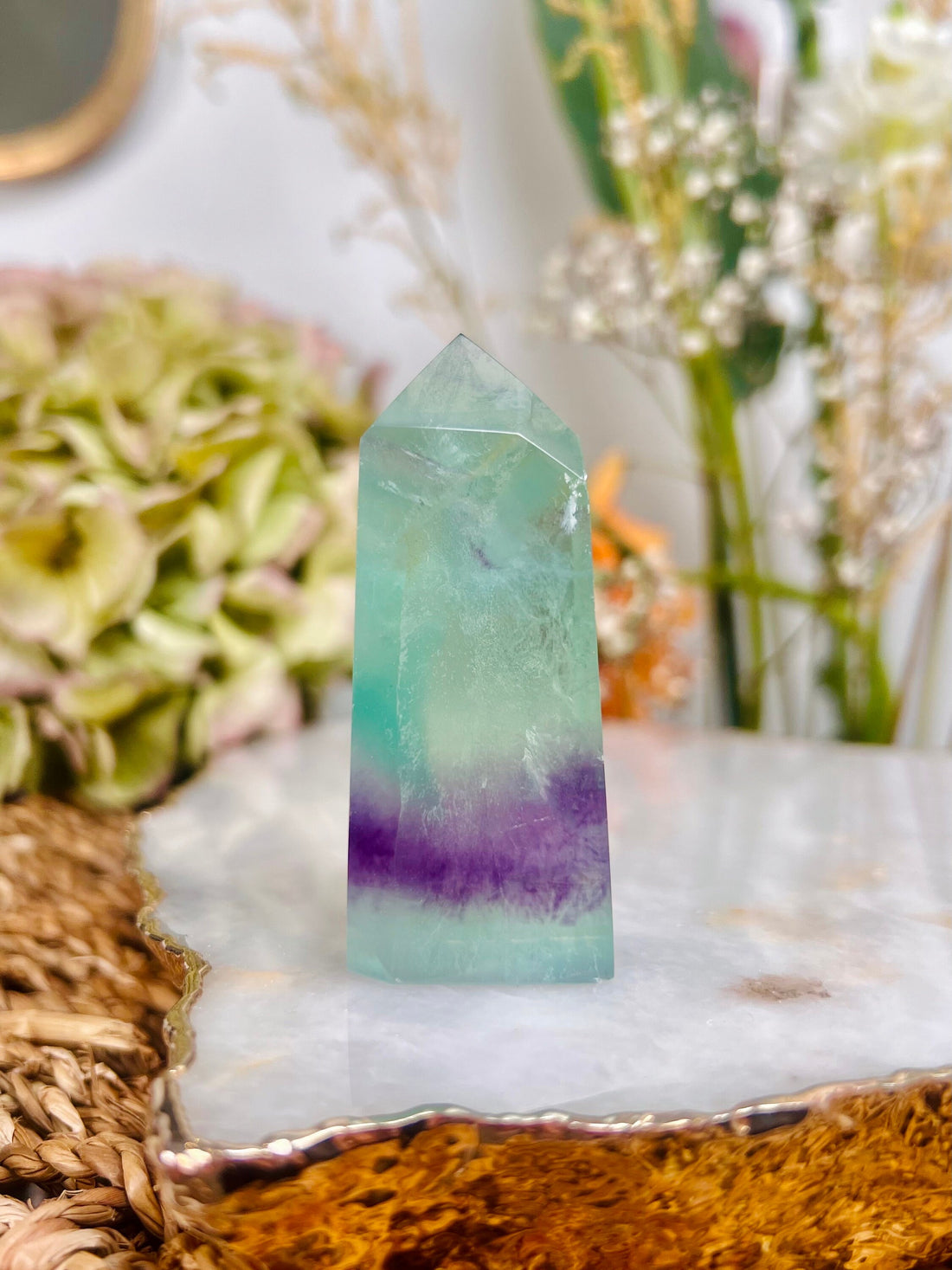 Grade AAA Rainbow Fluorite Tower 82g, Green Purple Fluorite, Crystal Healing Home Decor