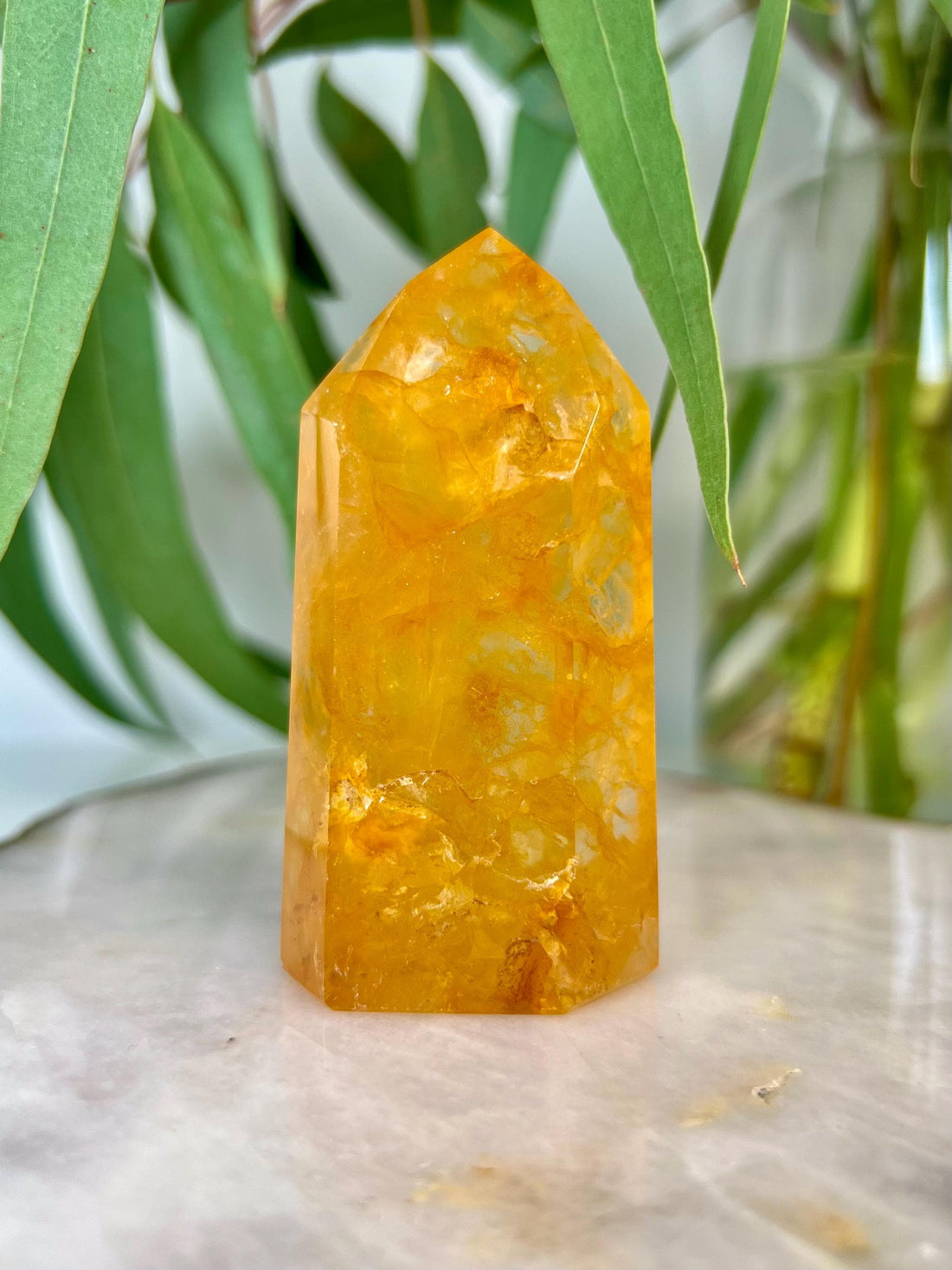 Grade AAA Golden Healer Tower - Natural Hematoid Quartz for Ultimate Healing, Abundance, and High Energy Frequency GHC65, 127g