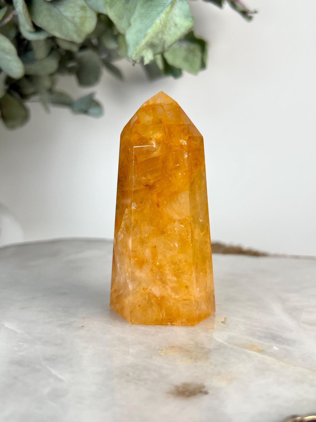 Grade AAA Golden Healer Obelisk, Natural Hematoid Quartz, Balance All Chakras, Source Energy Crystal Tower 236g GHO12