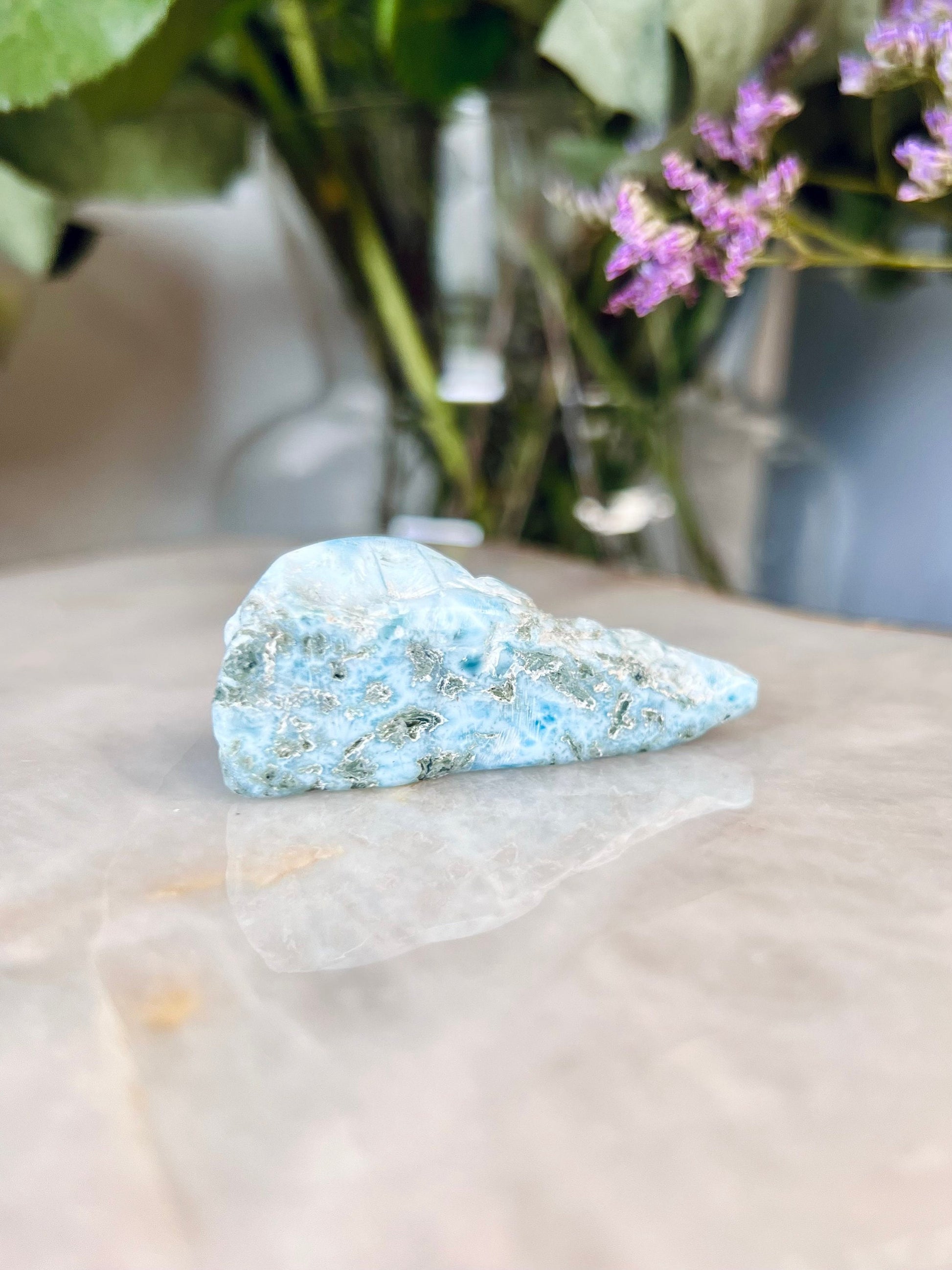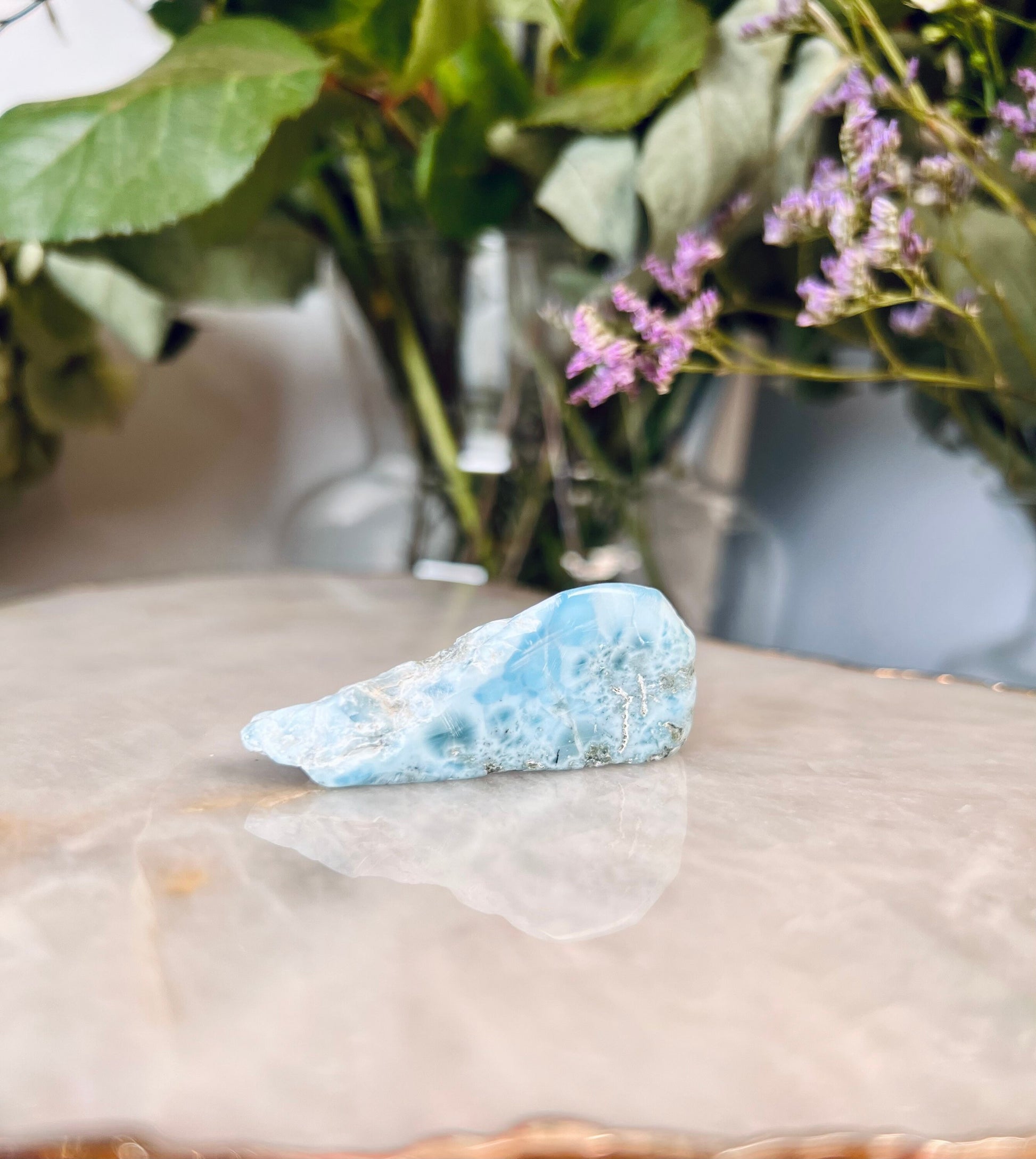 Larimar helps to heal and tone the throat. Opening up the throat chakra promotes self-confidence and encourages us to express our deepest truths and fears.