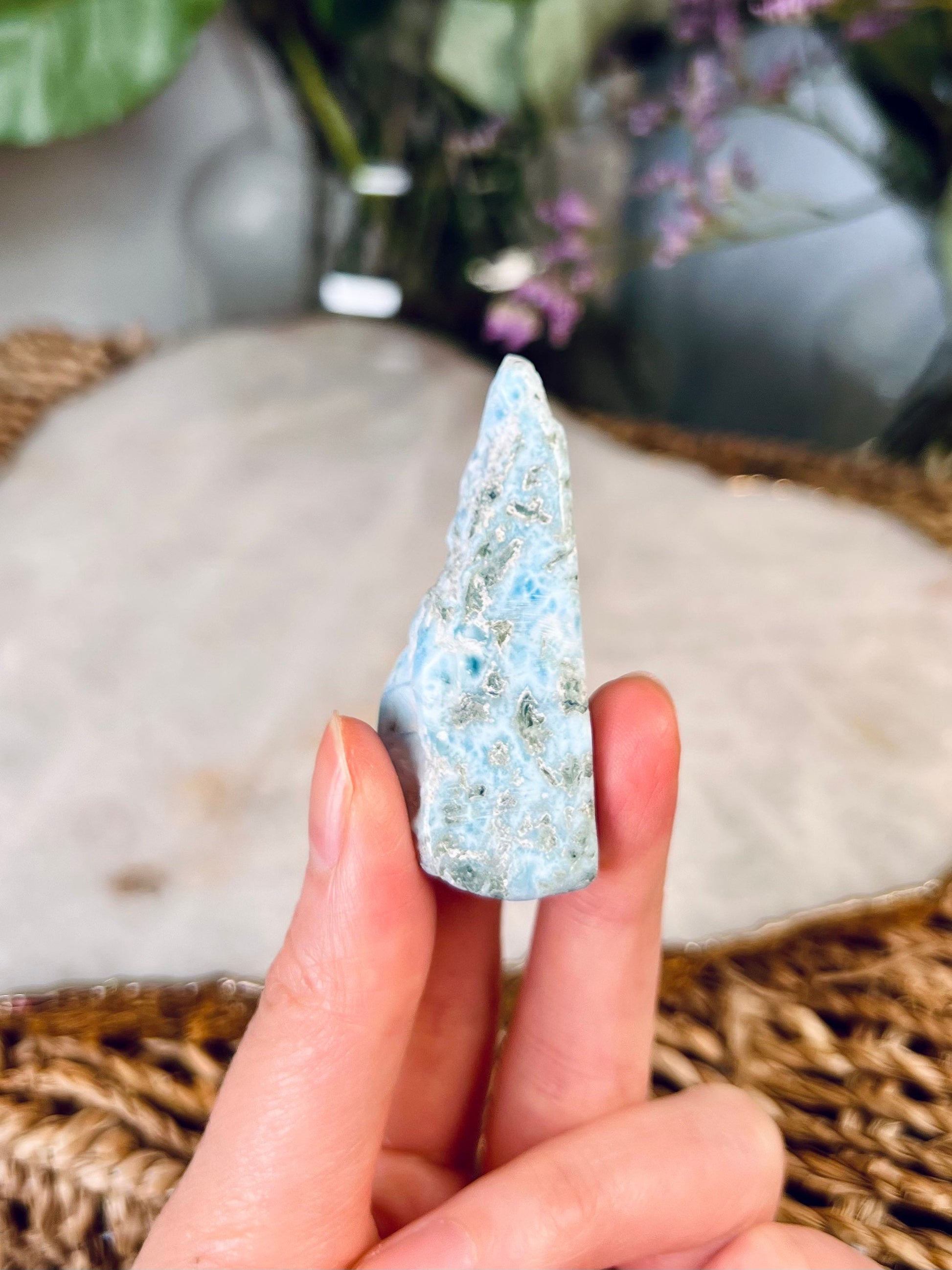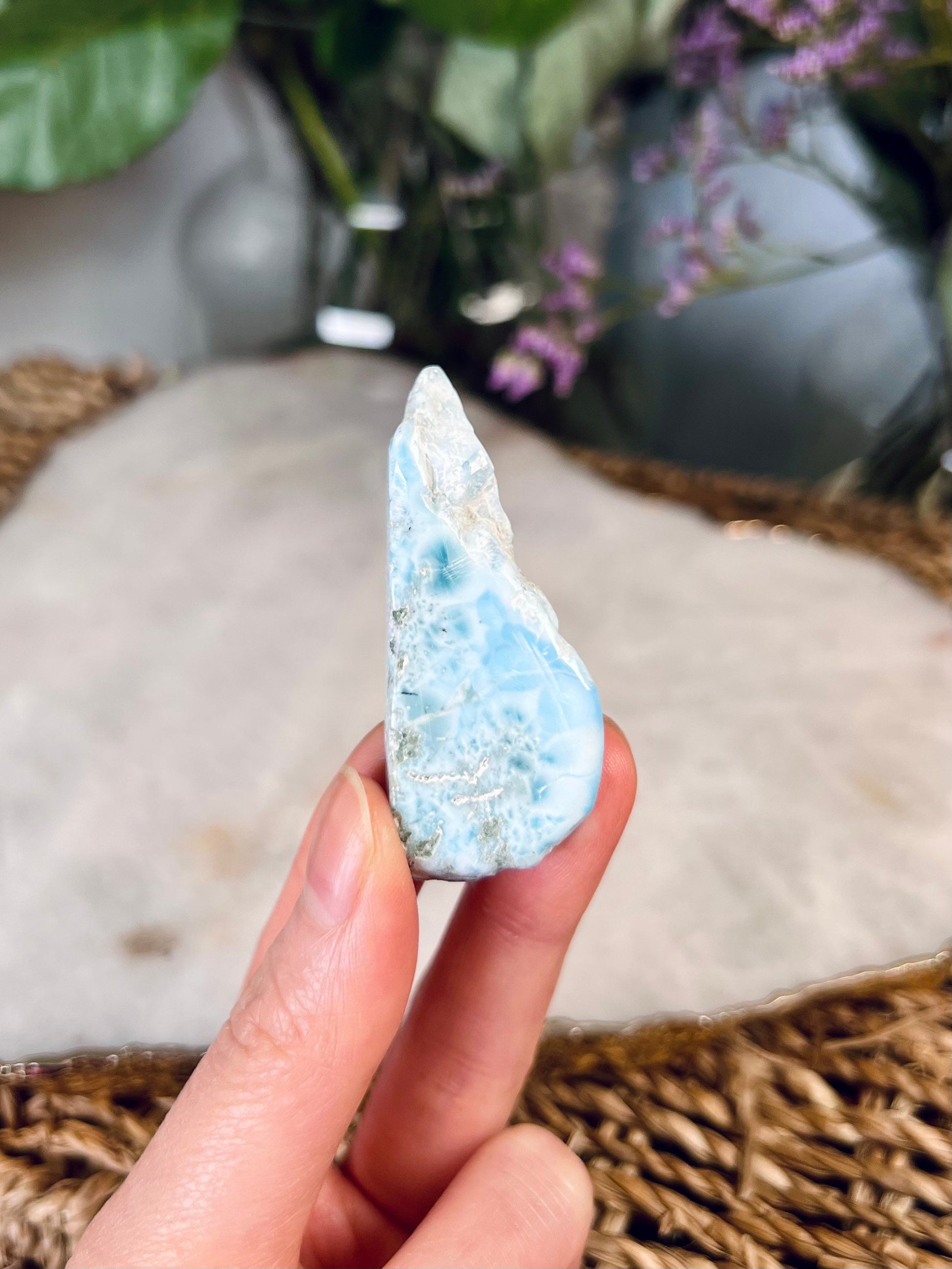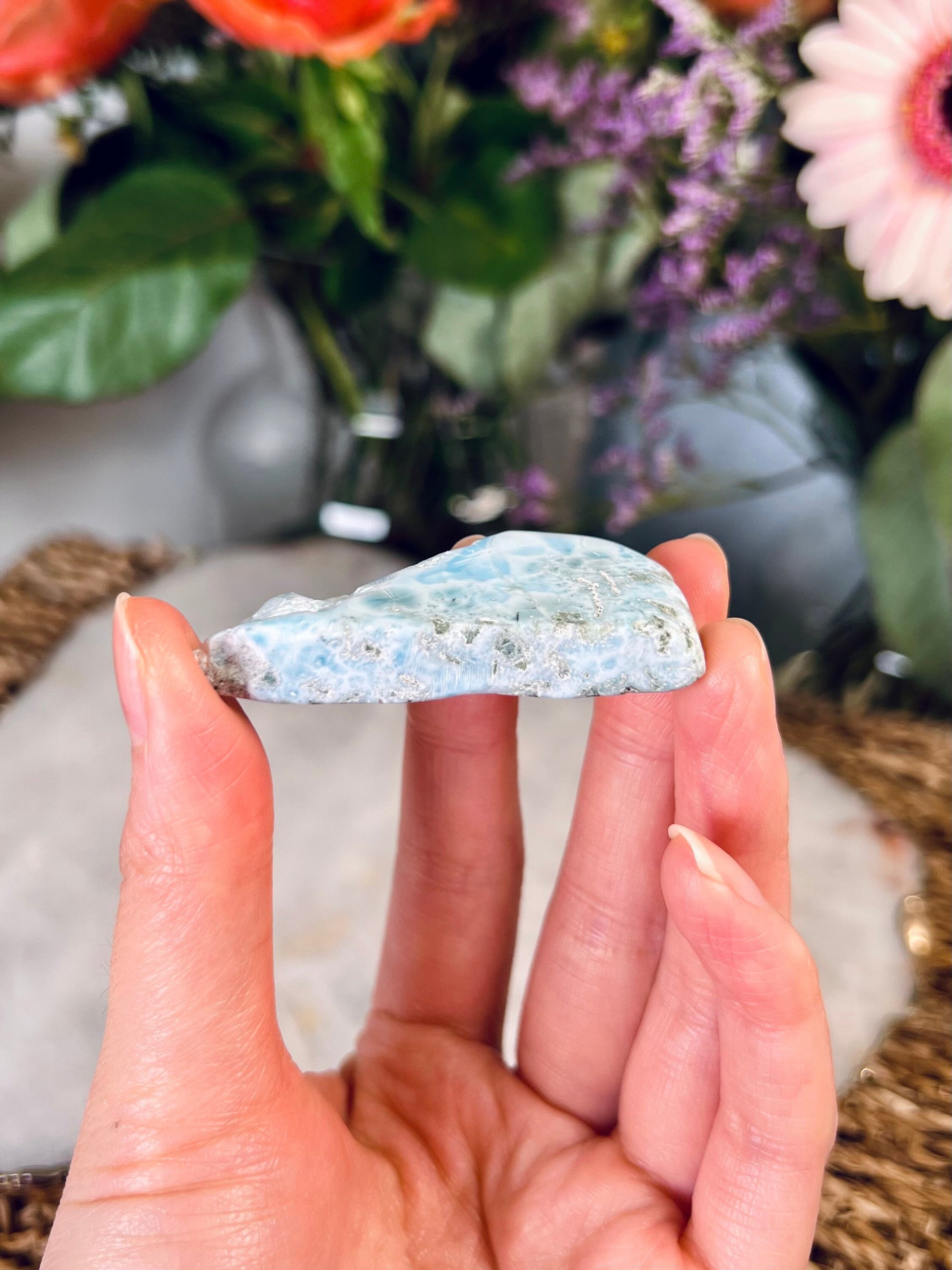 100% Natural Larimar Polished Slab from Dominican Republic, Larimar Palmstone, Earth Healing Crystal 18g