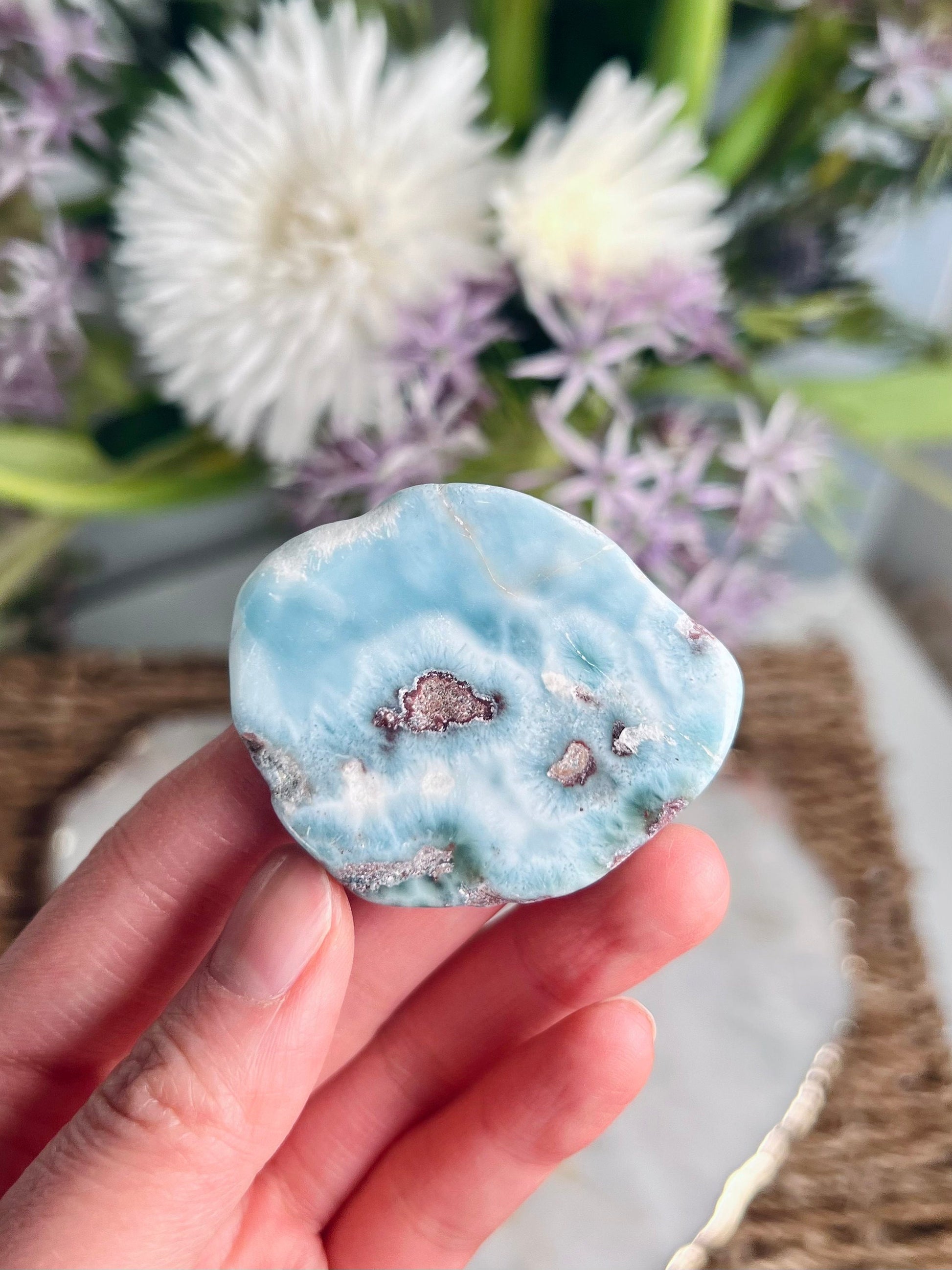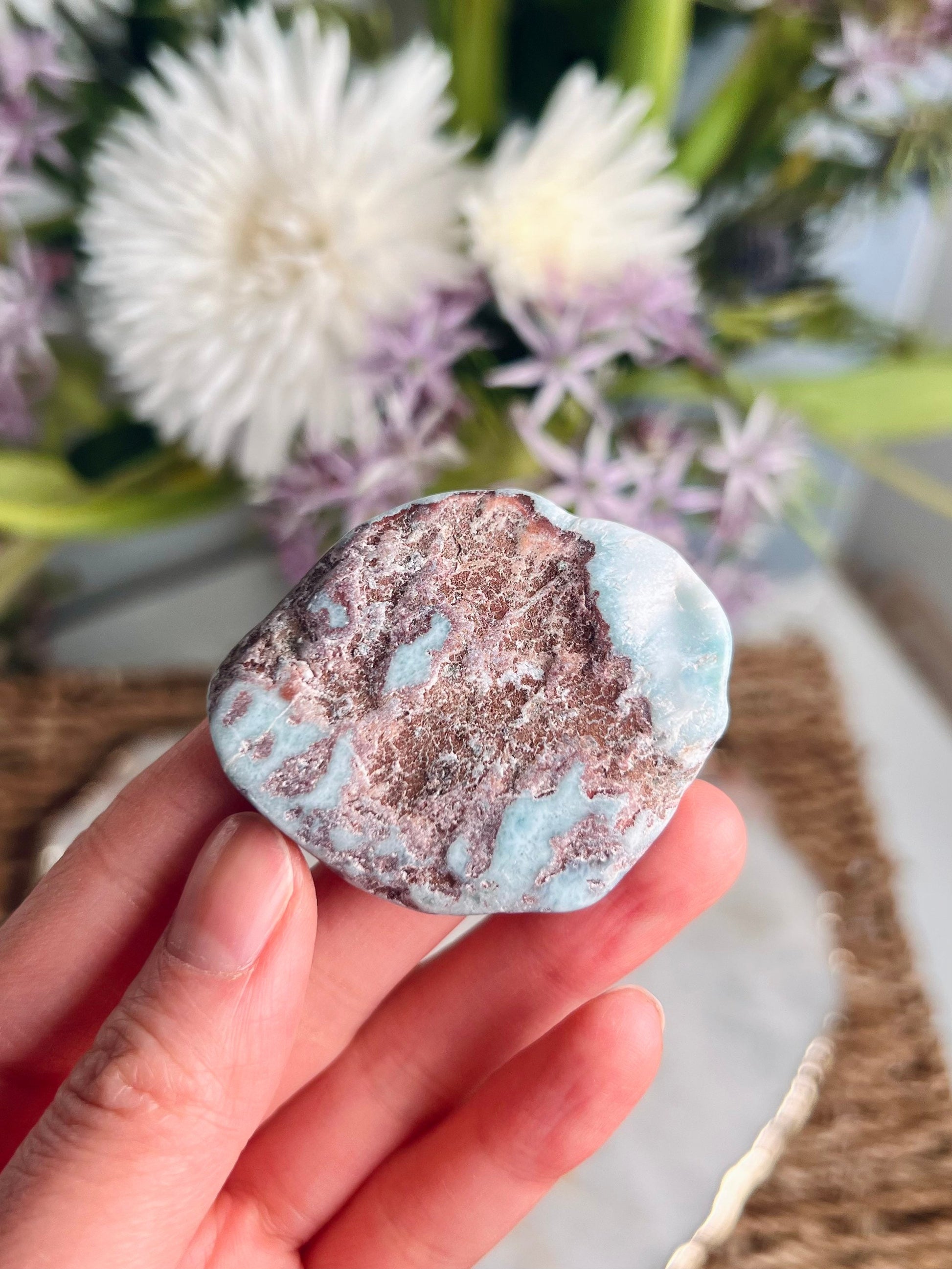 100% Natural Larimar Polished Slabs from Dominican Republic, Larimar Palmstone, Earth Healing Crystal