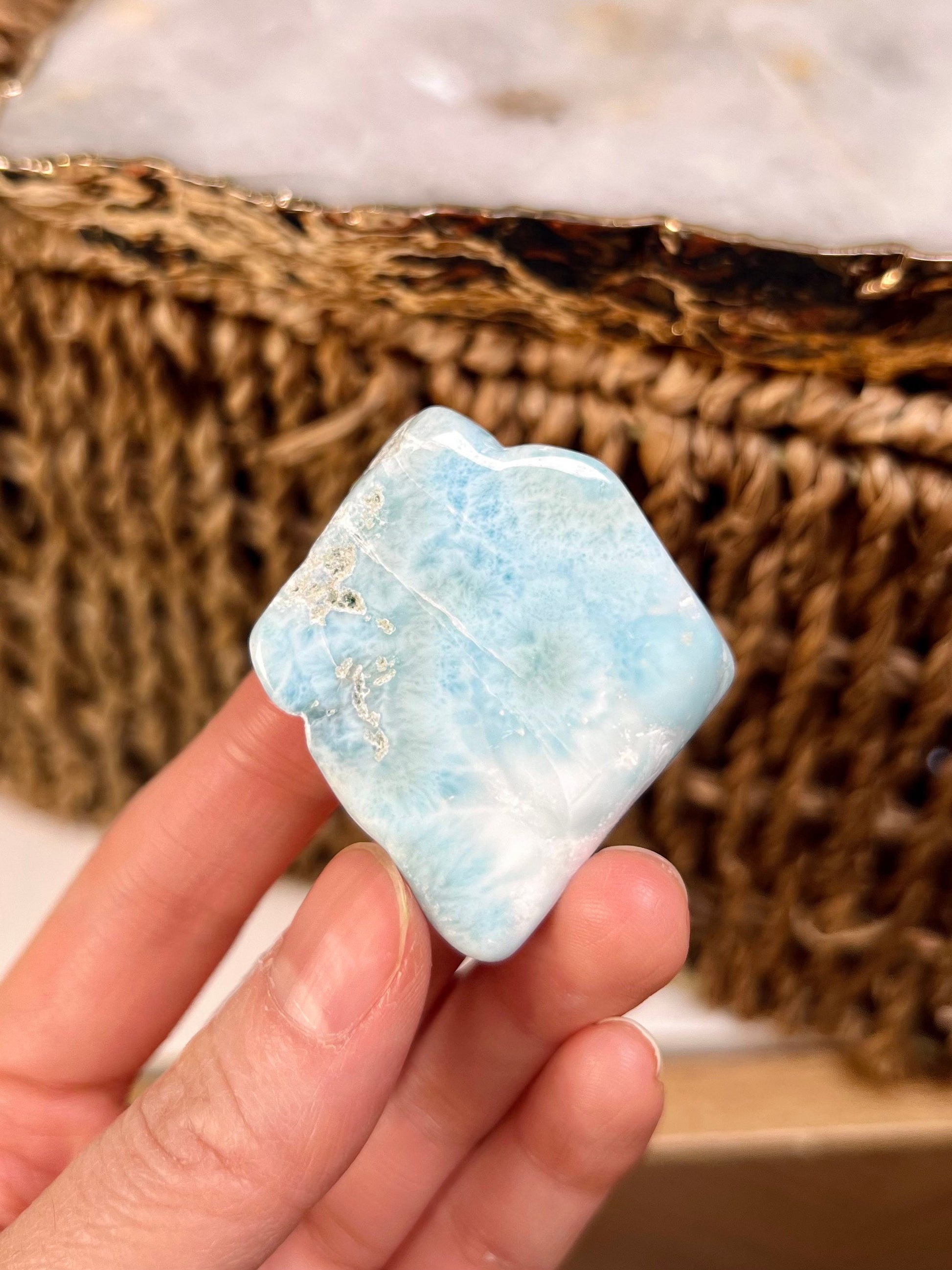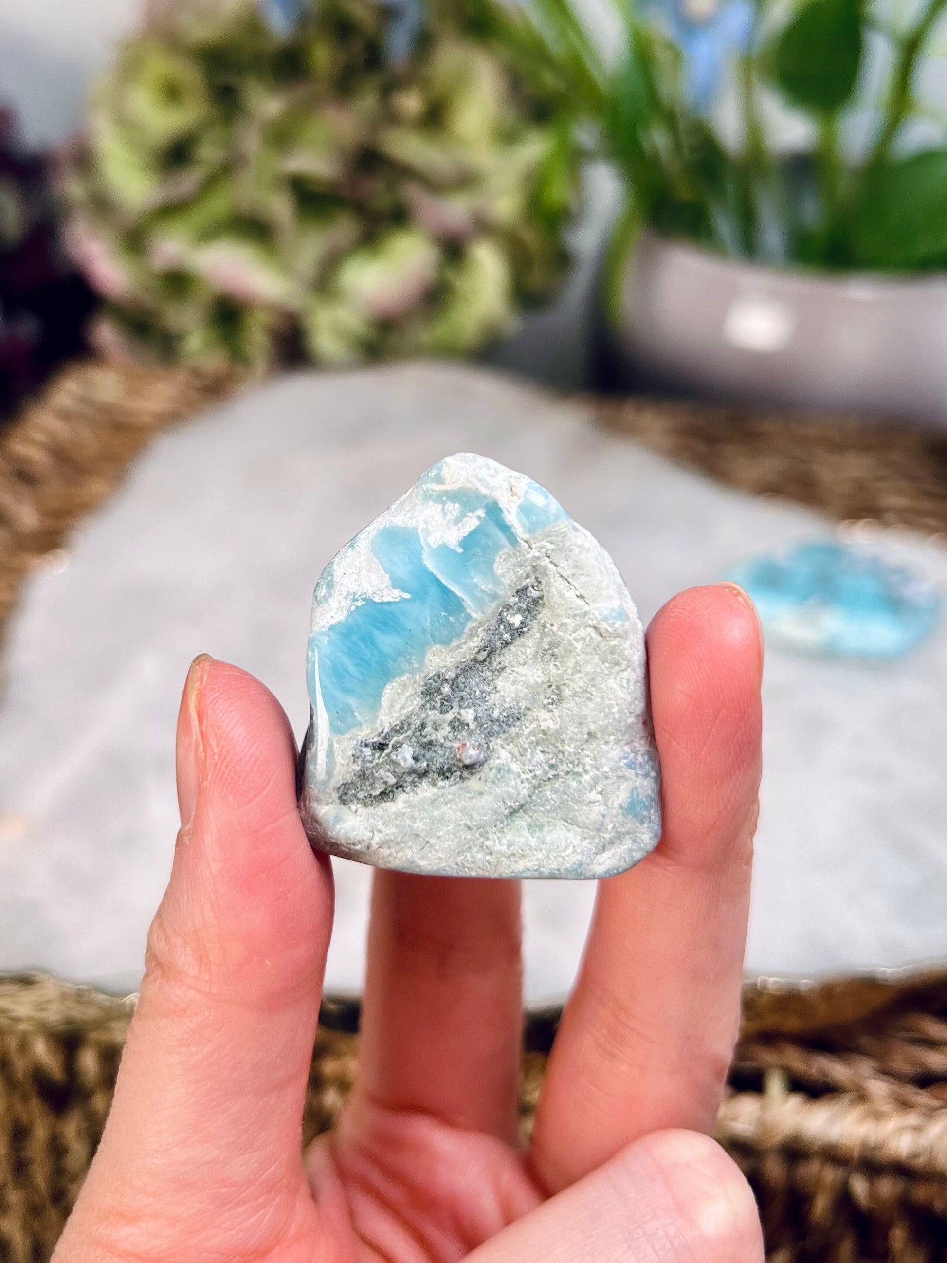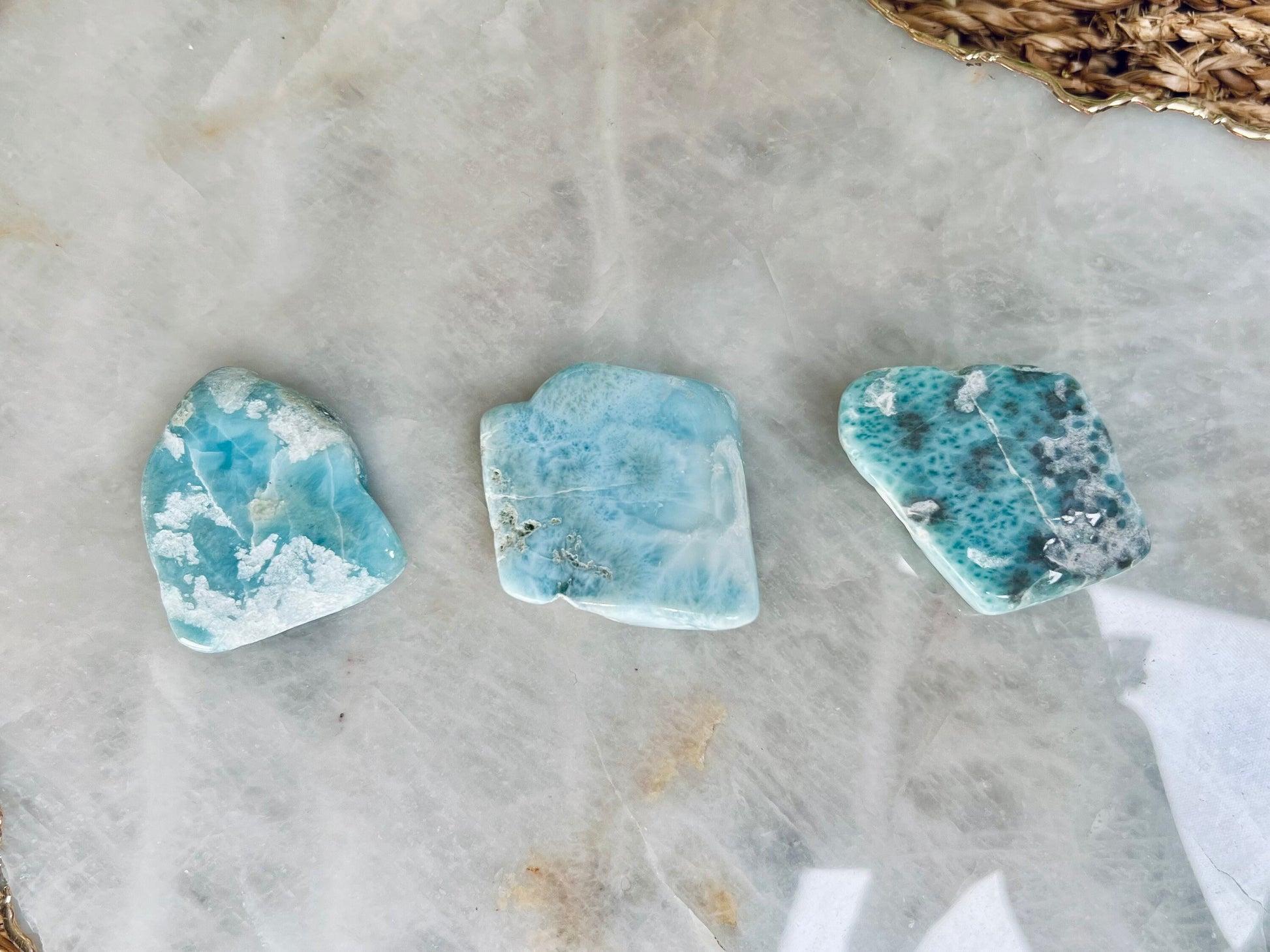 100% Natural Larimar Polished Slabs from Dominican Republic, Larimar Palmstone, Earth Healing Crystal