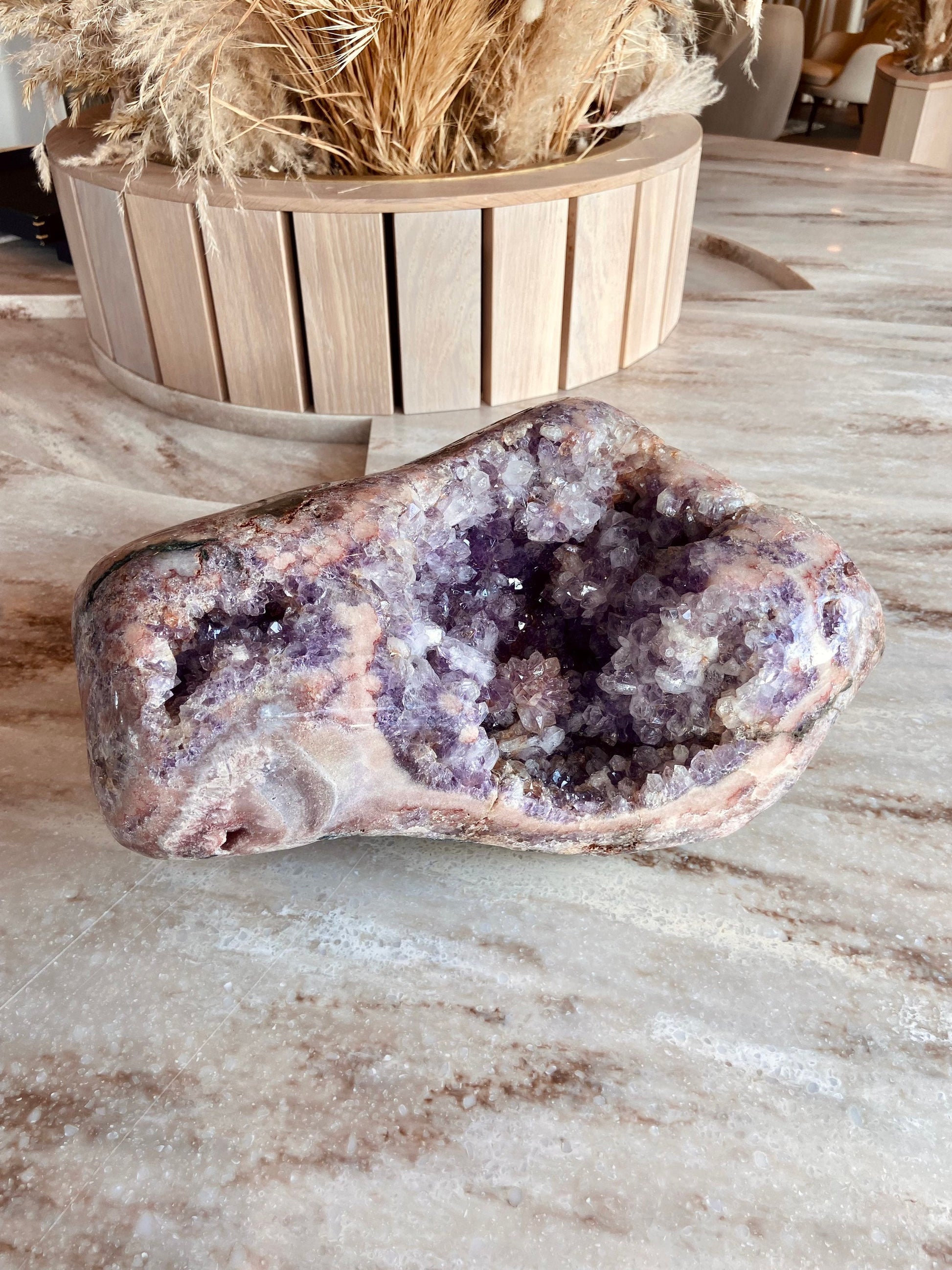 * Purple and Pink Amethyst Geodes radiate calming and peaceful vibrations, enhancing emotional balance and filling the heart with love.