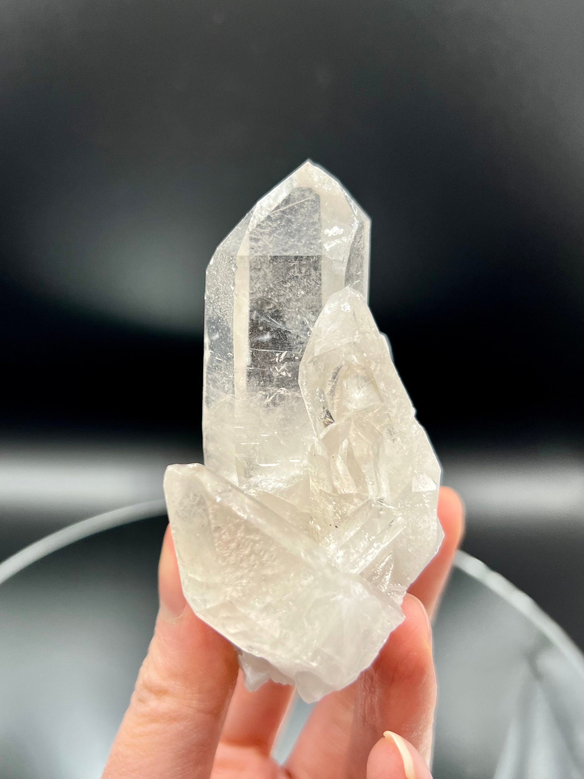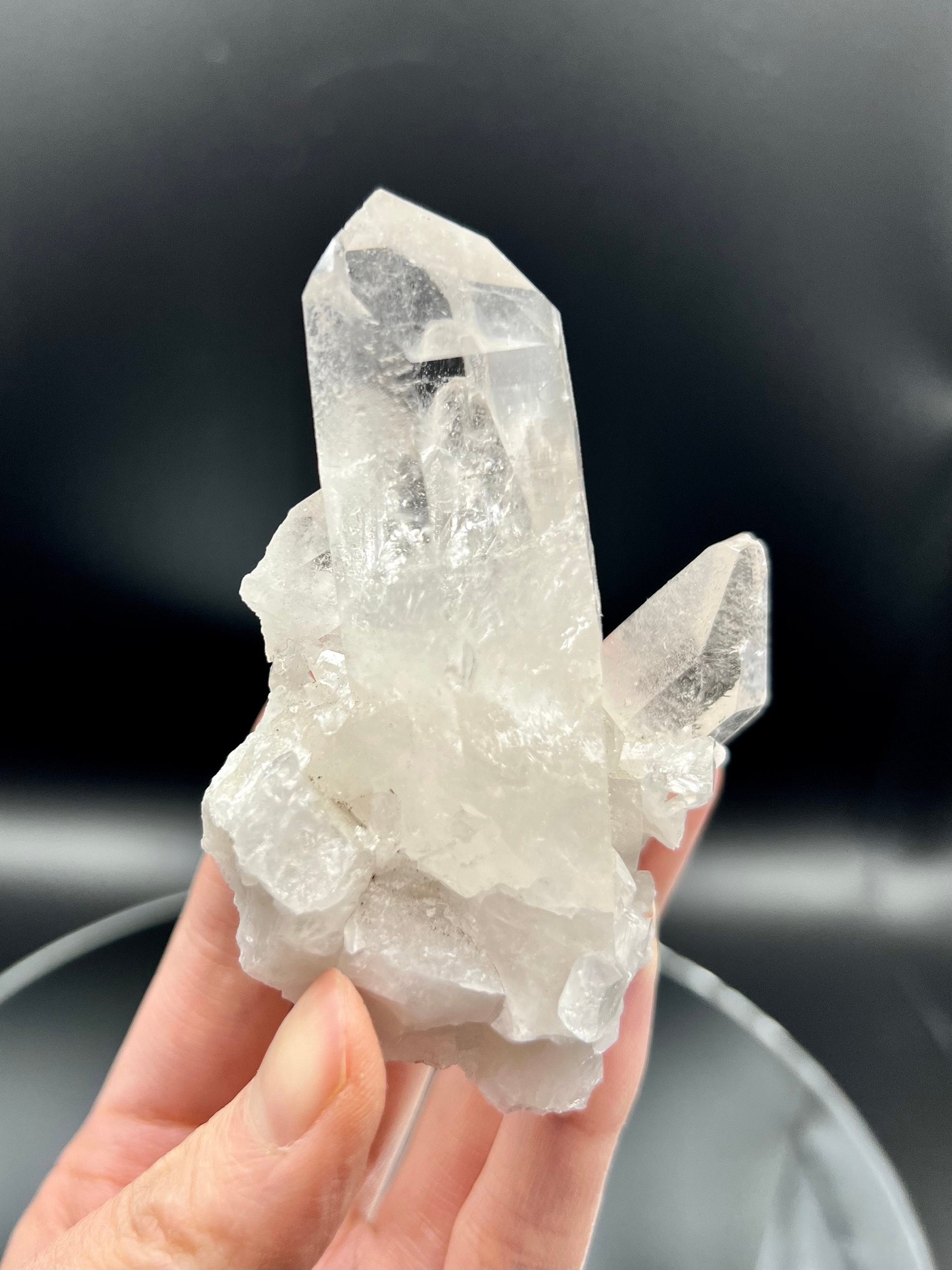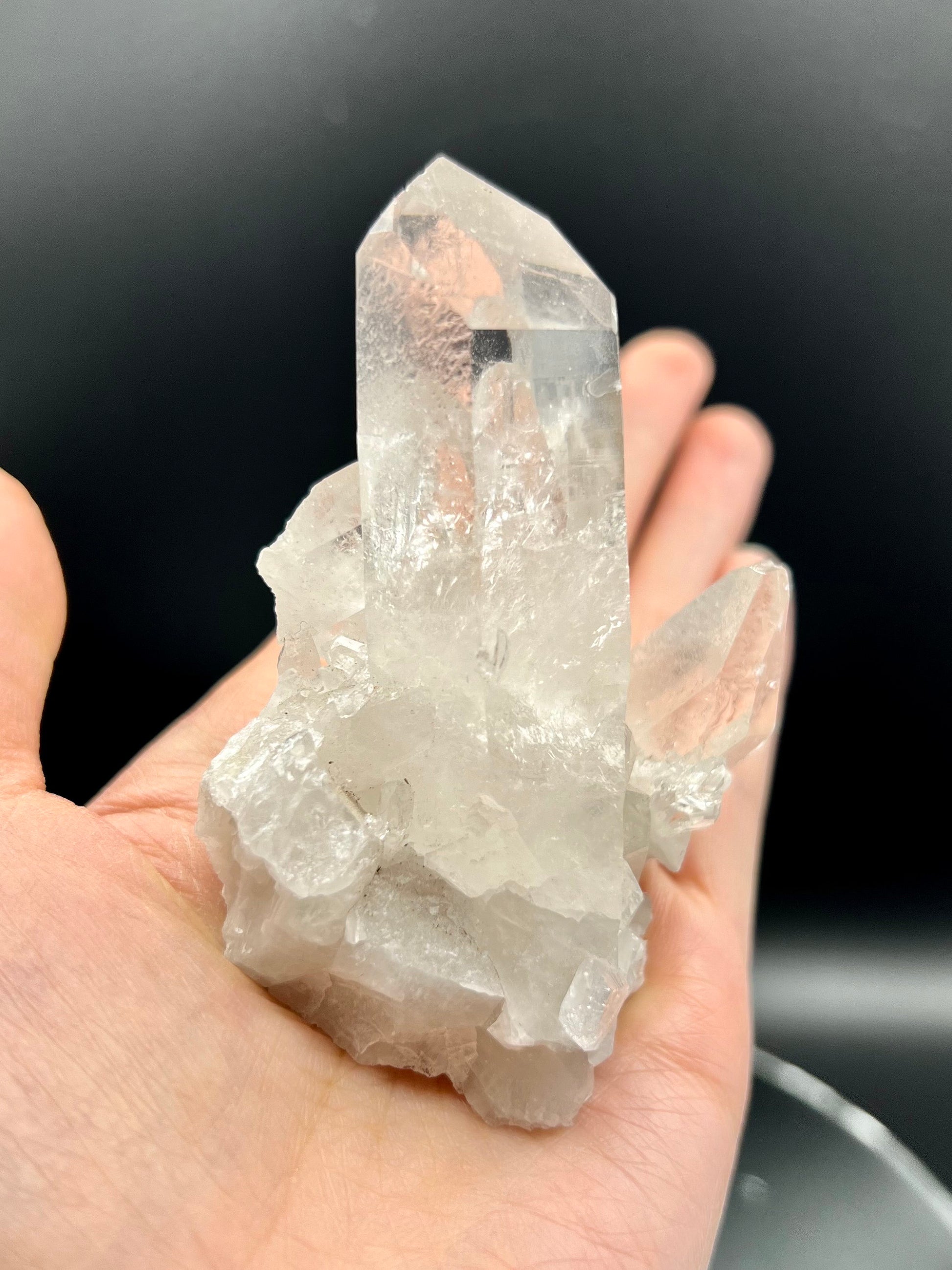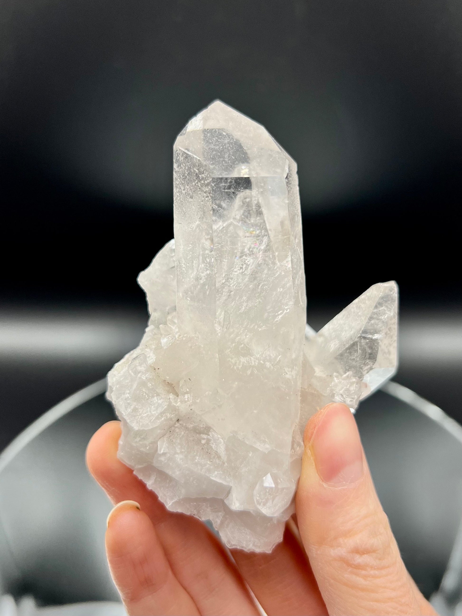 ✨ A Masterpiece of Clarity and Resilience - Explore the captivating beauty and powerful energies of our Extra Quality Quartz Cluster. This exquisite piece stands as a beacon of purity and strength, boasting stunning rainbows in the main points, intricate bridge points for connection and overcoming, and beautifully self-healed parts that speak to the crystal's resilience and ability to regenerate.