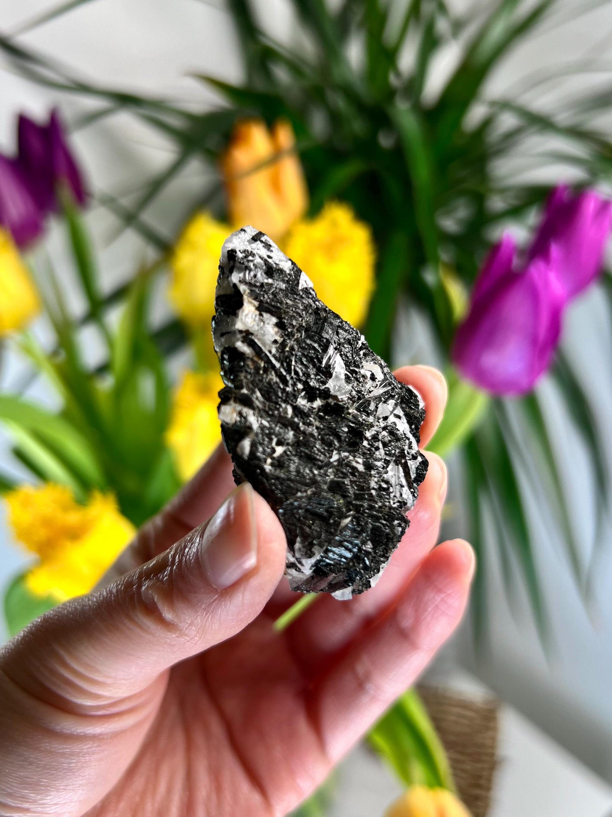 This Black Tourmaline in Quartz is a high-vibration protection stone, combining the grounding and shielding properties of Black Tourmaline with the amplifying and cleansing qualities of Quartz. Together, they form an impenetrable energetic barrier that wards off negativity while enhancing focus, clarity, and resilience.