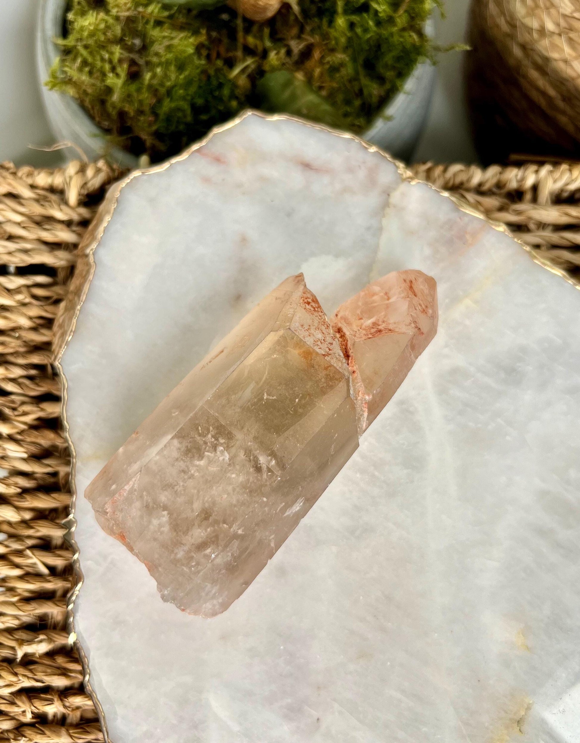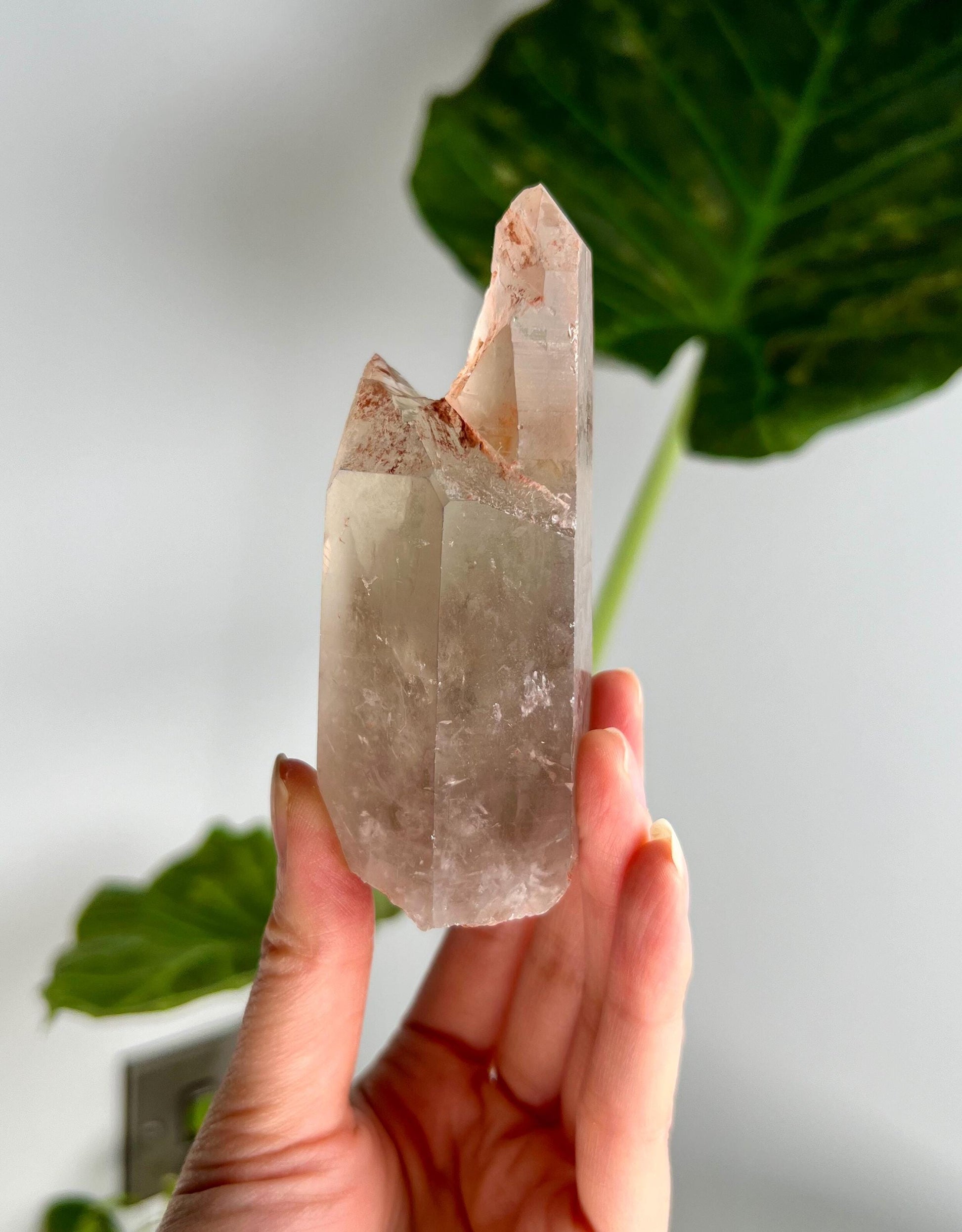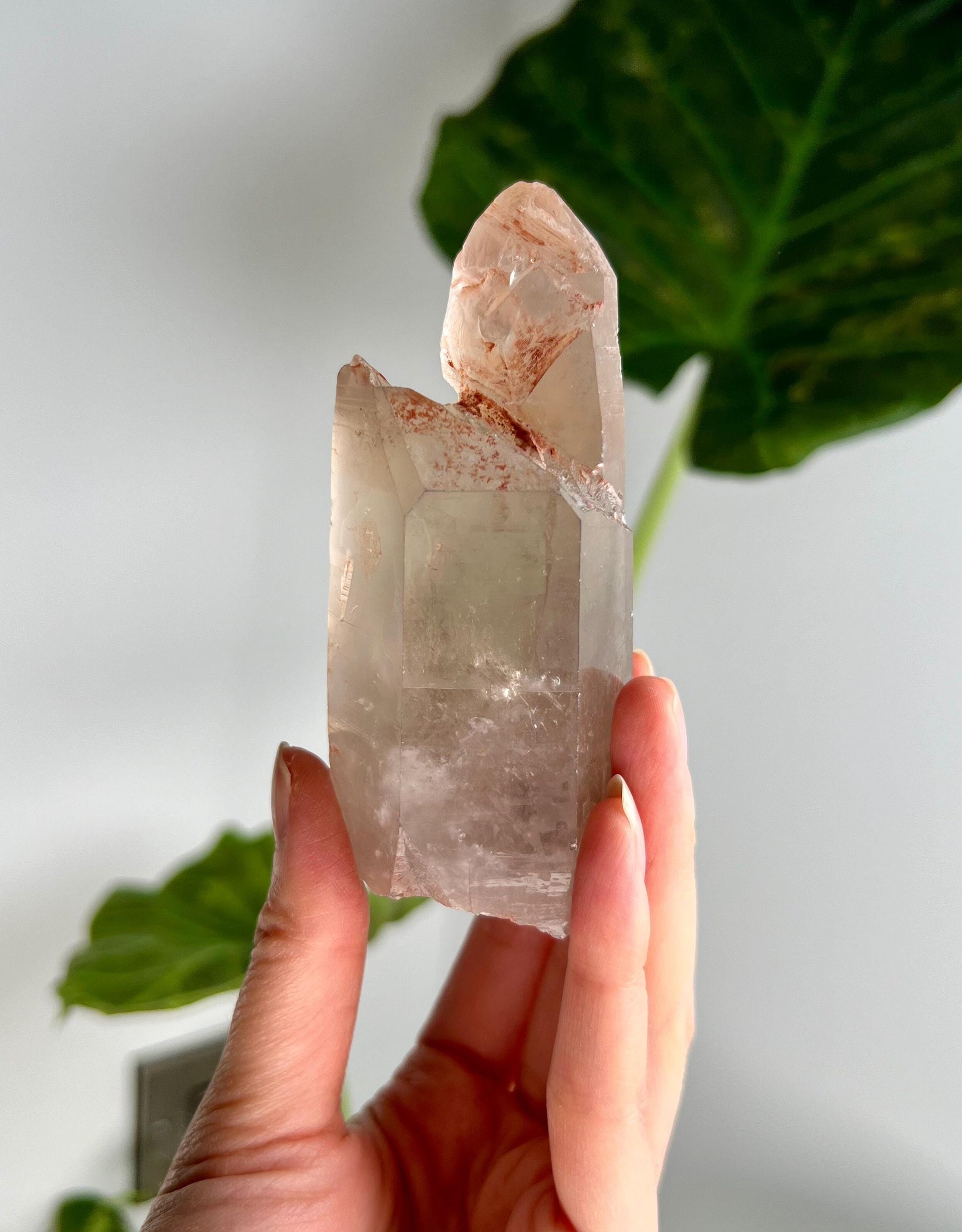 Grounding & Stability: The presence of iron inclusions within the quartz enhances its grounding properties, connecting you deeply with Earth energy. This helps to balance spiritual work with physical reality, keeping you grounded while accessing higher dimensions.