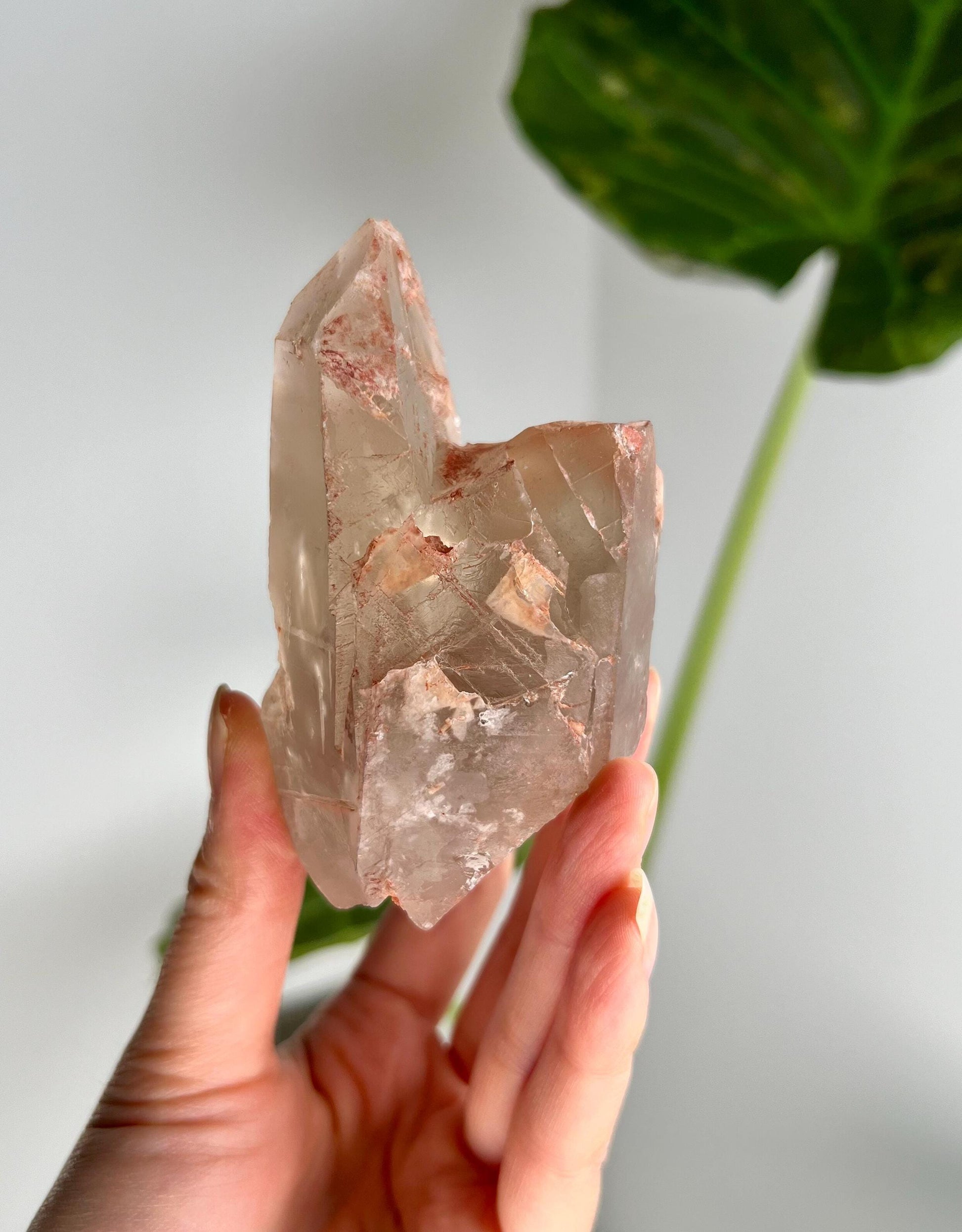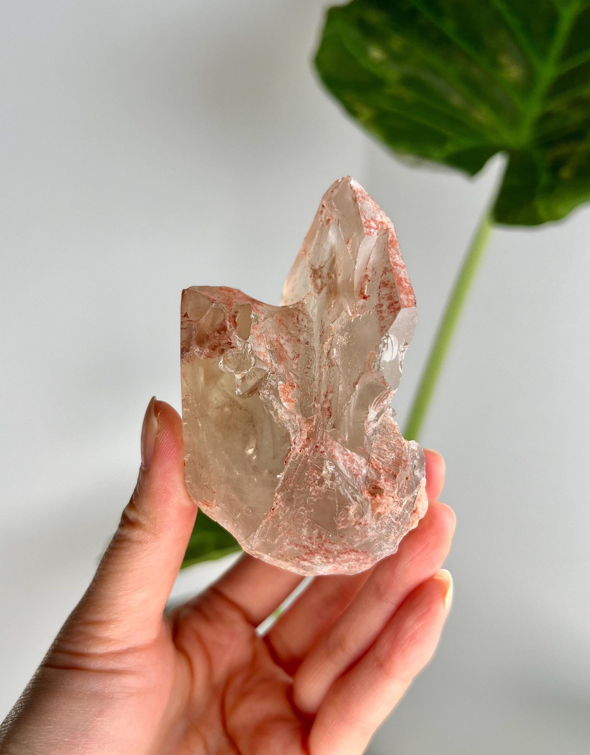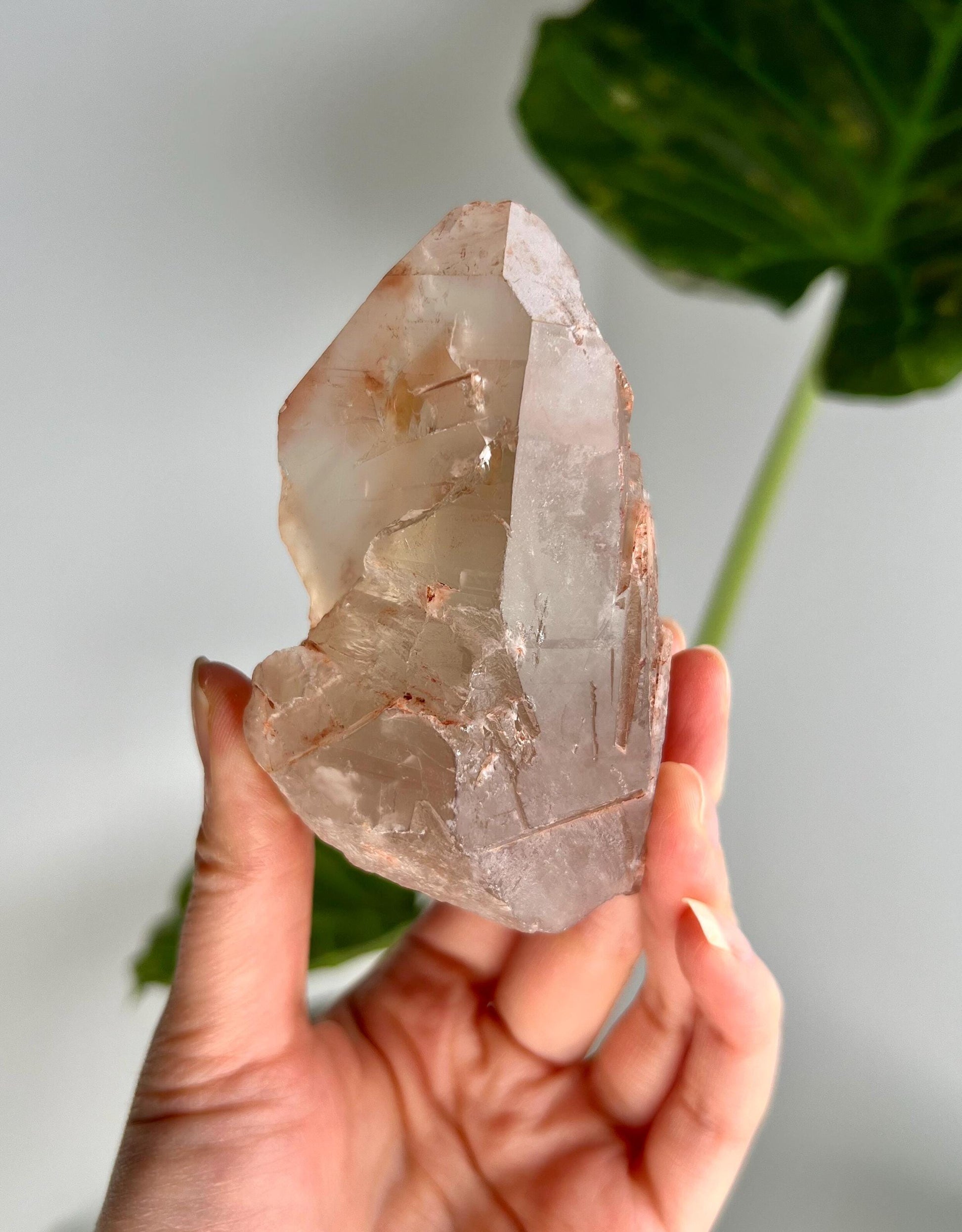 Grounding & Stability: The presence of iron inclusions within the quartz enhances its grounding properties, connecting you deeply with Earth energy. This helps to balance spiritual work with physical reality, keeping you grounded while accessing higher dimensions.