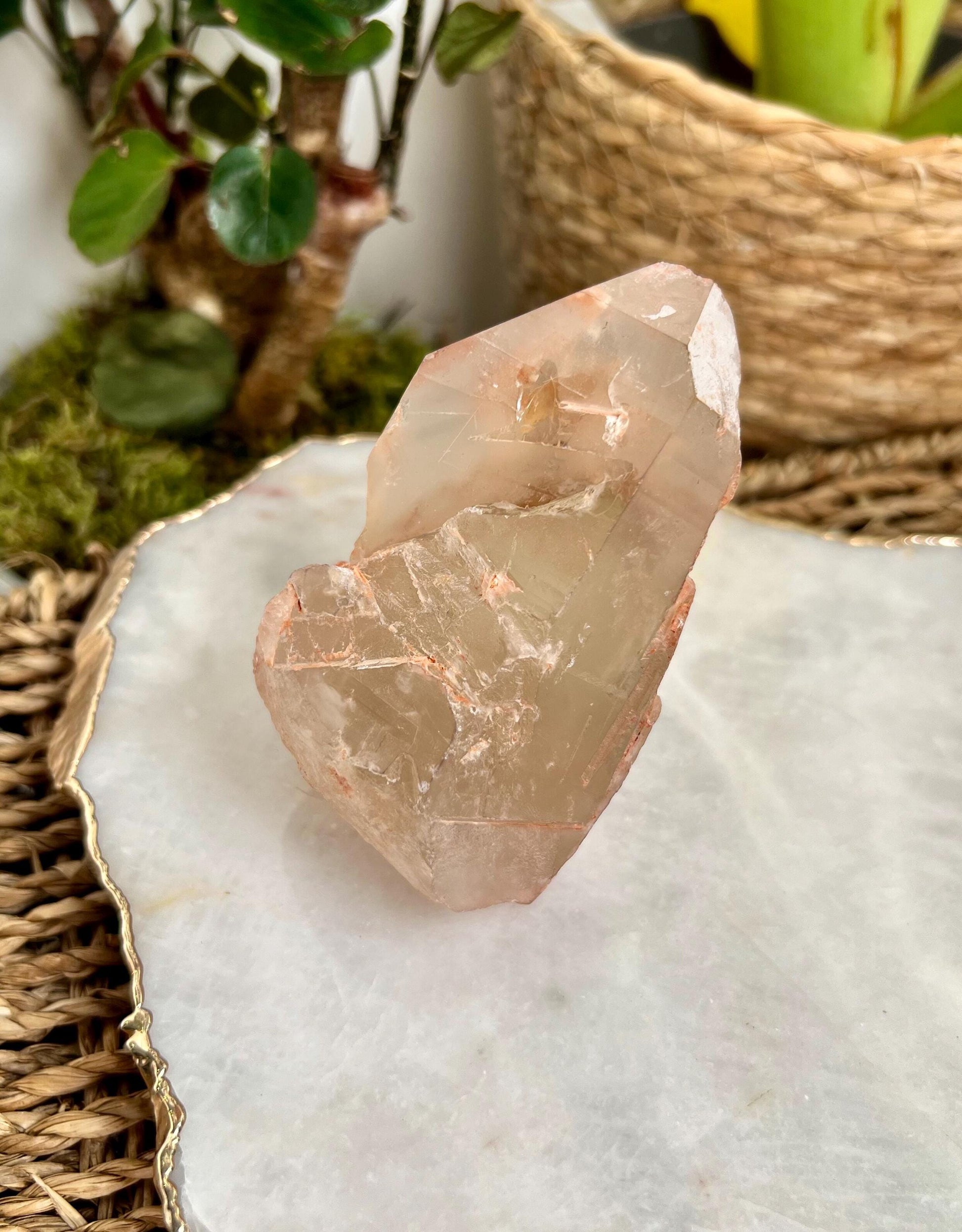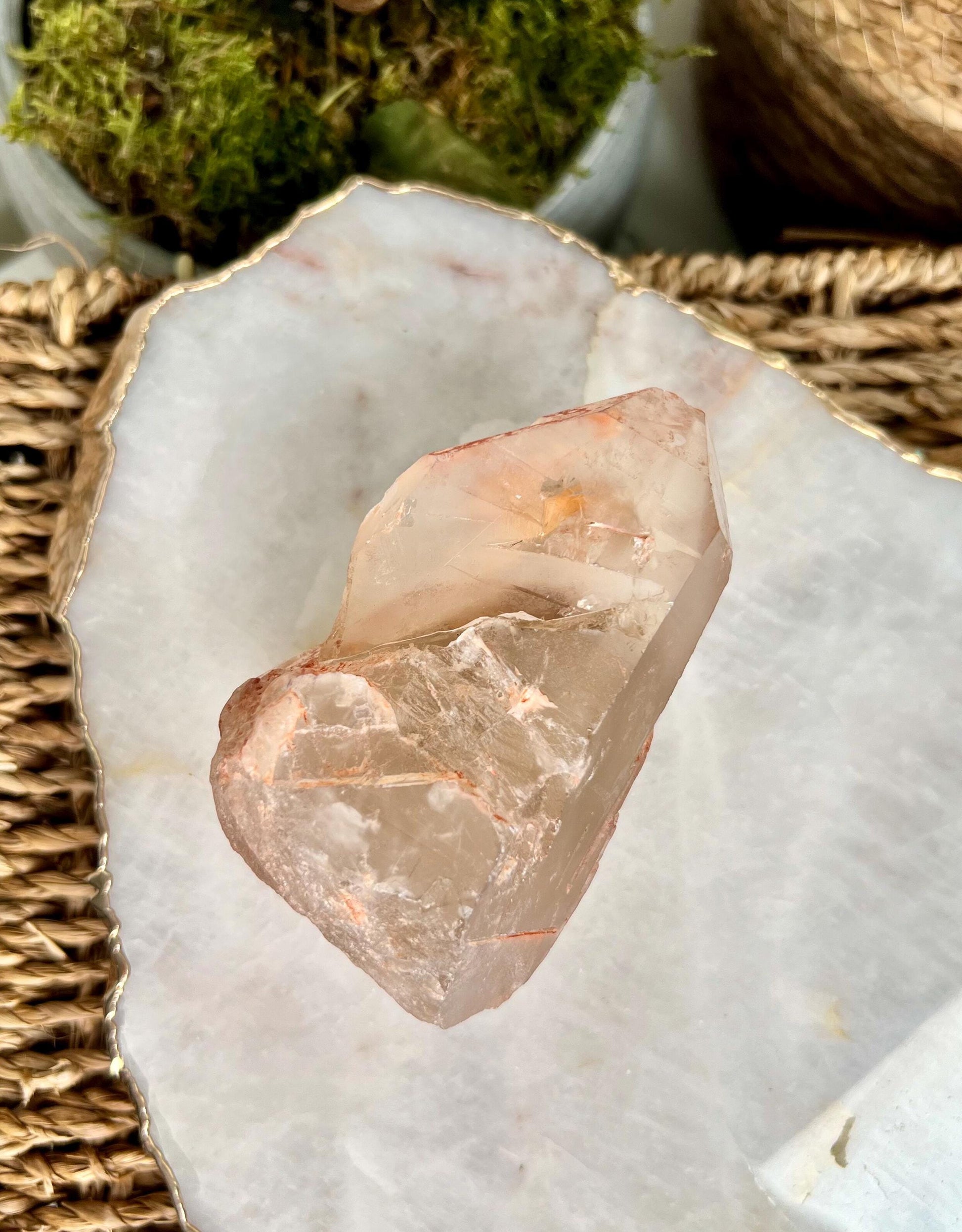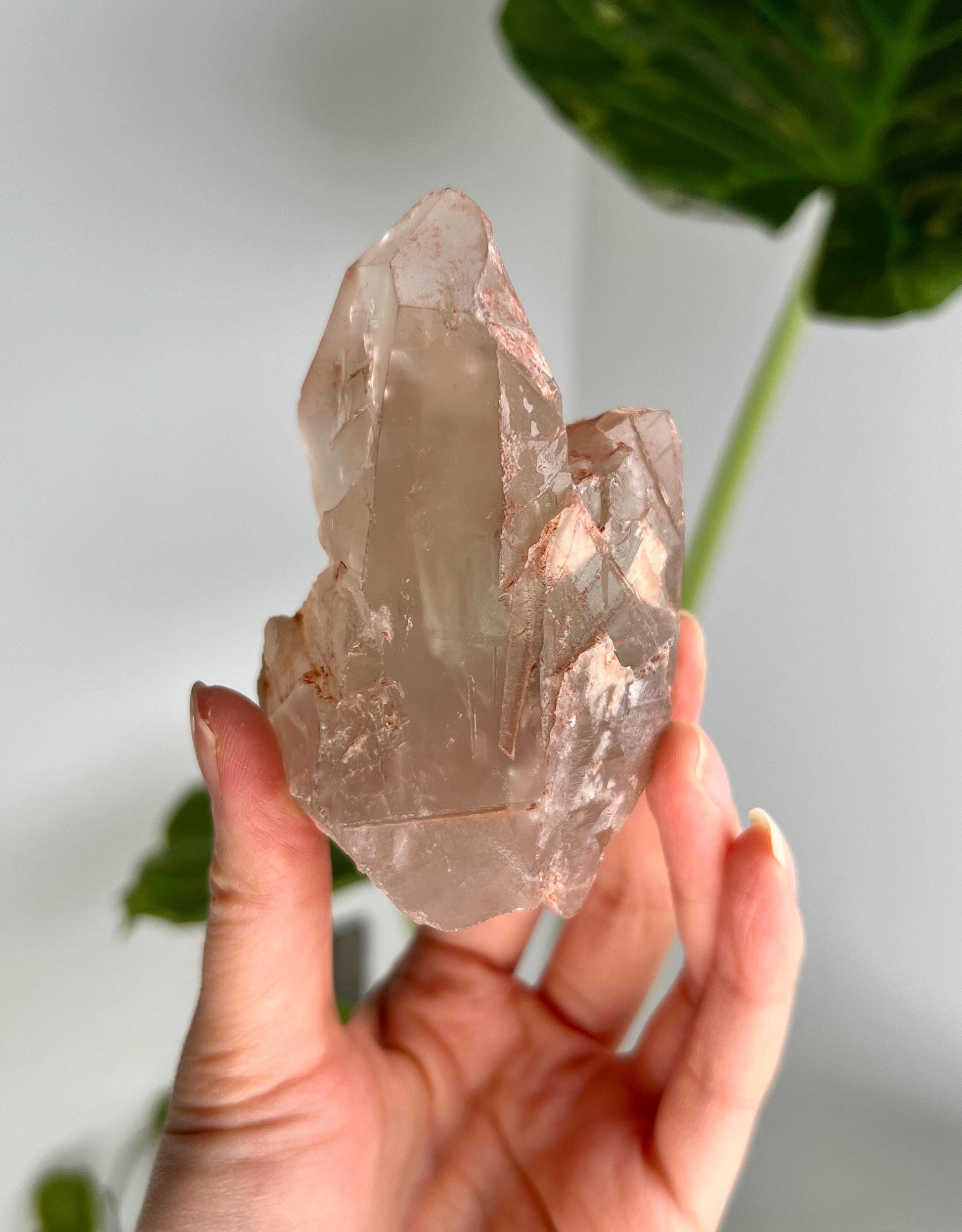 Grounding & Stability: The presence of iron inclusions within the quartz enhances its grounding properties, connecting you deeply with Earth energy. This helps to balance spiritual work with physical reality, keeping you grounded while accessing higher dimensions.