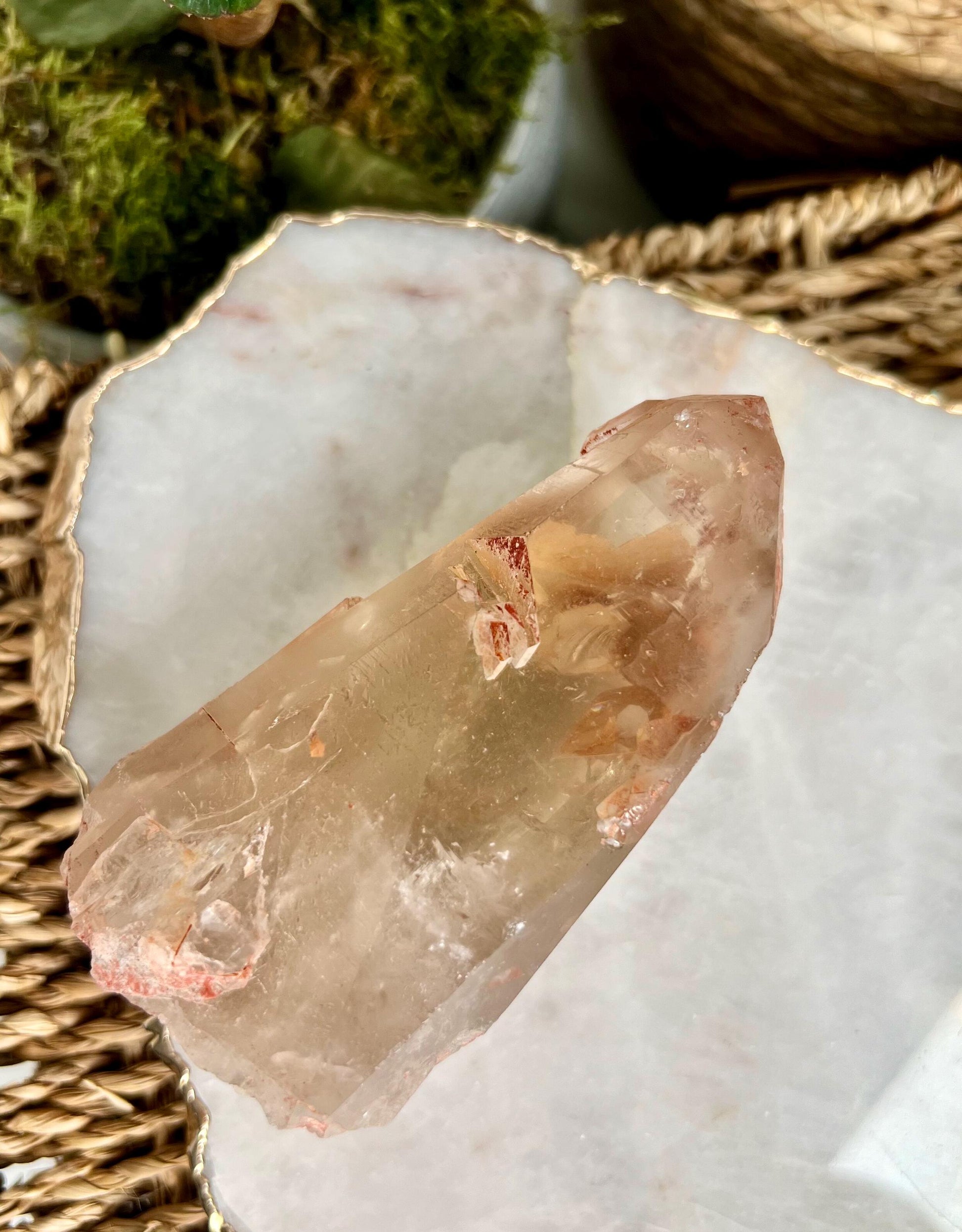 Golden Healer Lemurian Quartz is a powerful crystal for healing and transformation, known for its ability to connect with divine light and bring about deep emotional and spiritual healing. The Golden Healer aspect refers to the iron oxide coating within the quartz, which creates its golden hue and amplifies the crystal's healing energy. This unique Shift Quartz is particularly potent for those undergoing major life changes, helping to ease transitions and encourage personal evolution.