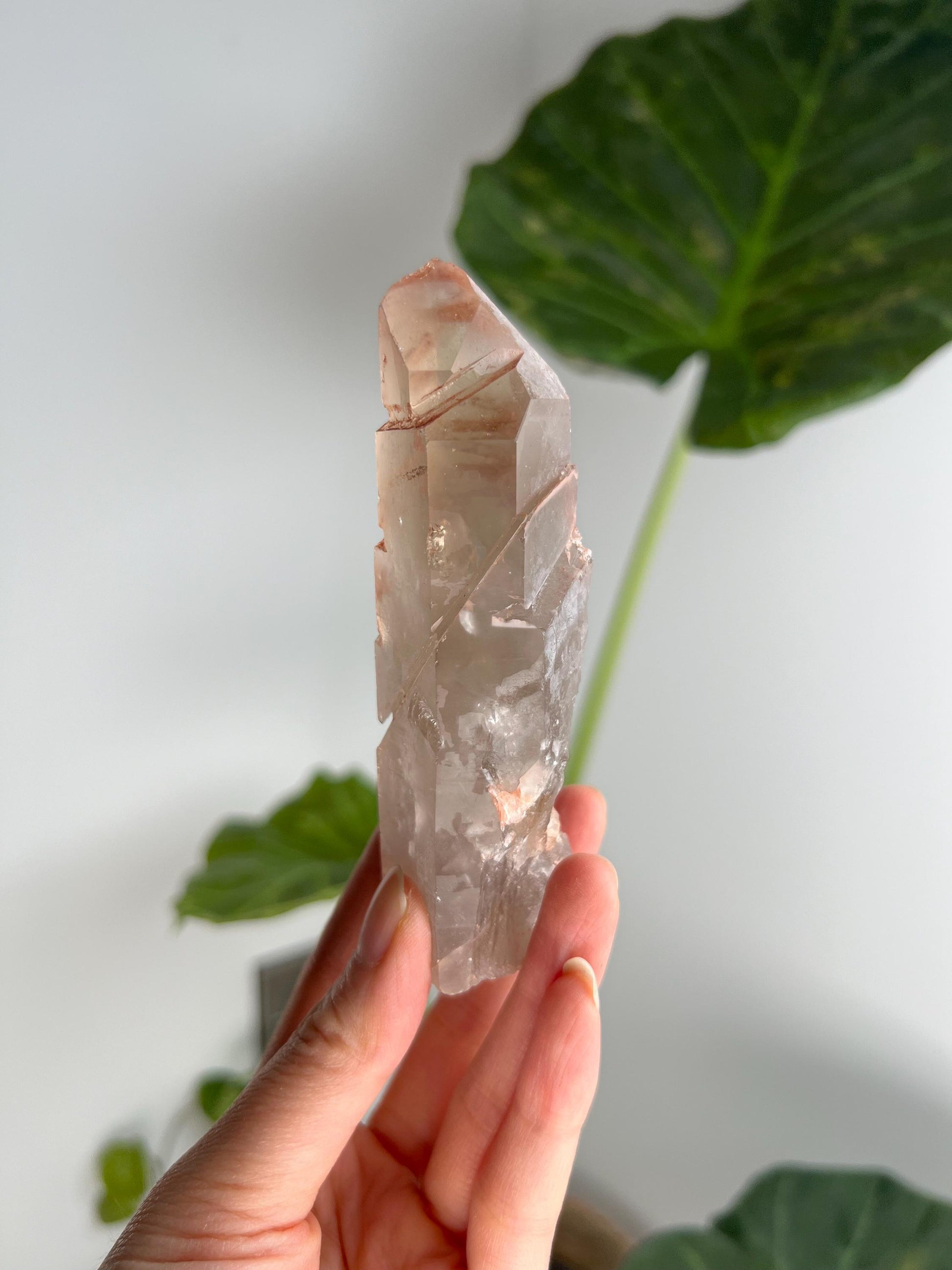 Grounding & Stability: The presence of iron inclusions within the quartz enhances its grounding properties, connecting you deeply with Earth energy. This helps to balance spiritual work with physical reality, keeping you grounded while accessing higher dimensions.