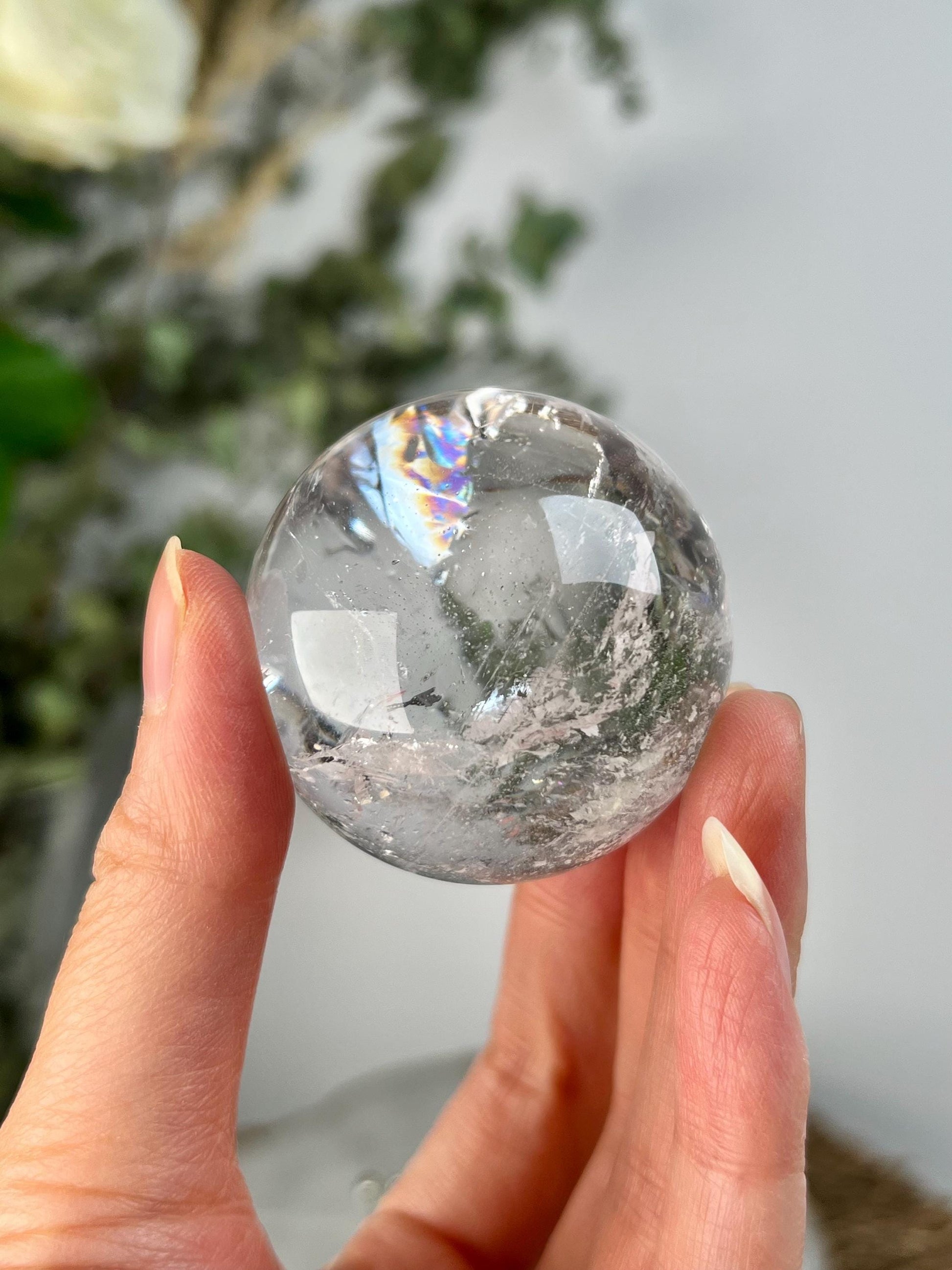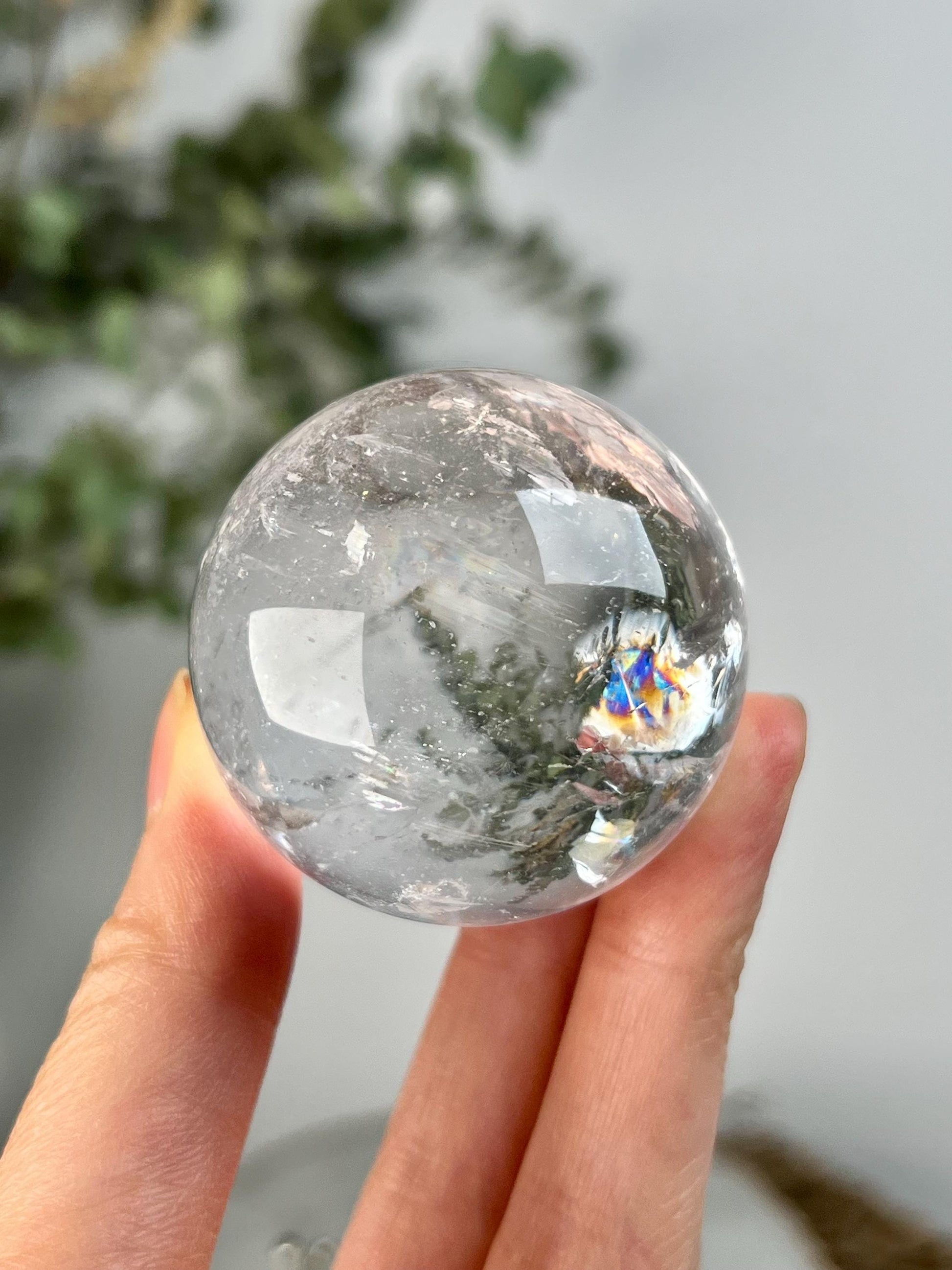 Grade A Lemurian Quartz Sphere with Rainbows | Serra do Cabral Minas Gerais Brazil | Energetically Activated LS01, 133g, 45mm