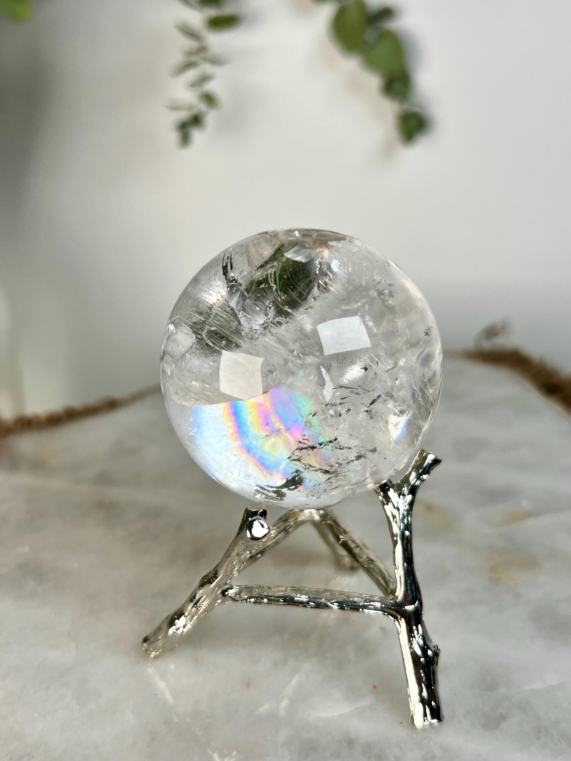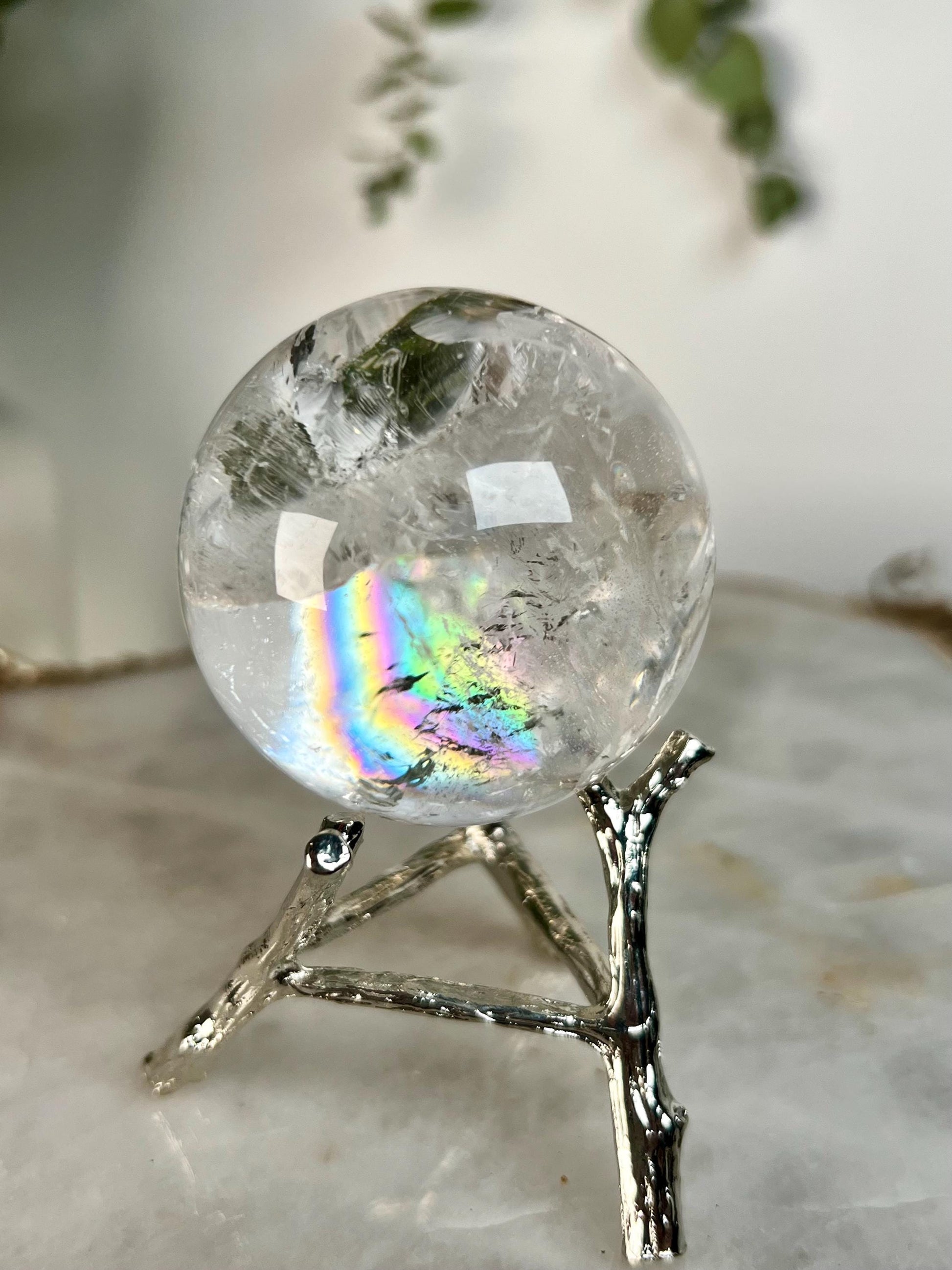 What makes this sphere extra special is the presence of rainbow inclusions within the quartz. Rainbows are believed to appear as a blessing of hope and joy, activating the heart and uplifting the spirit. Combined with the ancient wisdom of Lemurian energy, this piece carries a beautiful balance of clarity, harmony, and higher consciousness.