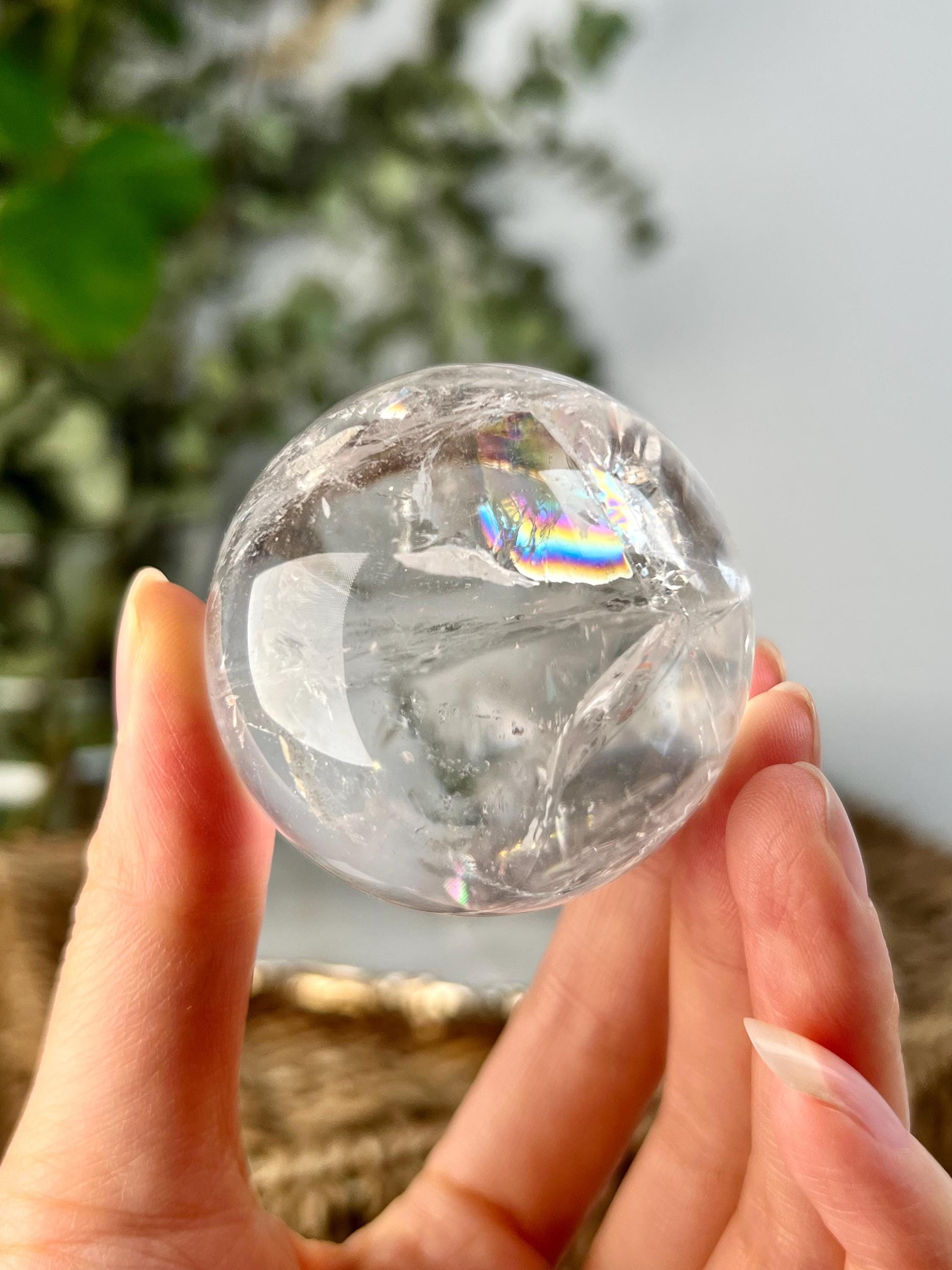 Grade A Lemurian Quartz Sphere with Rainbows | Serra do Cabral Minas Gerais Brazil | Energetically Activated LS07, 169g, 48mm