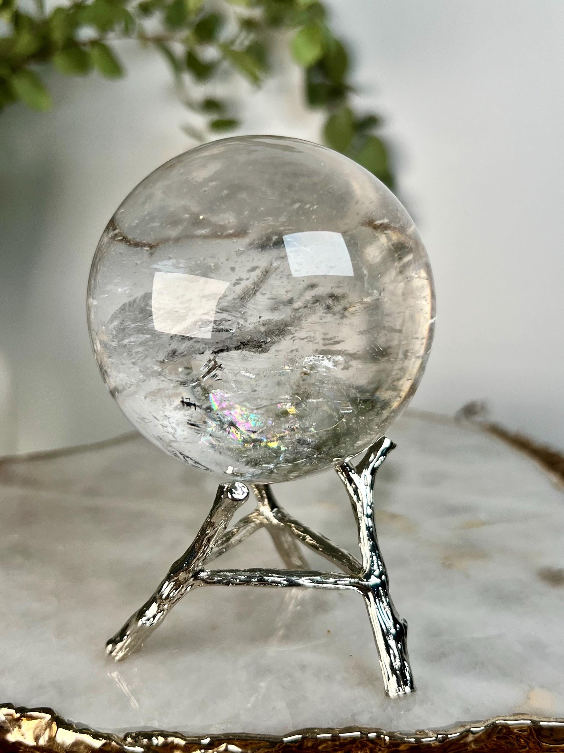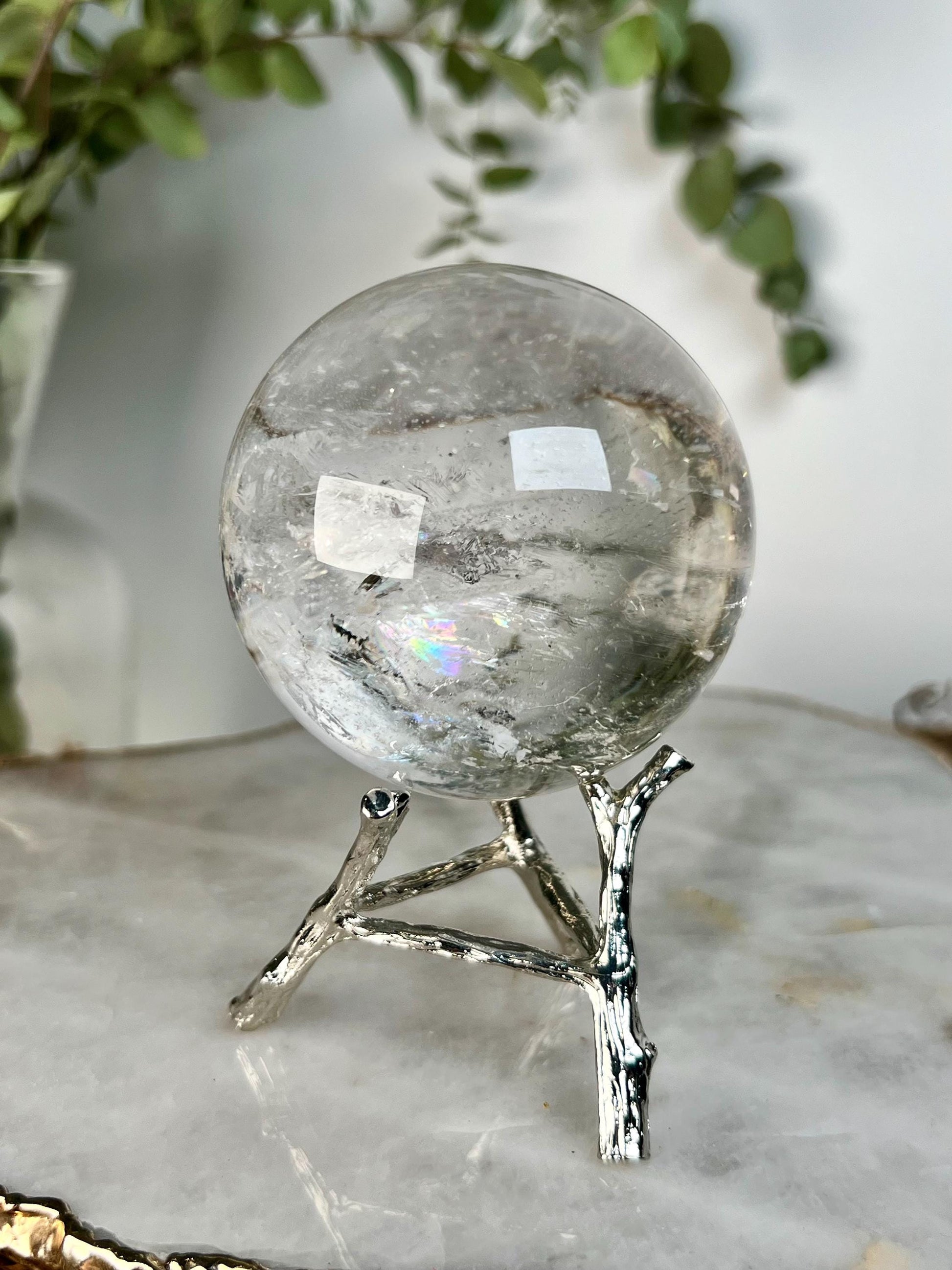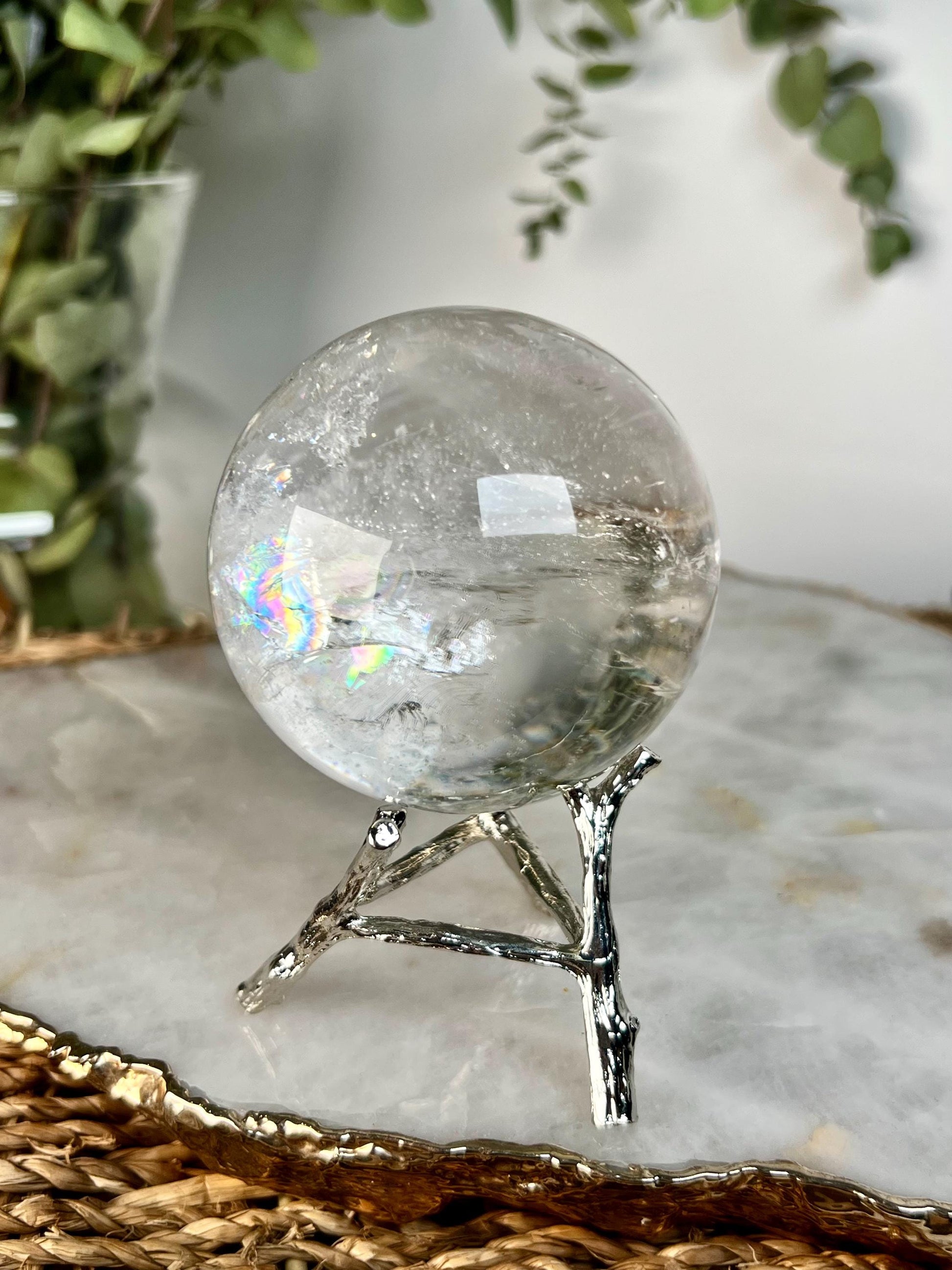 What makes this sphere extra special is the presence of rainbow inclusions within the quartz. Rainbows are believed to appear as a blessing of hope and joy, activating the heart and uplifting the spirit. Combined with the ancient wisdom of Lemurian energy, this piece carries a beautiful balance of clarity, harmony, and higher consciousness.