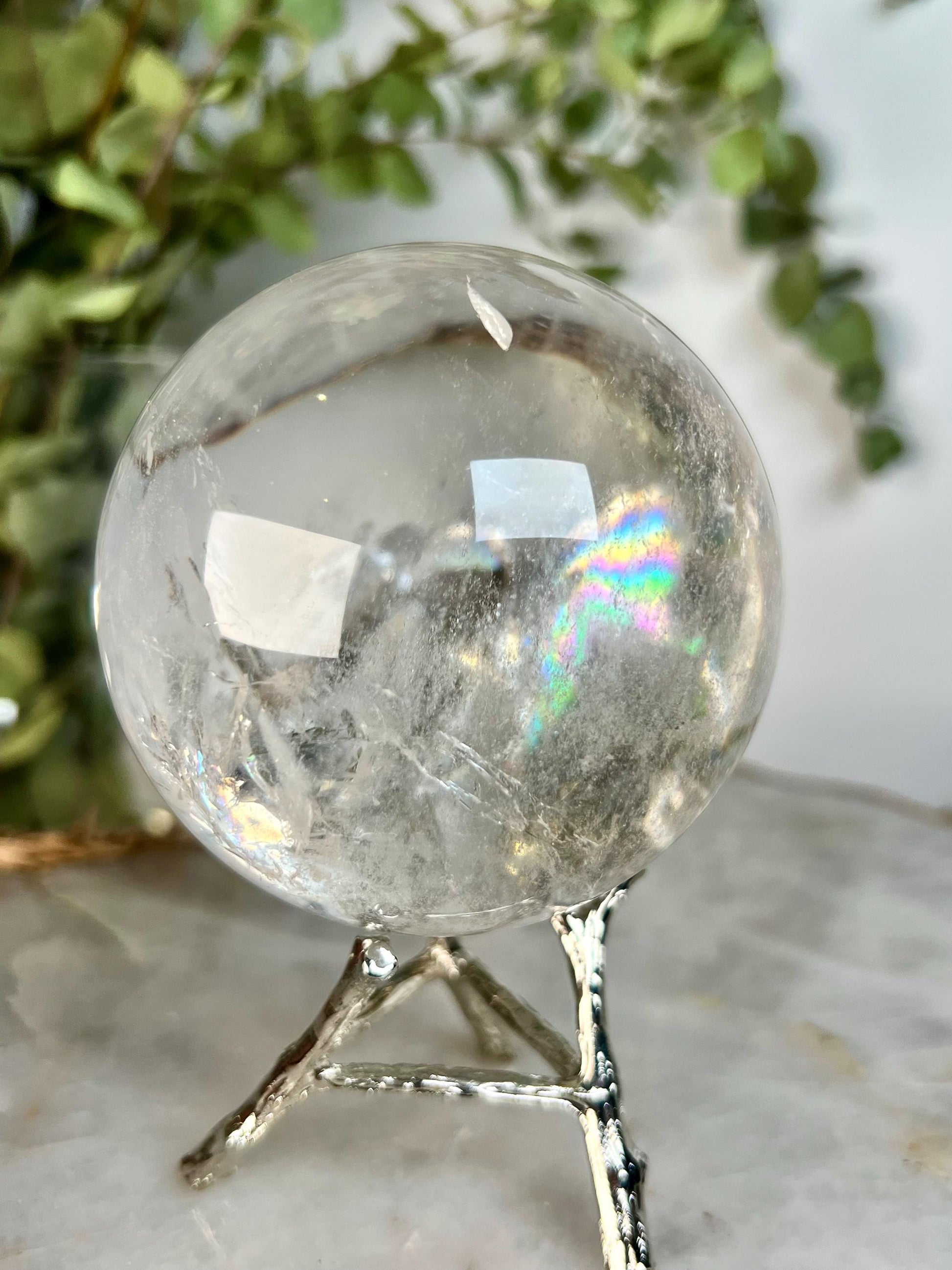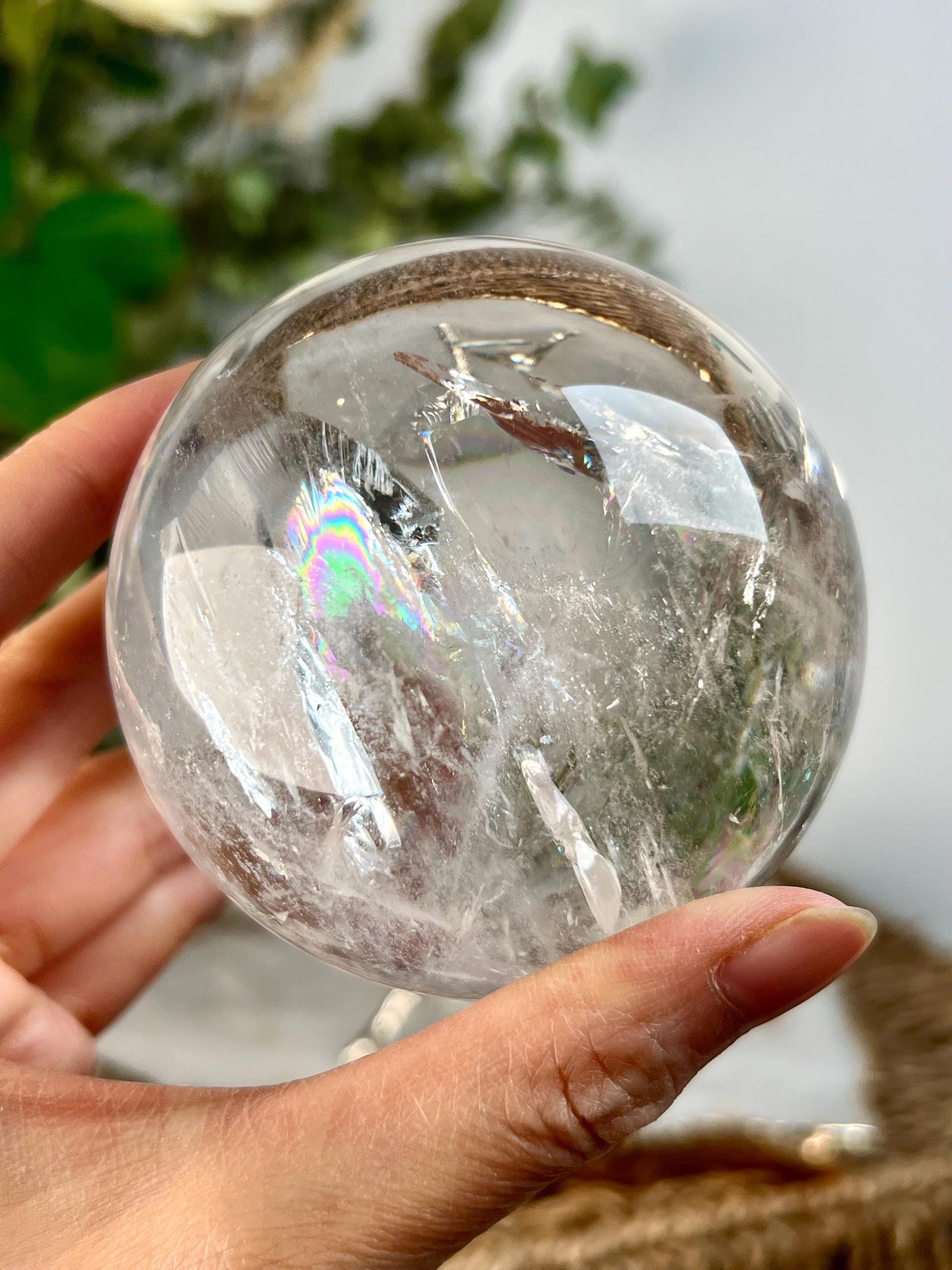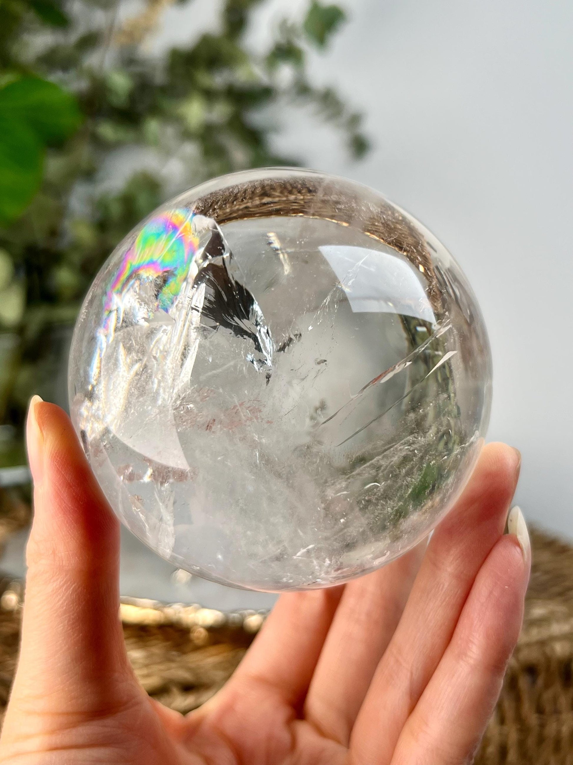 Grade A Lemurian Quartz Sphere with Rainbows | Serra do Cabral Minas Gerais Brazil | Energetically Activated LS09, 664g, 77mm