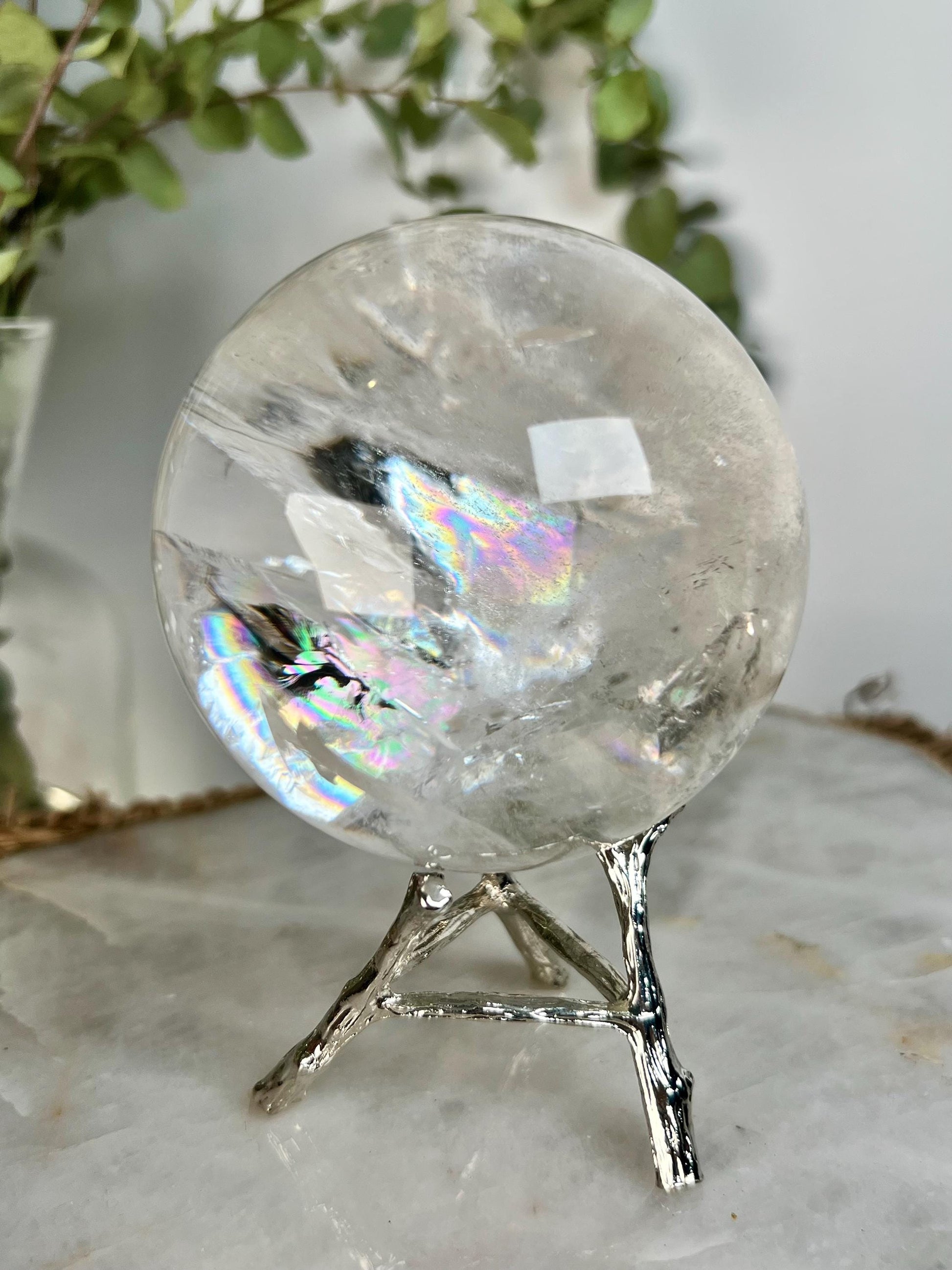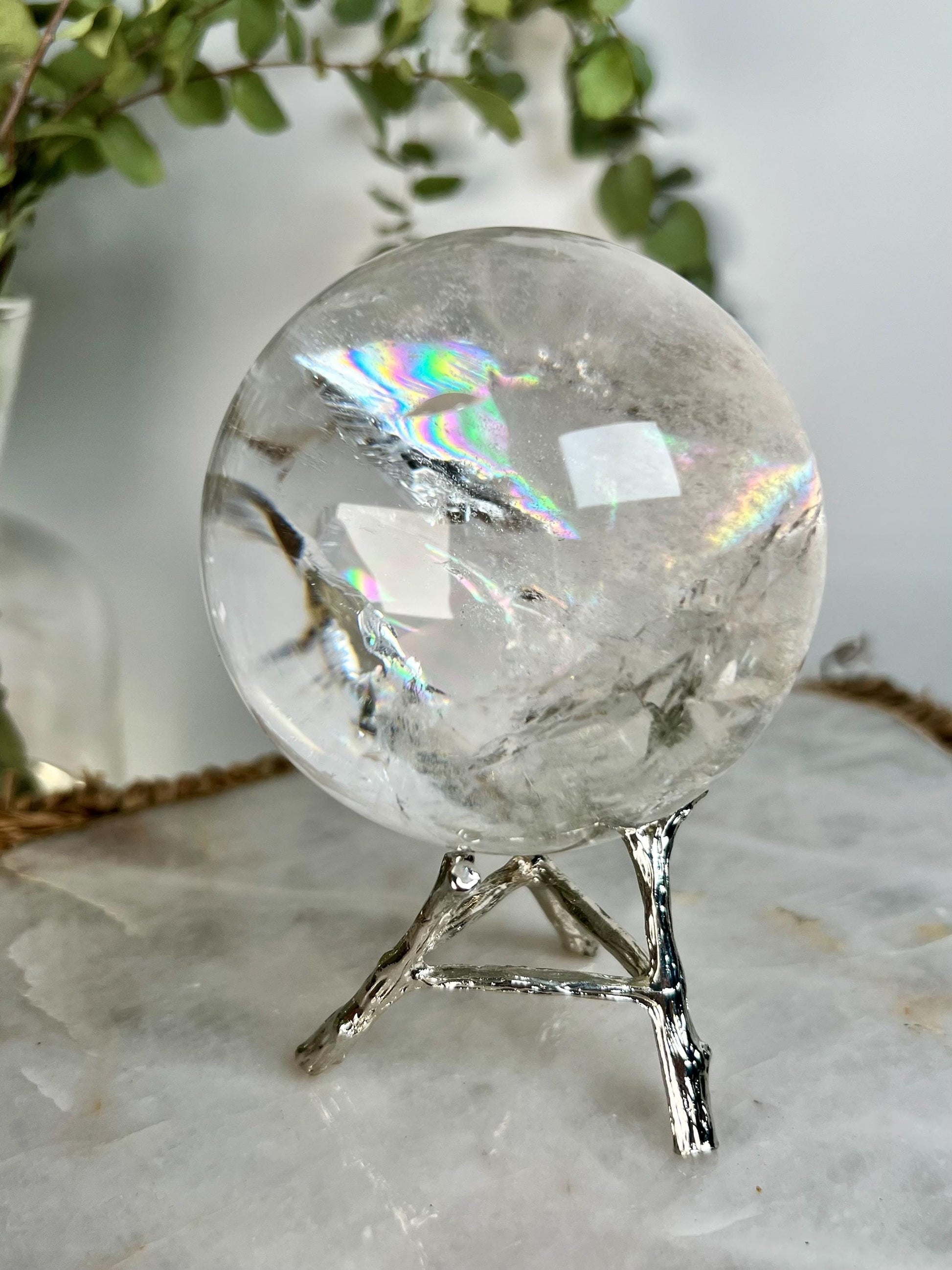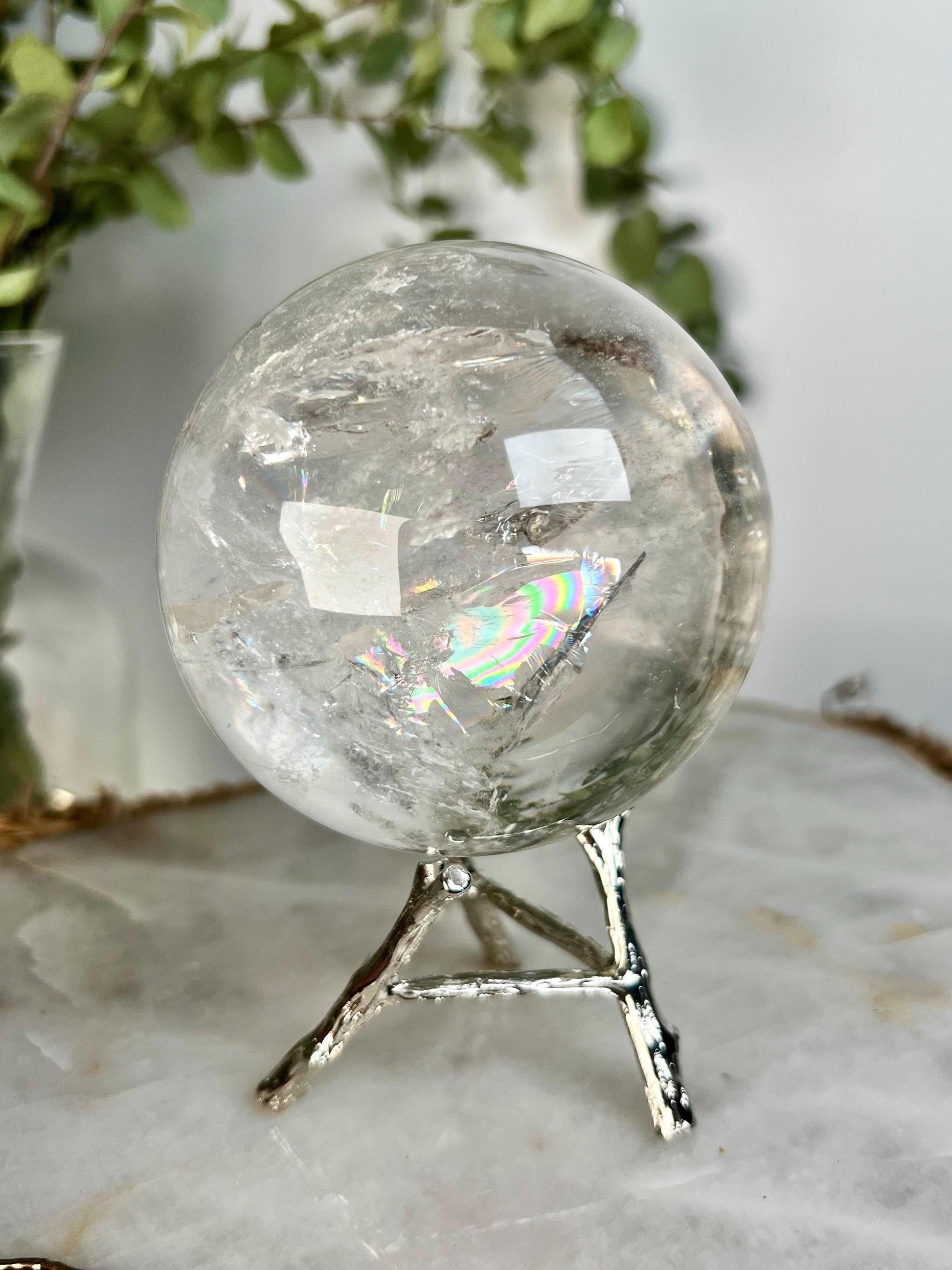 Grade A Lemurian Quartz Sphere with Rainbows | Serra do Cabral Minas Gerais Brazil | Energetically Activated LS09, 664g, 77mm