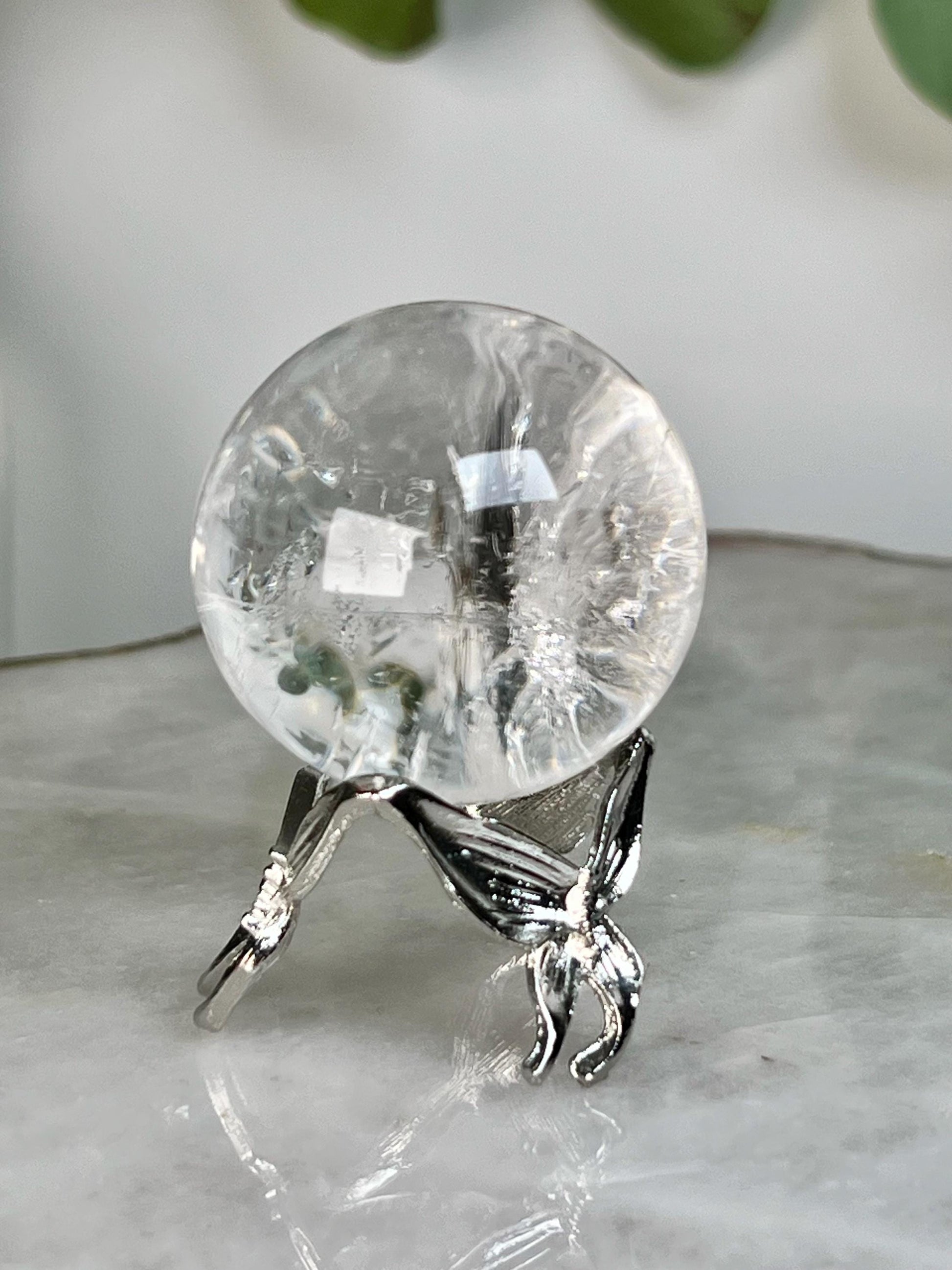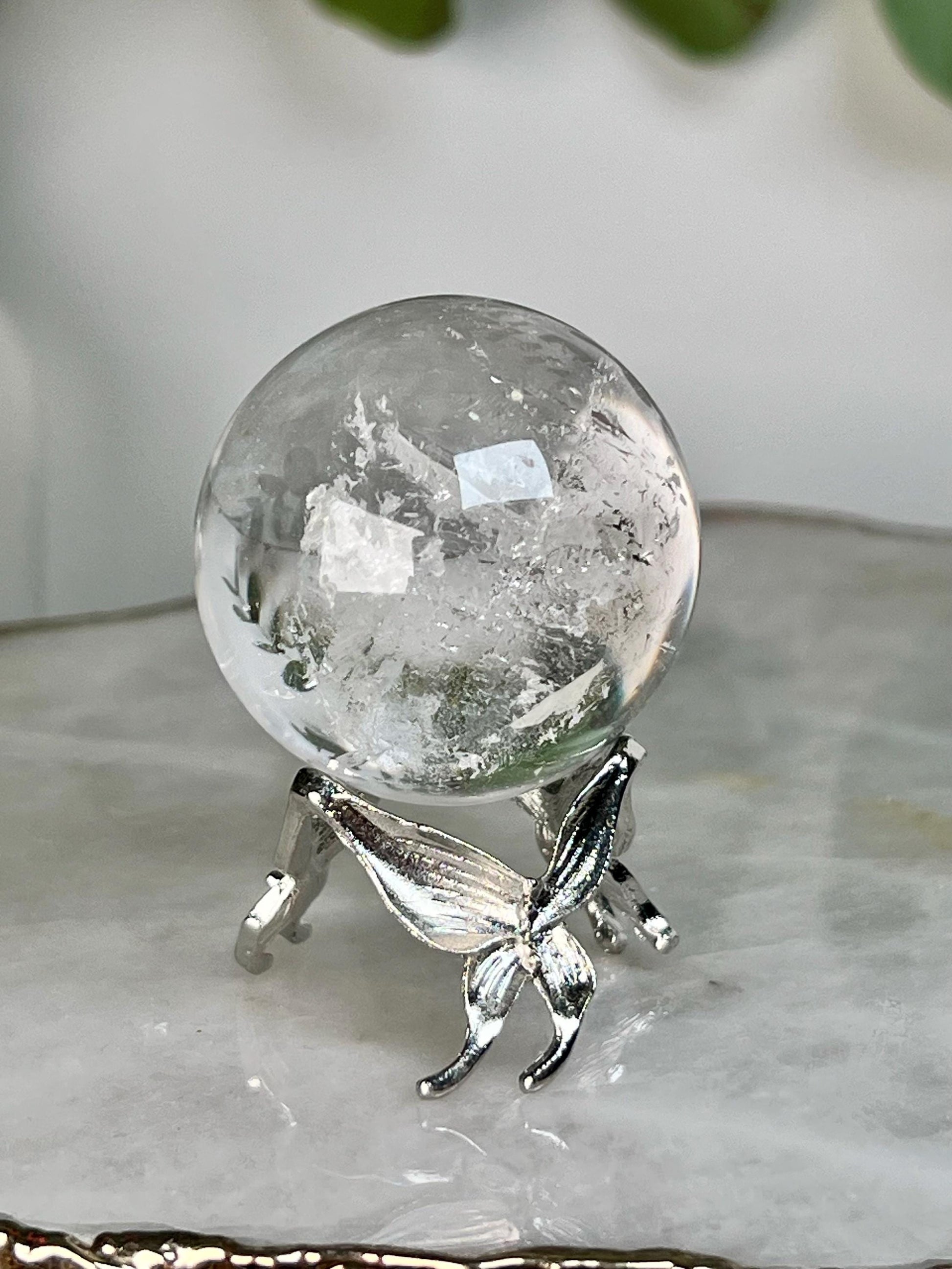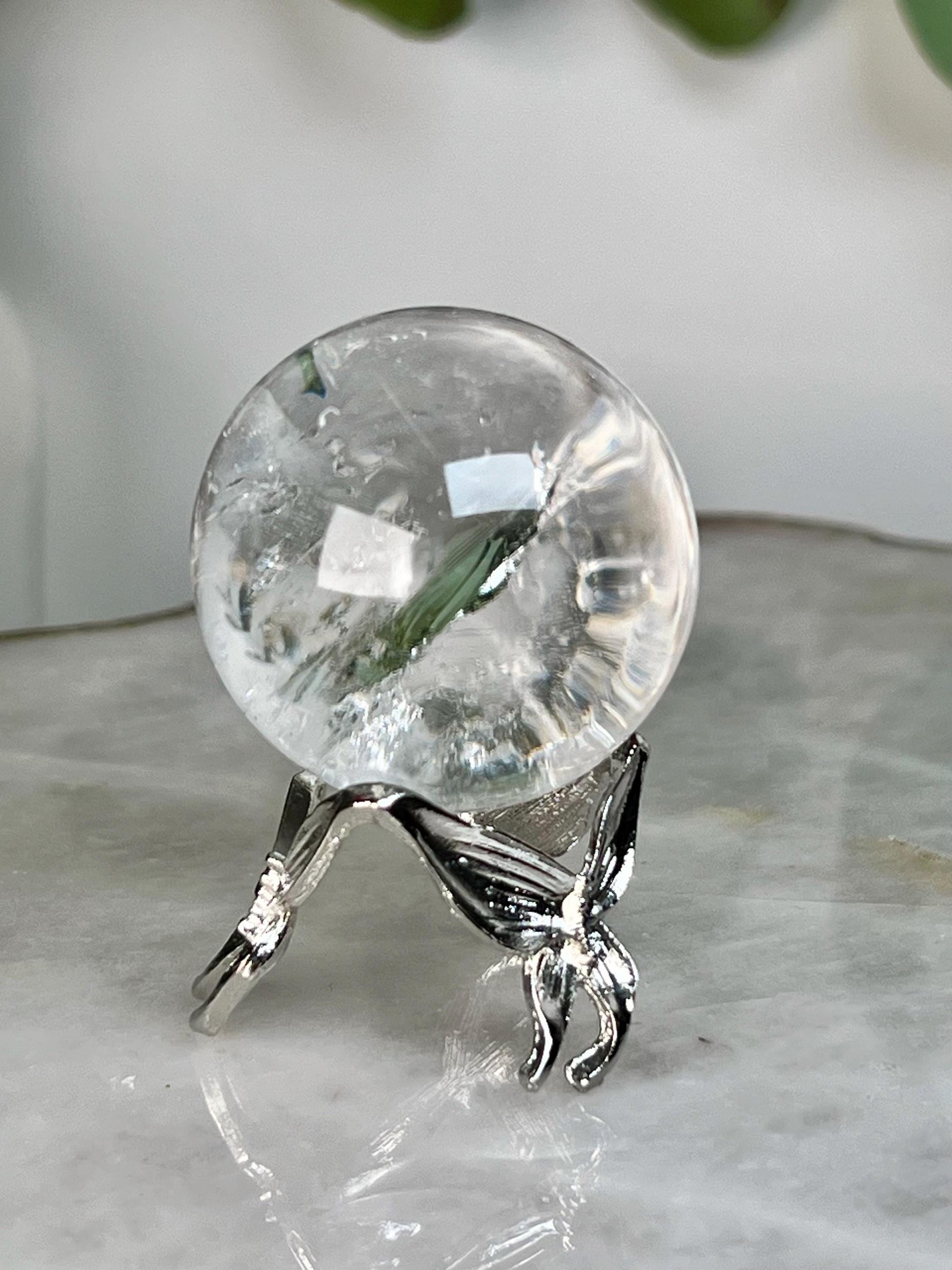 Grade A Lemurian Quartz Sphere with Stand | Serra do Cabral Minas Gerais Brazil | Energetically Activated LS11, 84g, 39mm