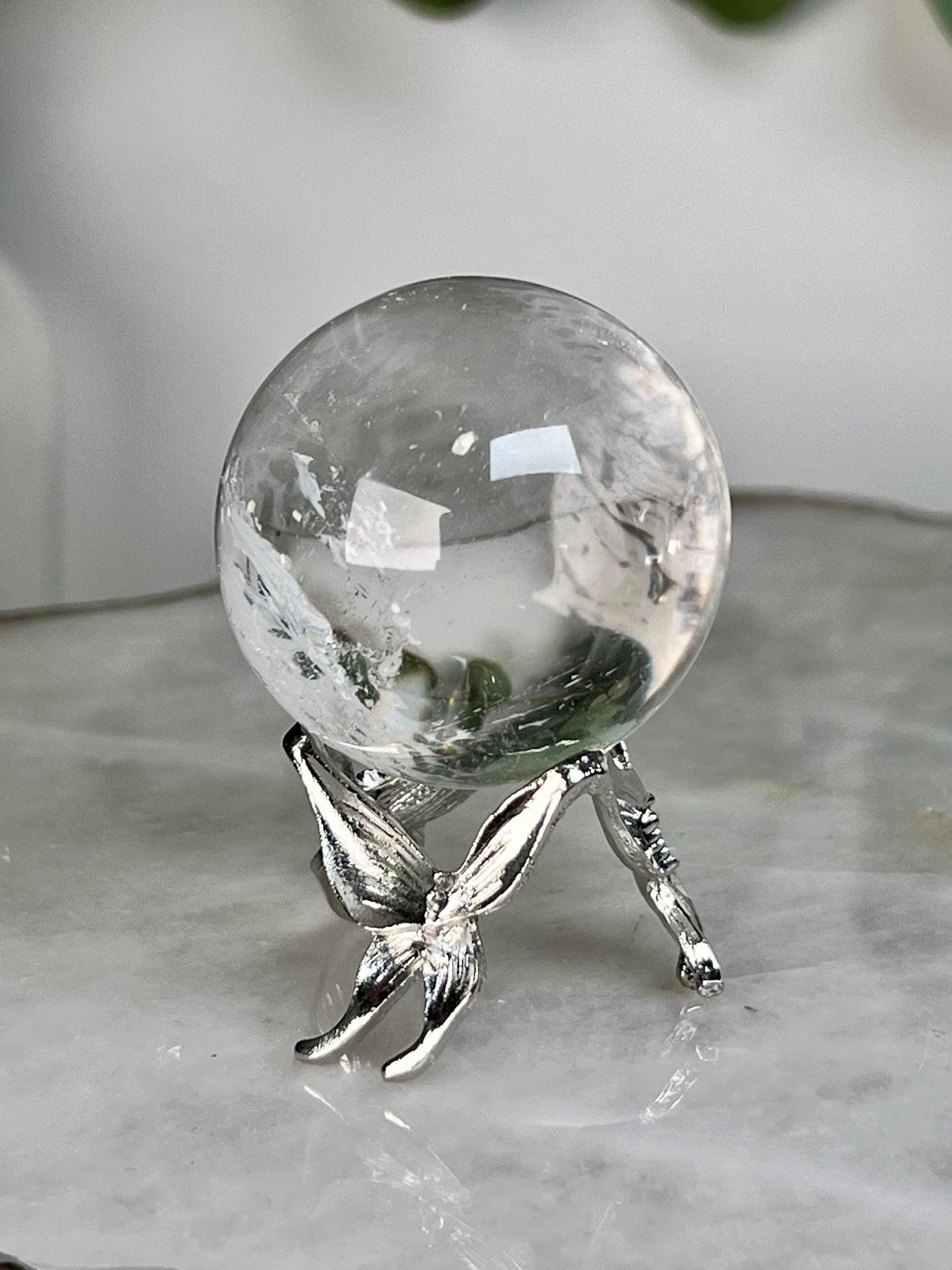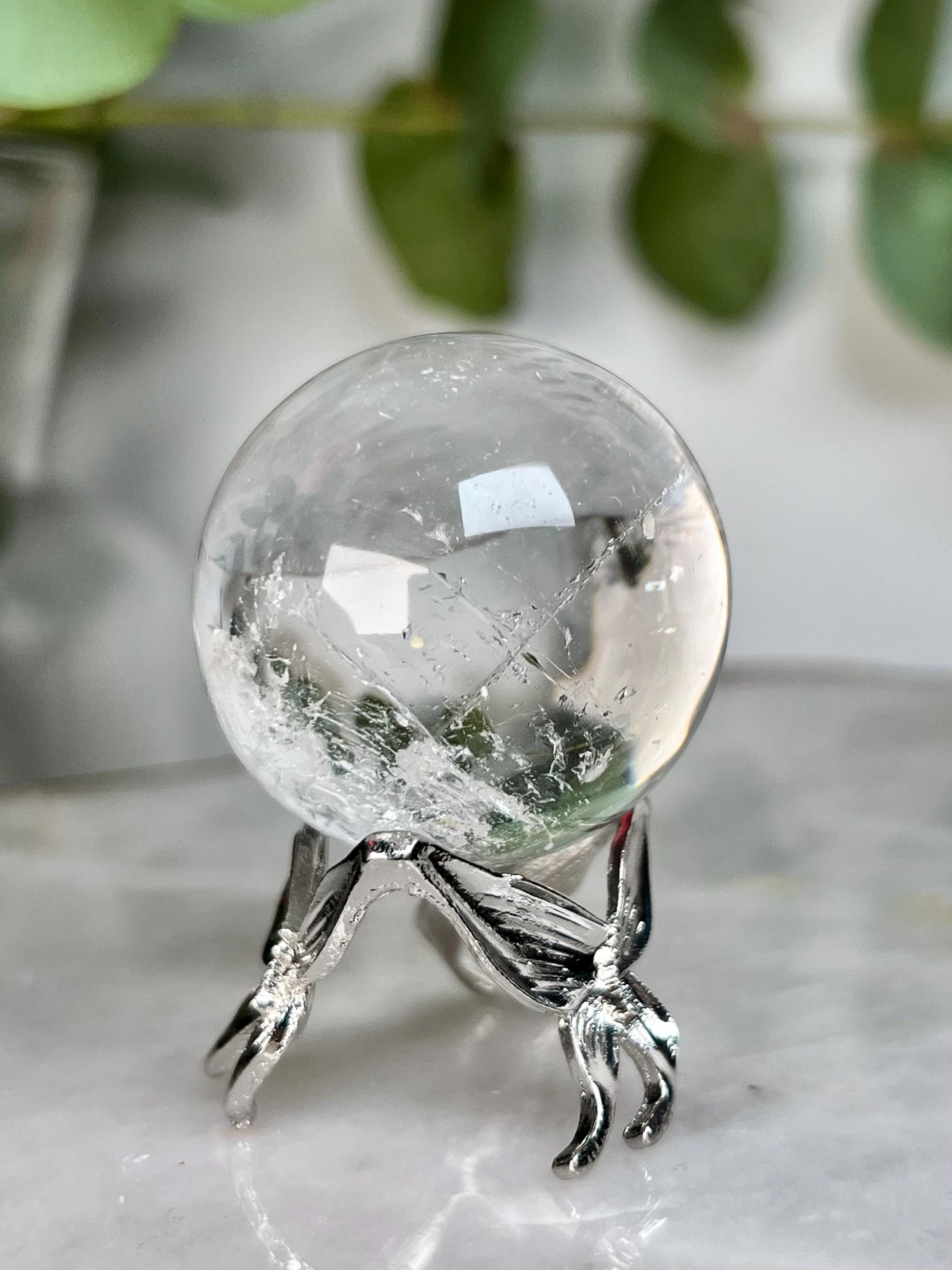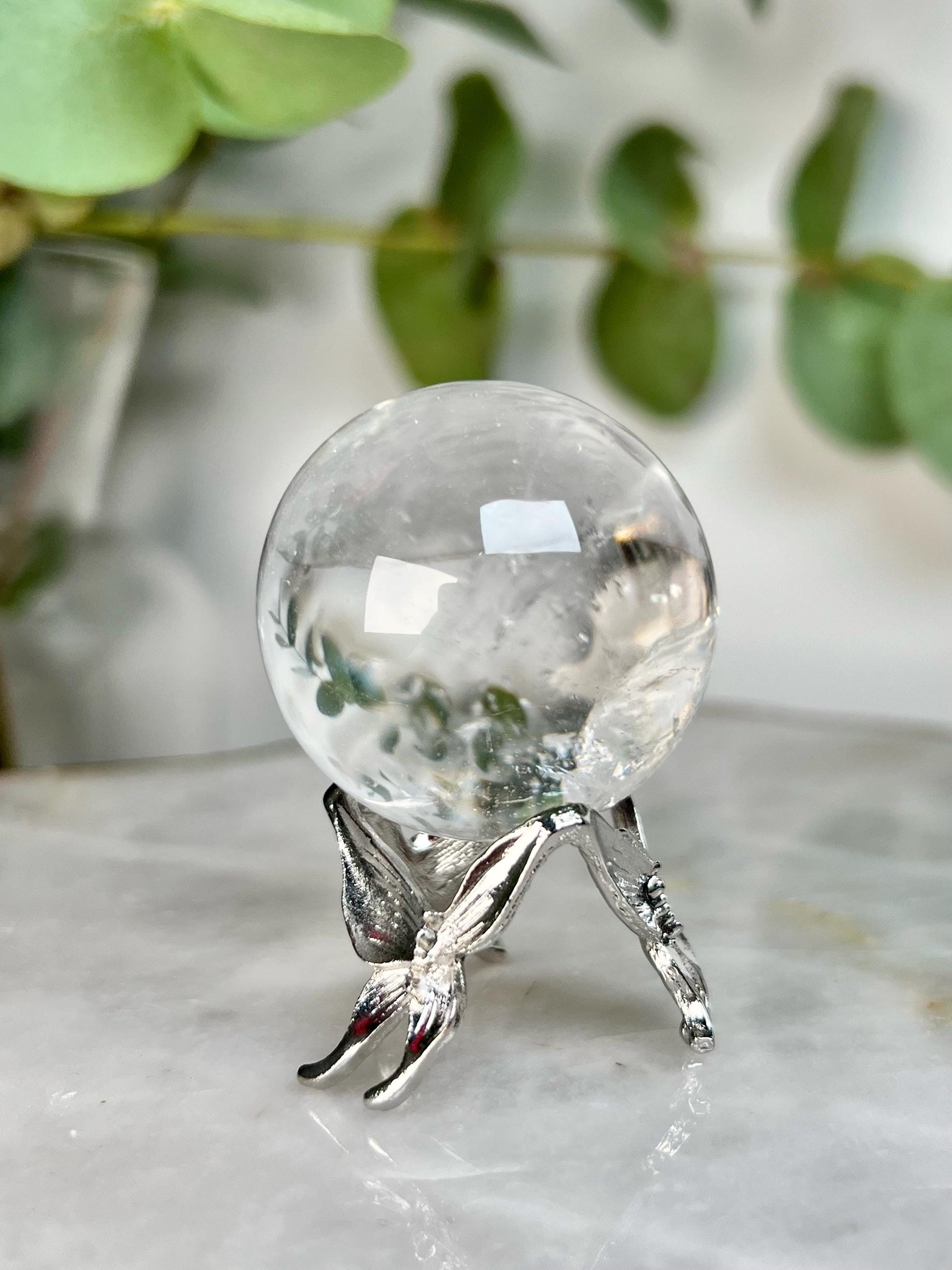 Grade A Lemurian Quartz Sphere with Stand | Serra do Cabral Minas Gerais Brazil | Energetically Activated LS11, 84g, 39mm