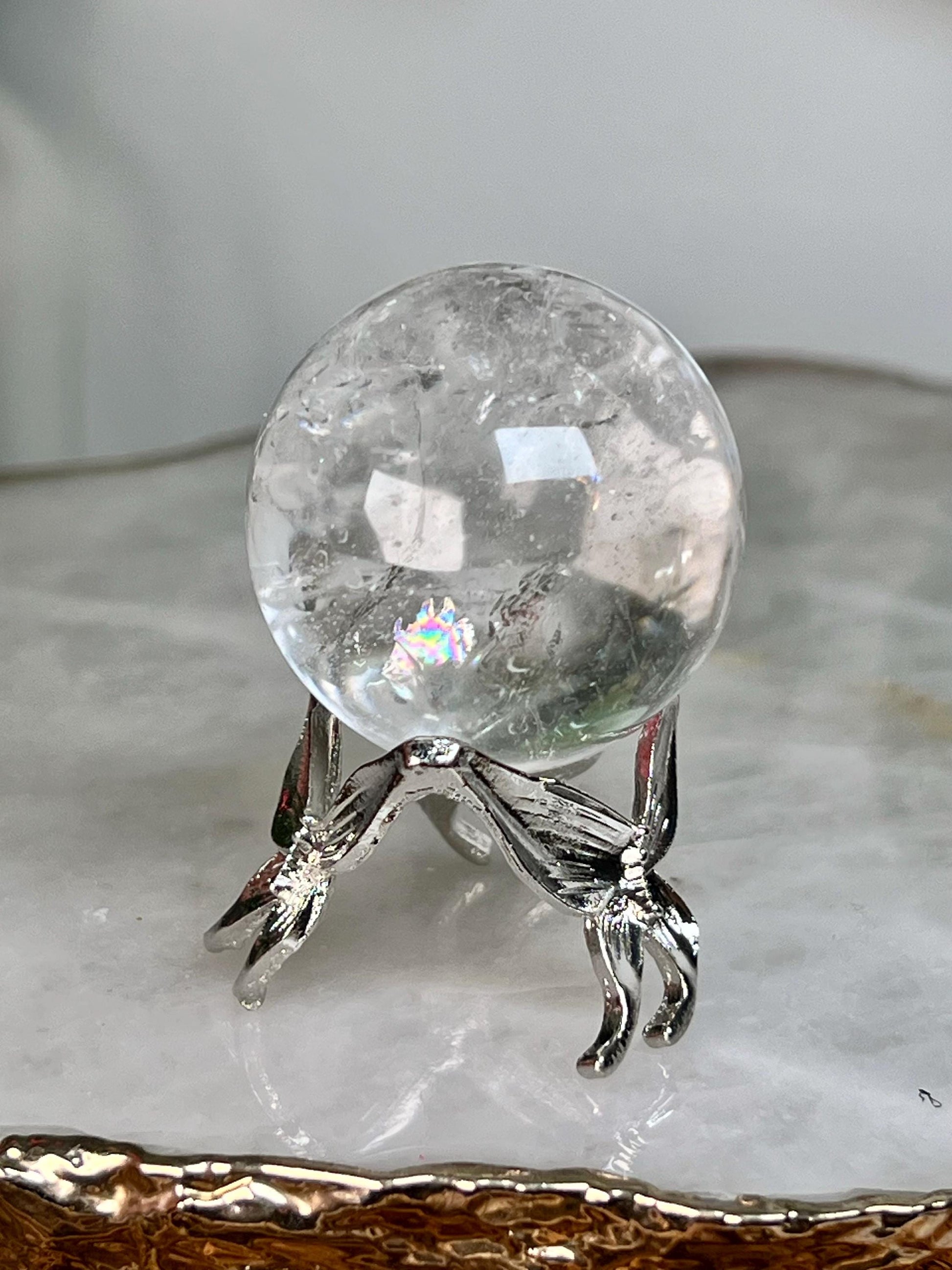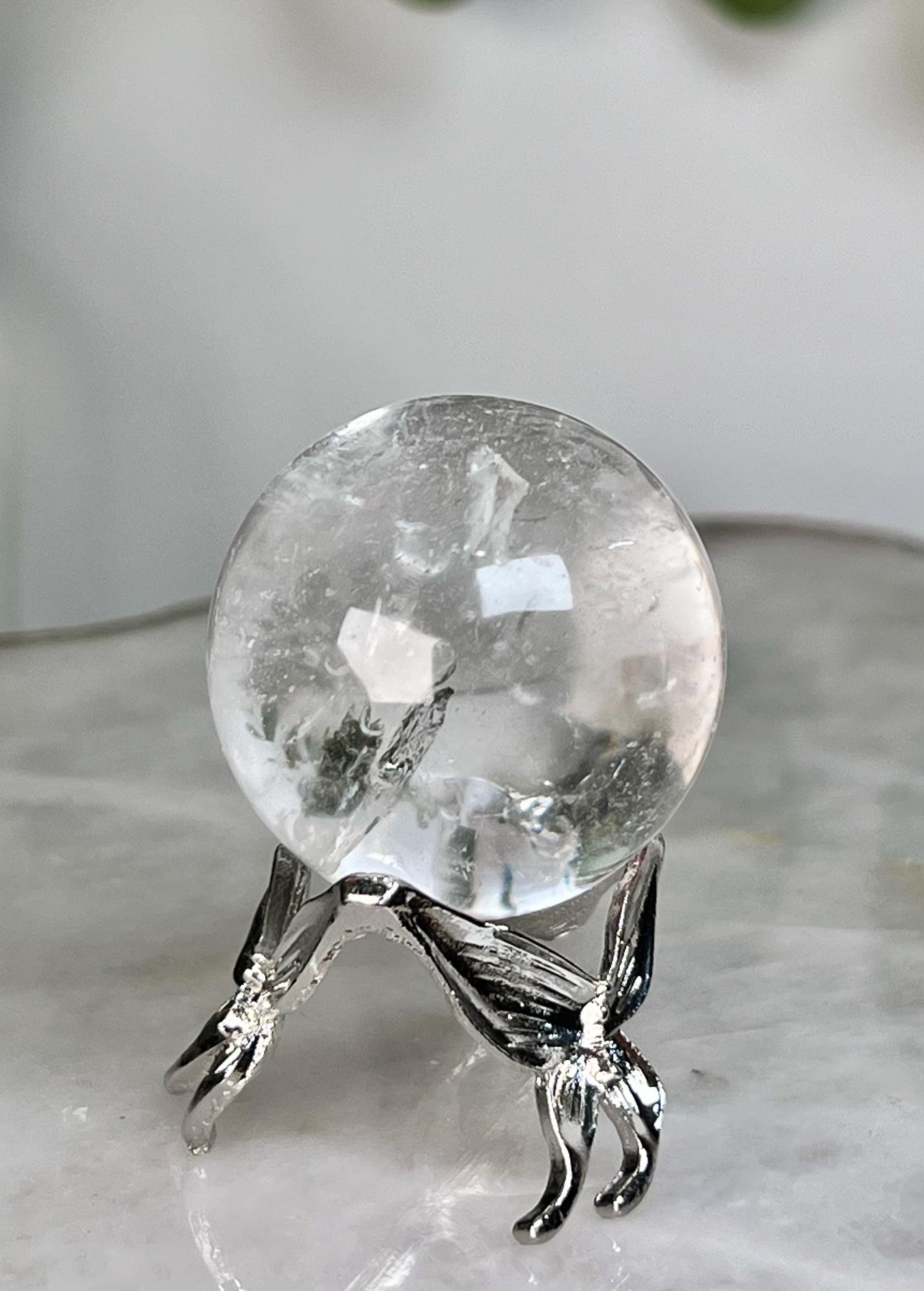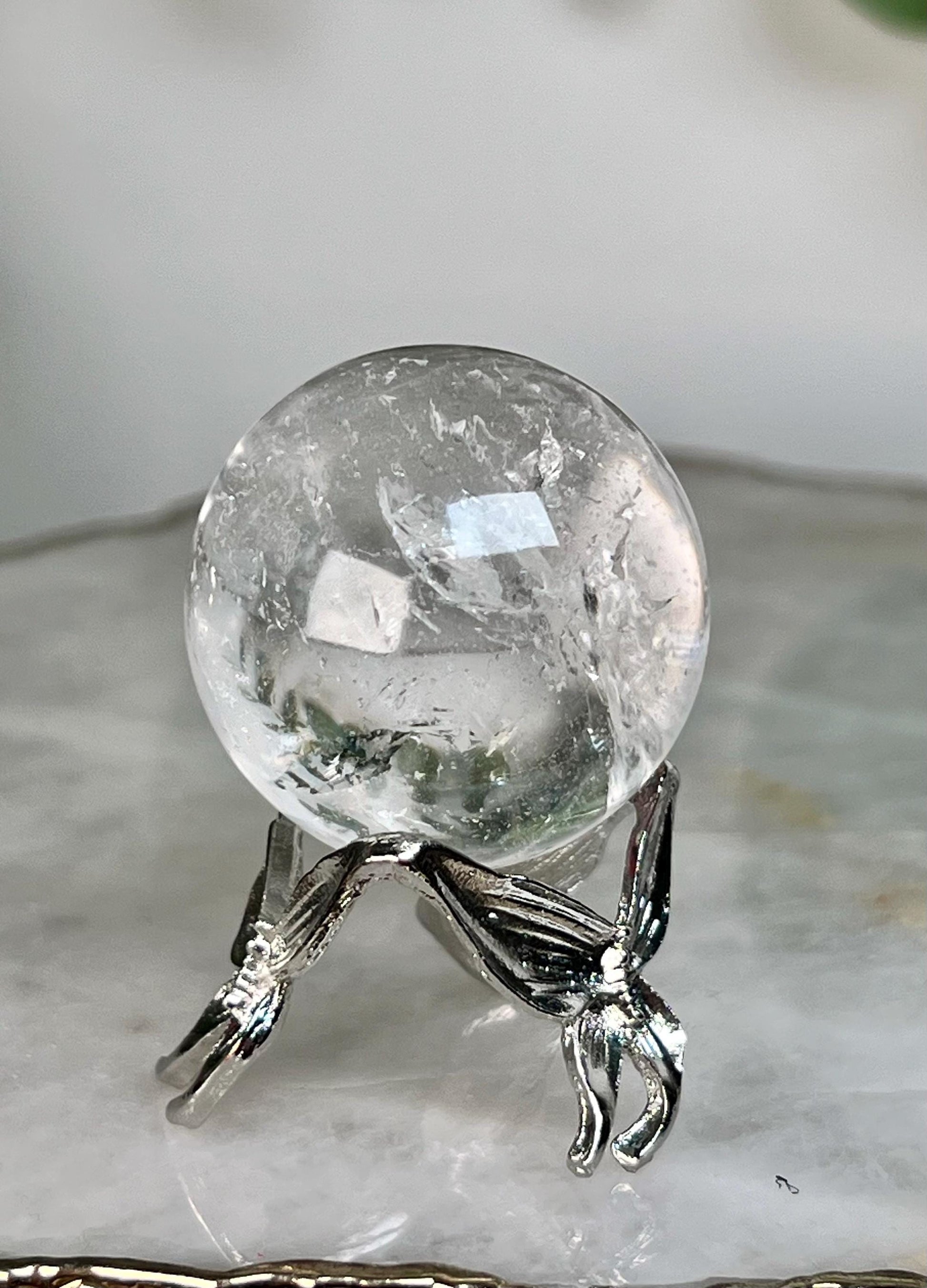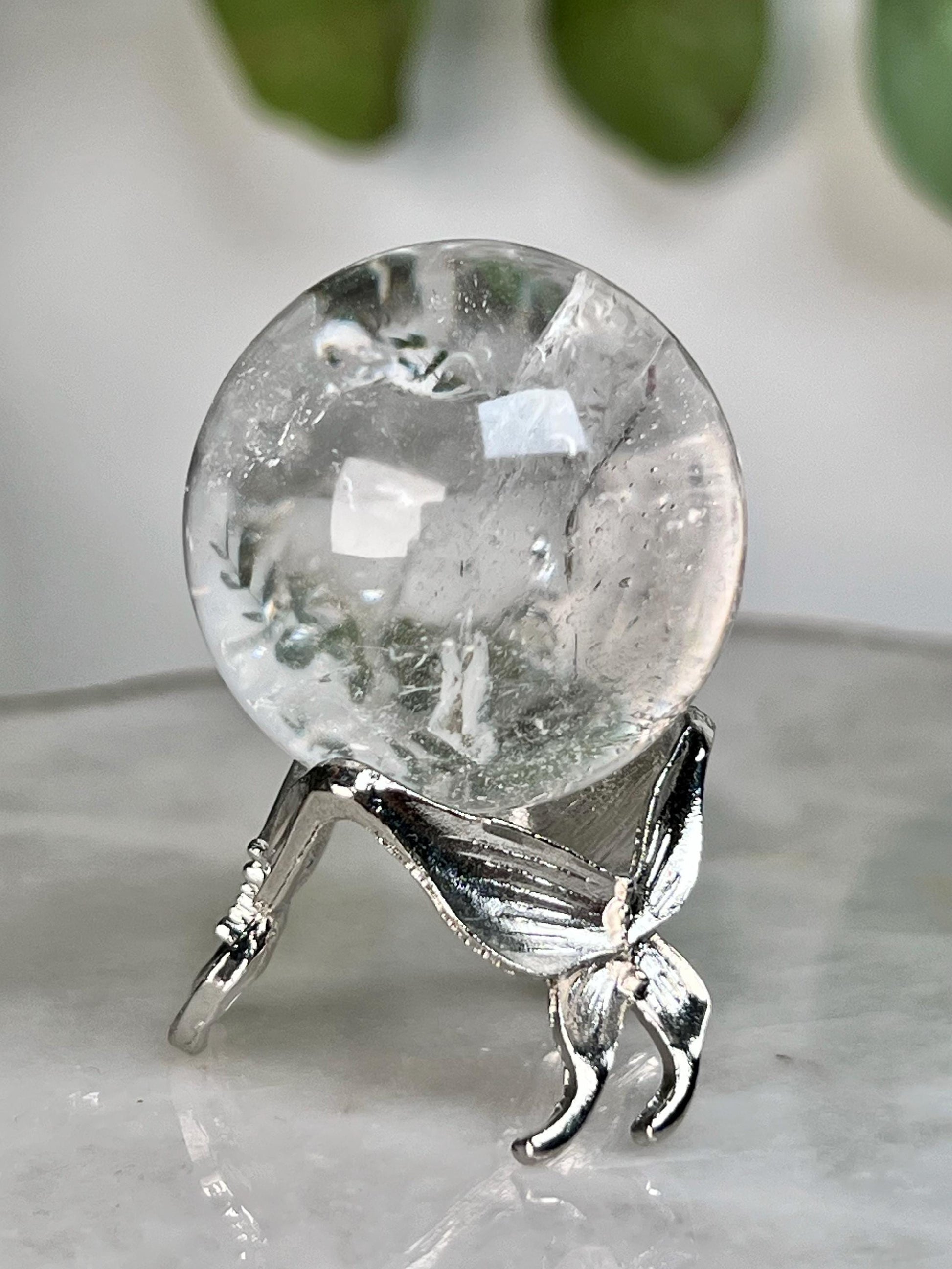 Grade A Lemurian Quartz Sphere with Stand | Serra do Cabral Minas Gerais Brazil | Energetically Activated LS12, 62g, 34mm