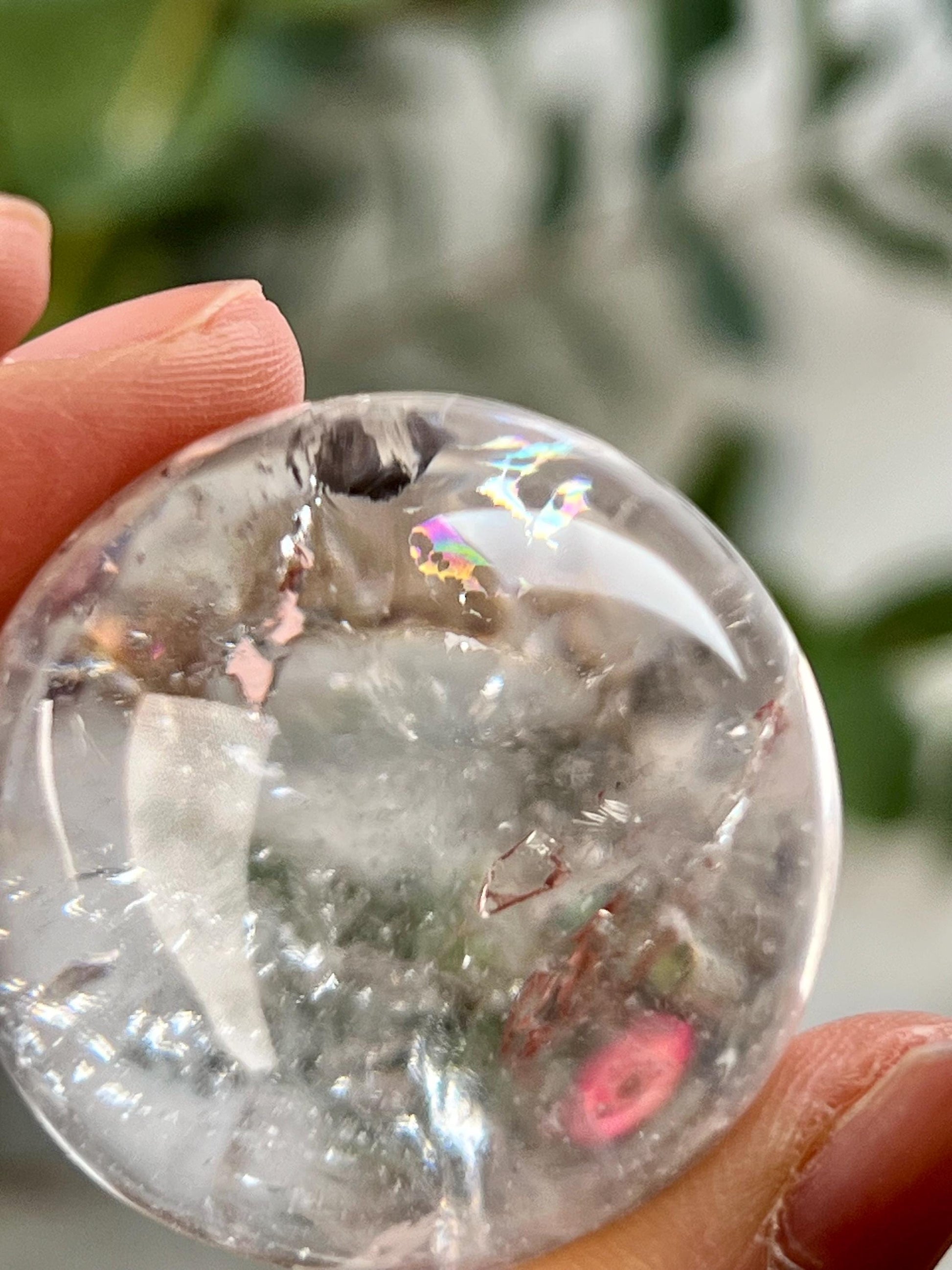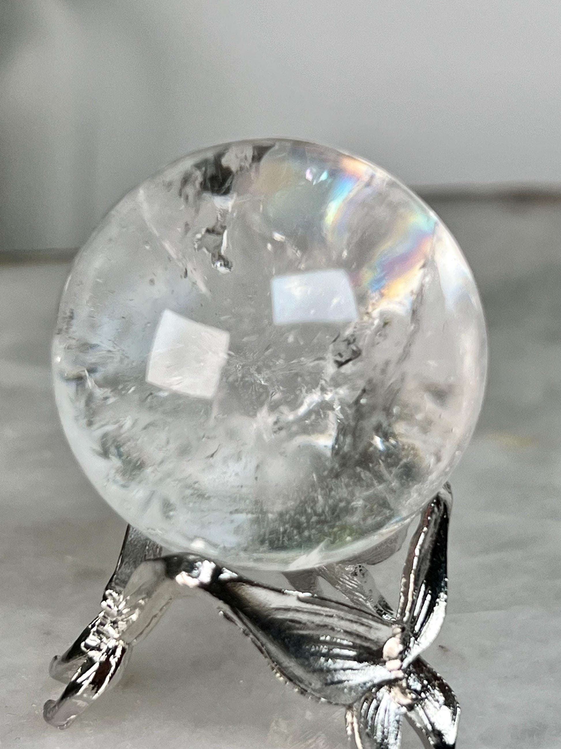 What makes this sphere extra special is the presence of rainbow inclusions within the quartz. Rainbows are believed to appear as a blessing of hope and joy, activating the heart and uplifting the spirit. Combined with the ancient wisdom of Lemurian energy, this piece carries a beautiful balance of clarity, harmony, and higher consciousness.