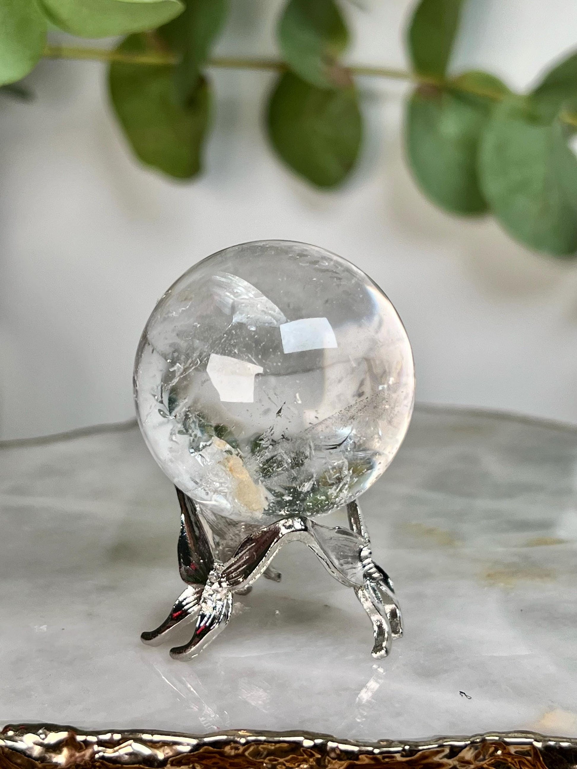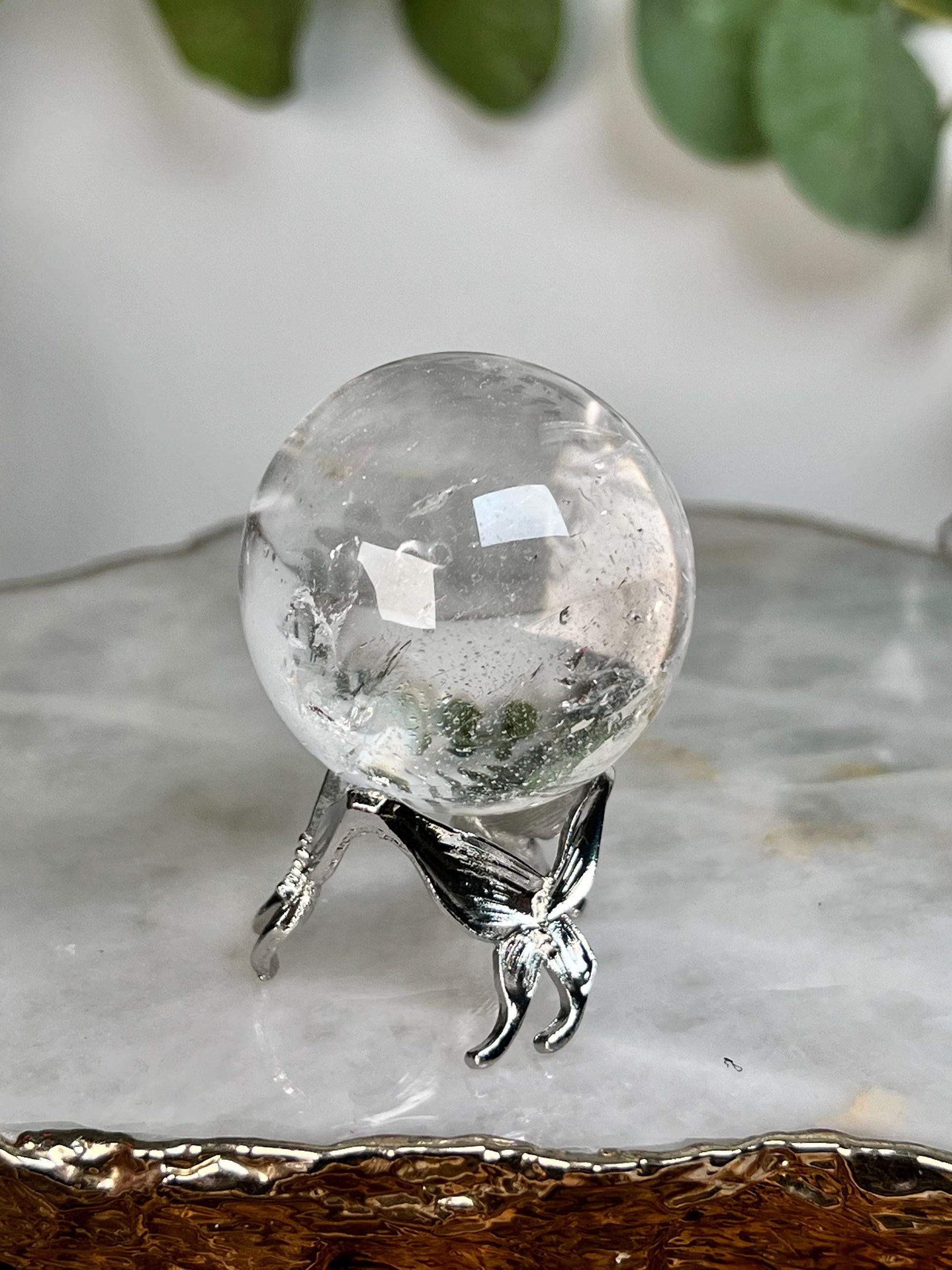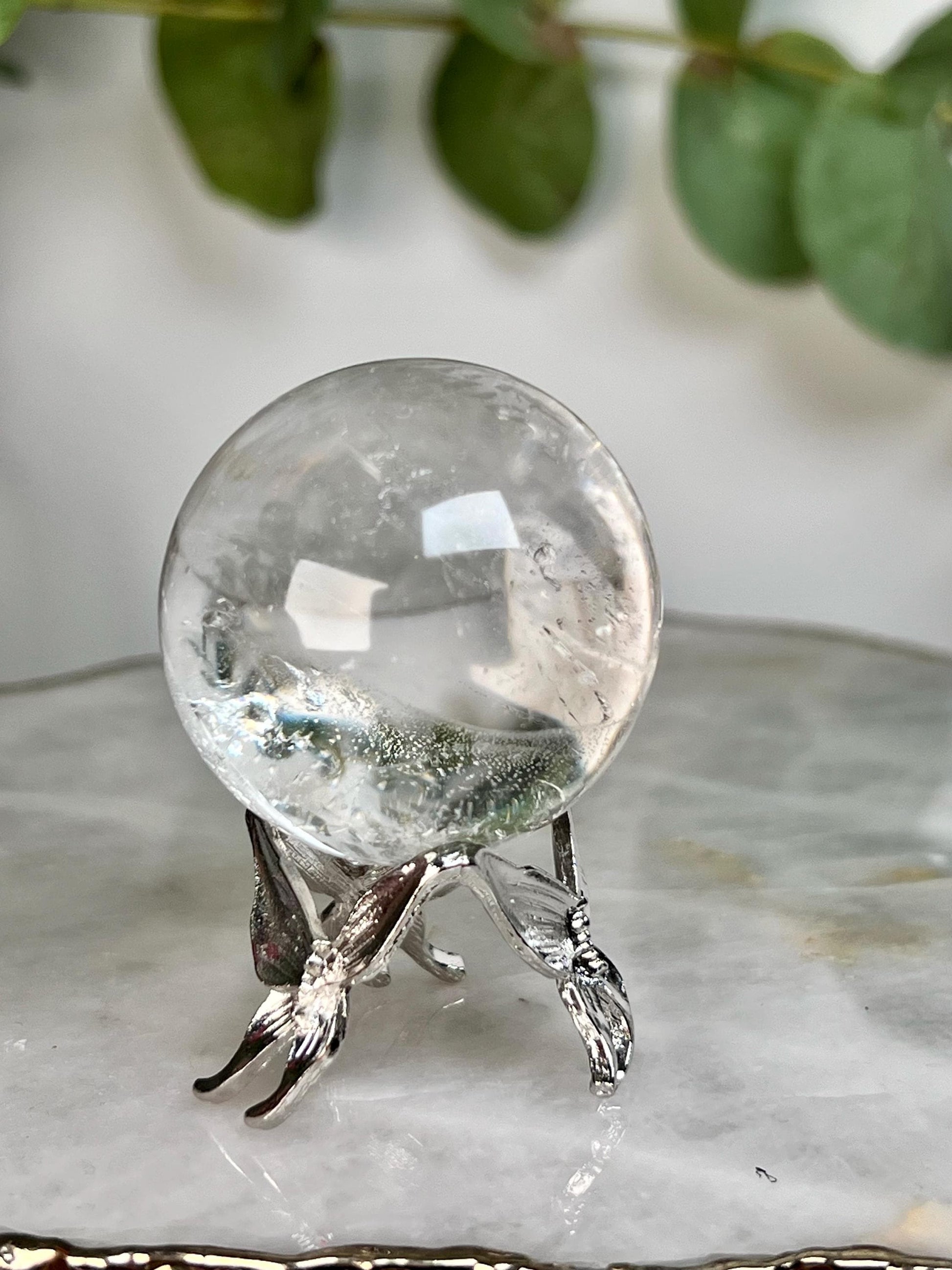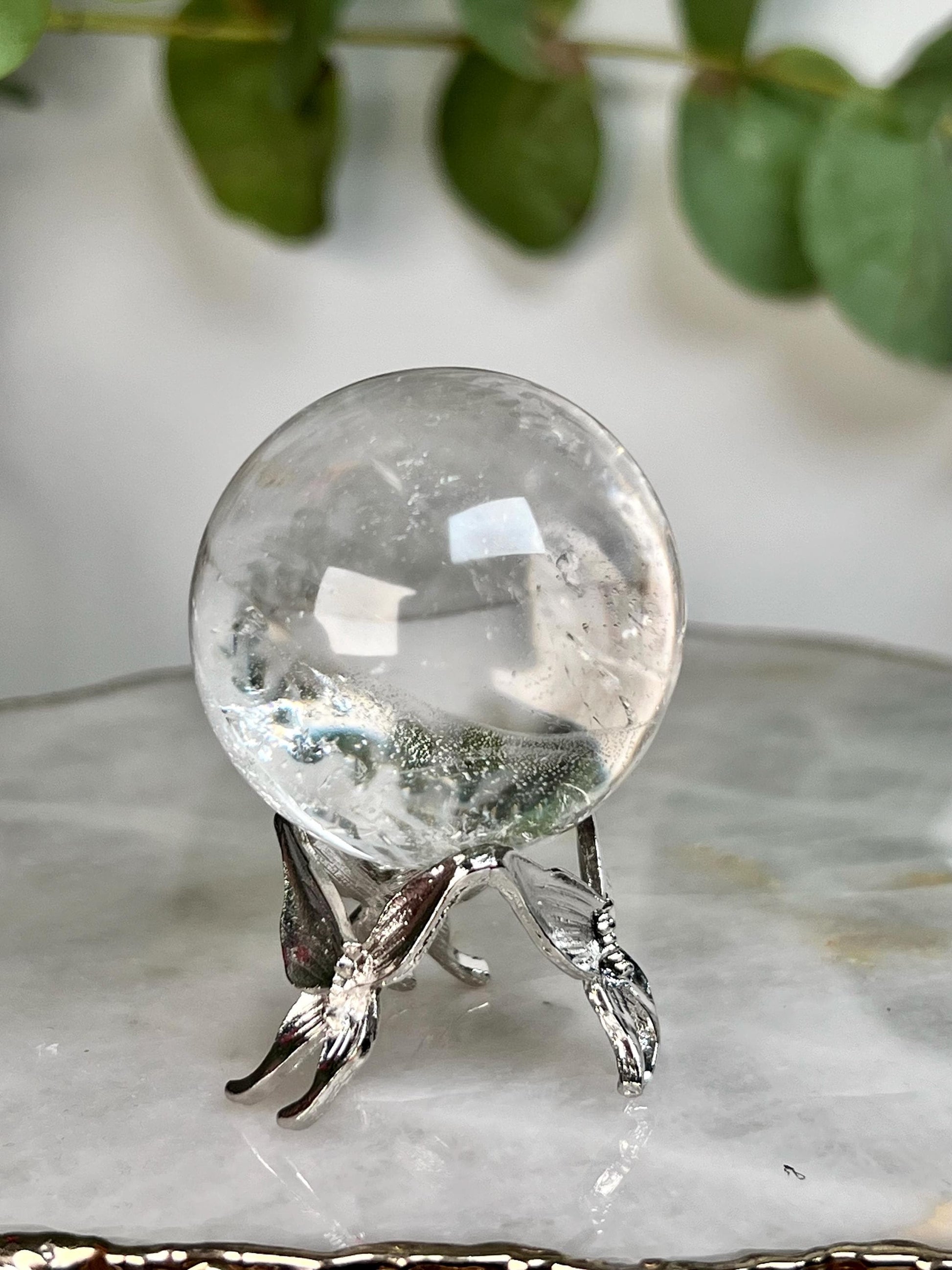 Grade A Lemurian Quartz Sphere with Stand | Serra do Cabral Minas Gerais Brazil | Energetically Activated LS14, 101g, 41mm