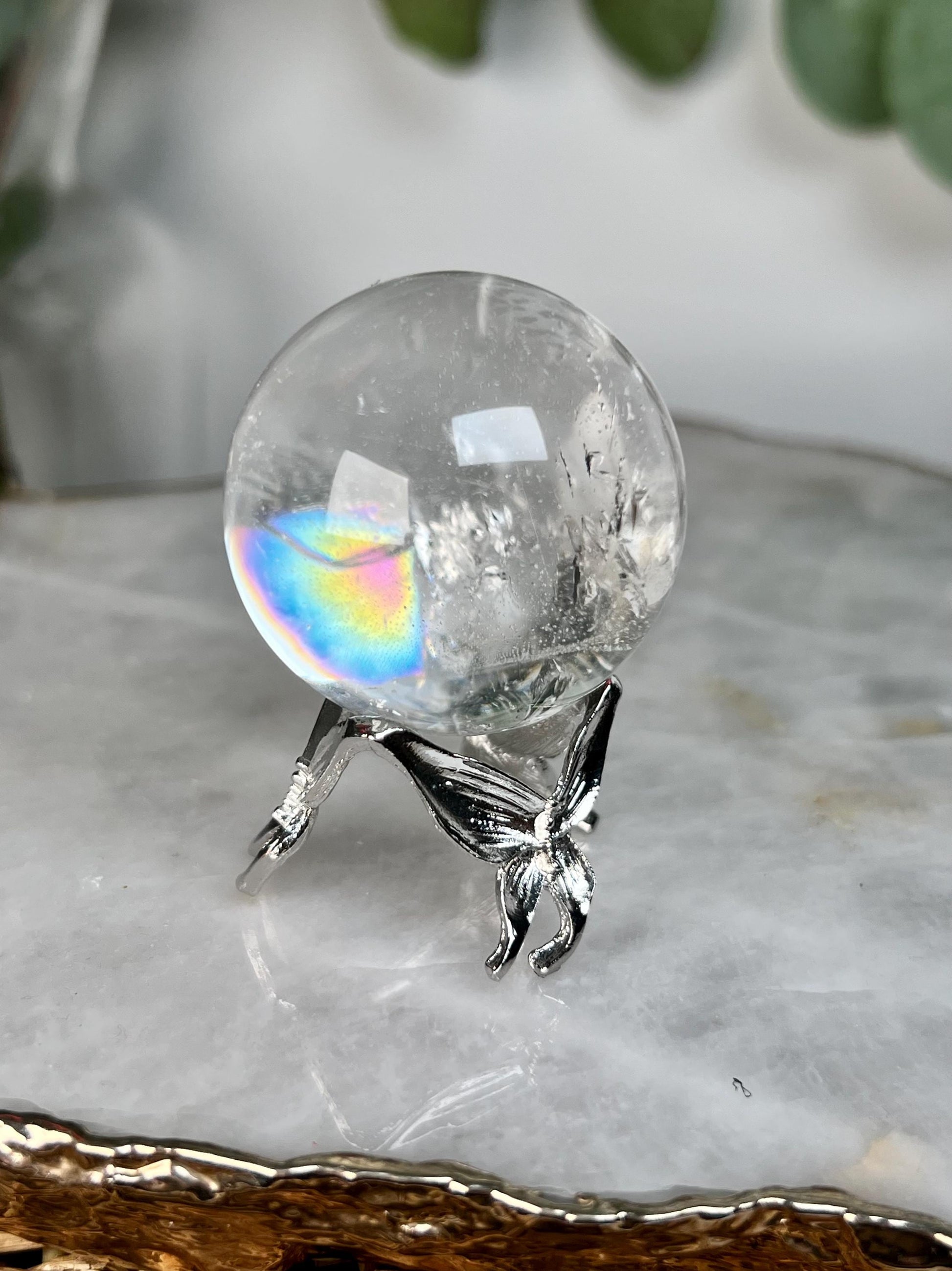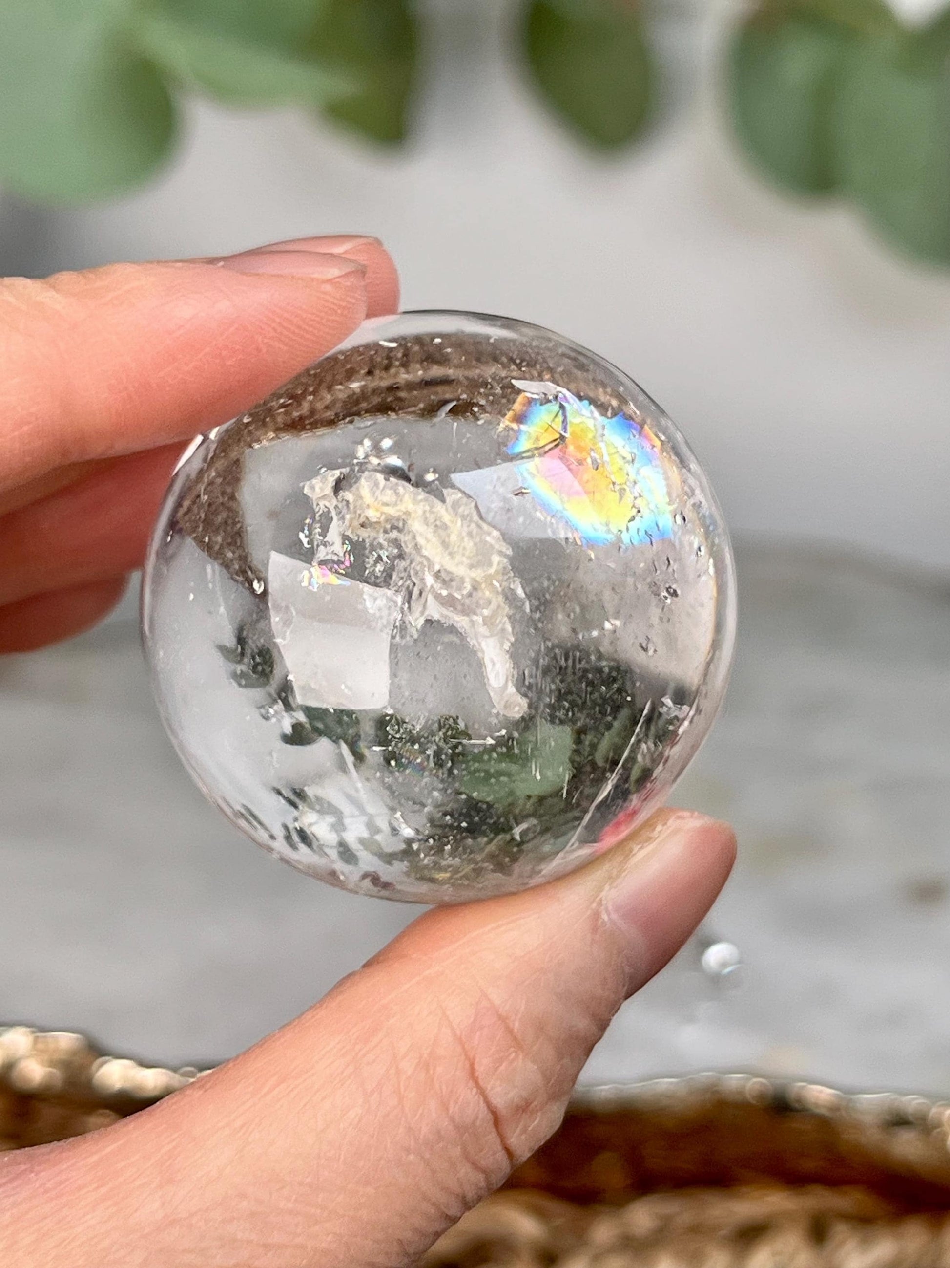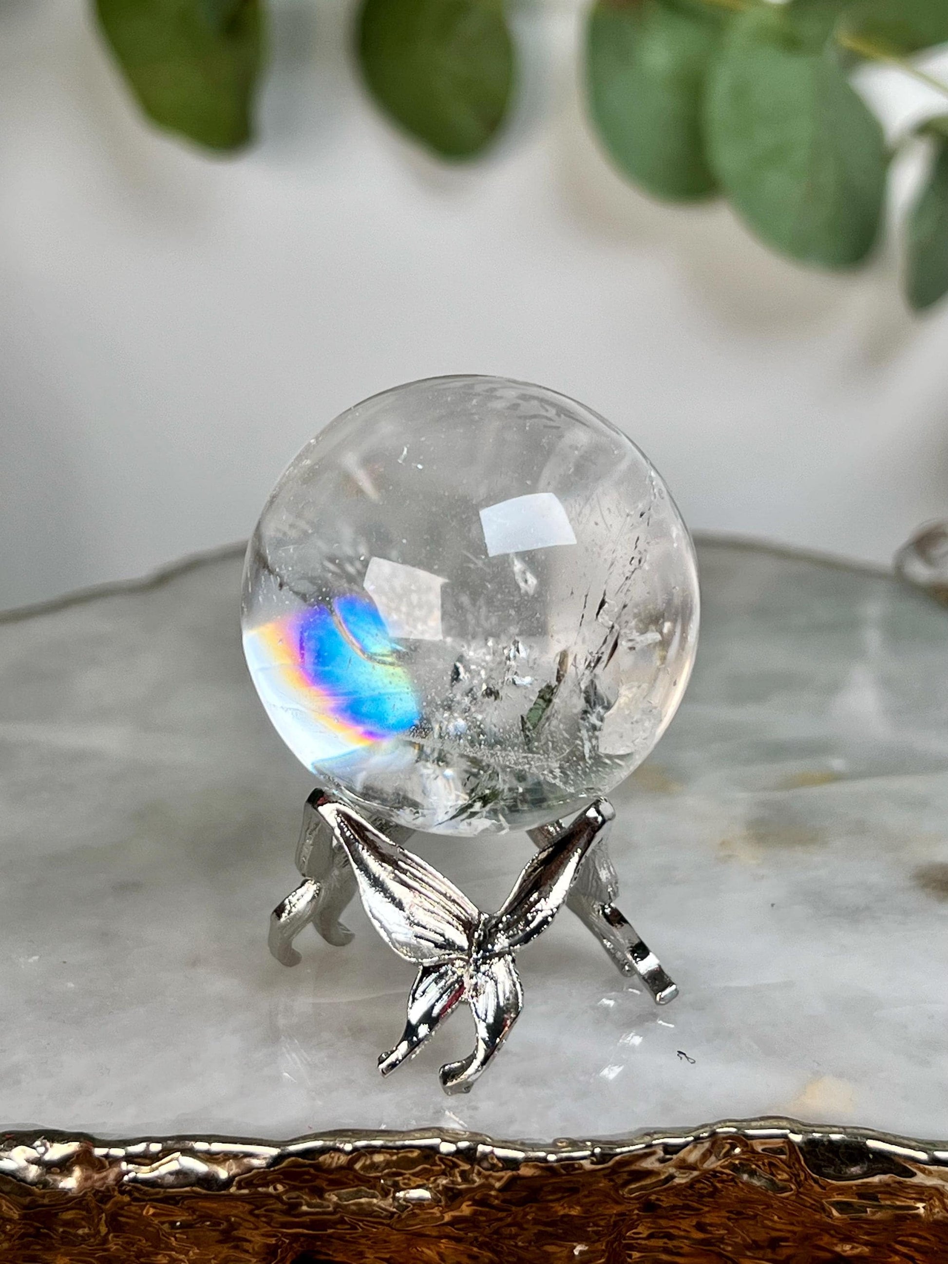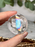 What makes this sphere extra special is the presence of rainbow inclusions within the quartz. Rainbows are believed to appear as a blessing of hope and joy, activating the heart and uplifting the spirit. Combined with the ancient wisdom of Lemurian energy, this piece carries a beautiful balance of clarity, harmony, and higher consciousness.
