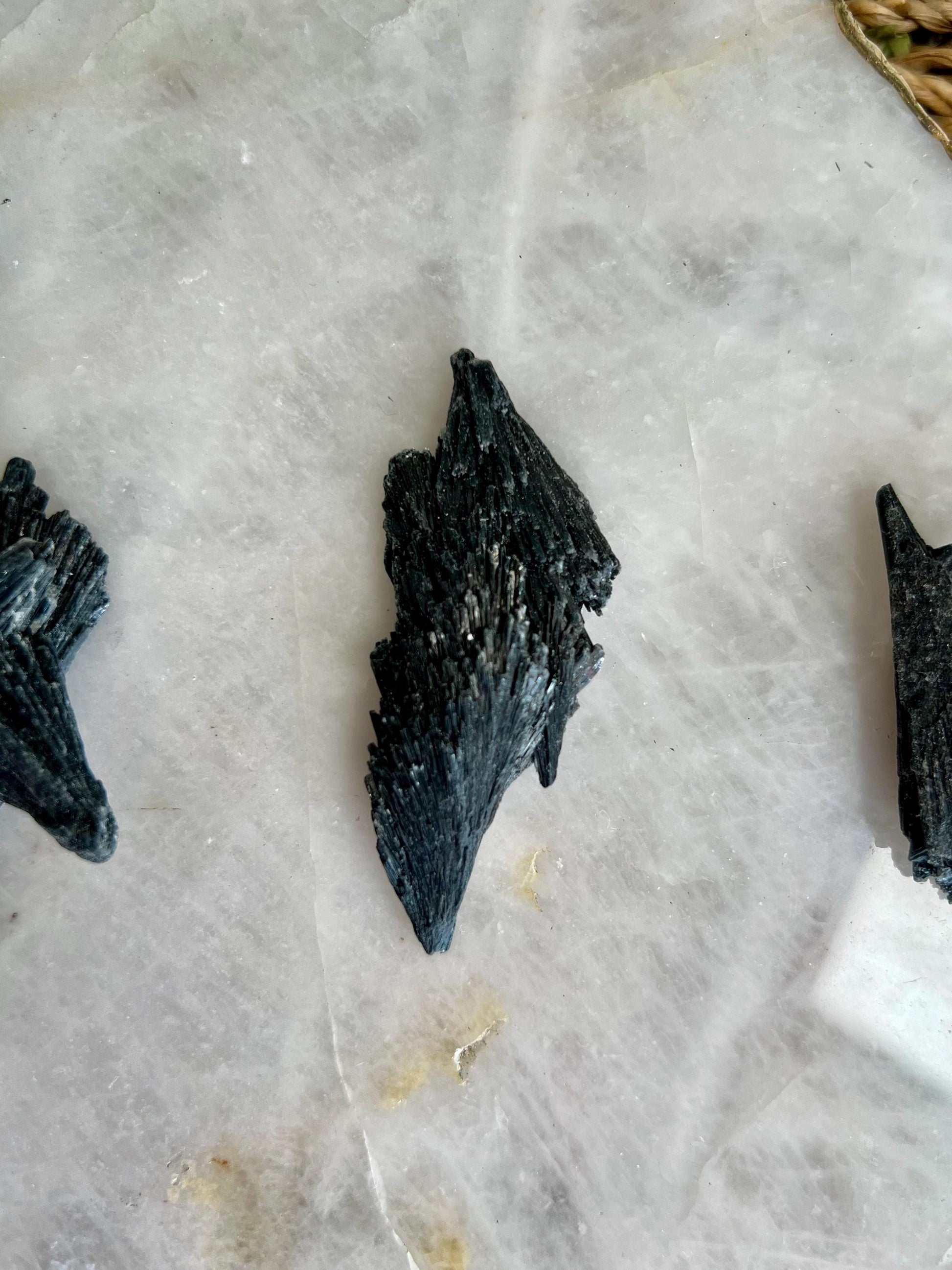 Spiritual Connection: Despite its grounding nature, Black Kyanite also assists in connecting to higher spiritual realms, facilitating communication with spirit guides while ensuring you remain grounded.