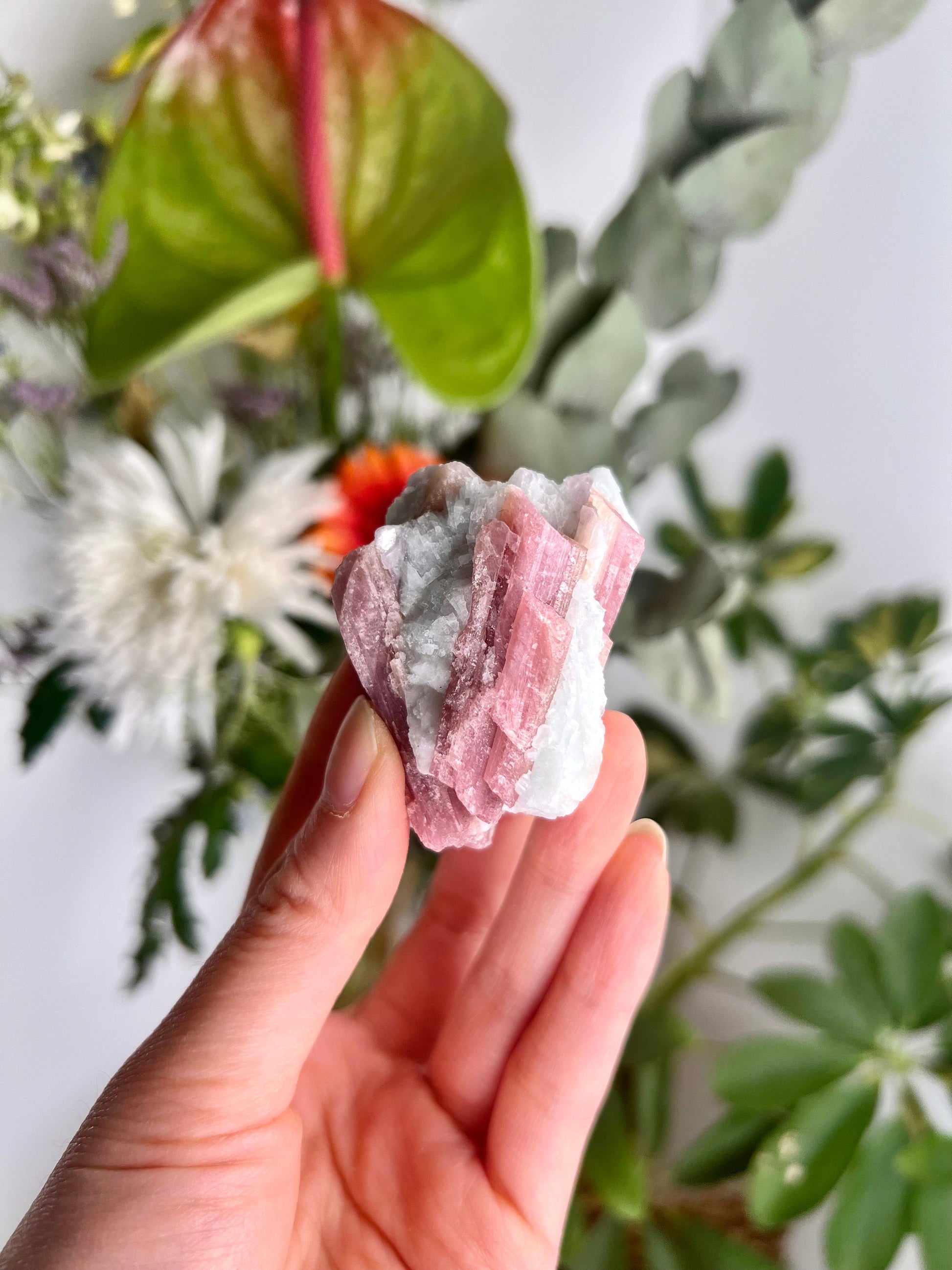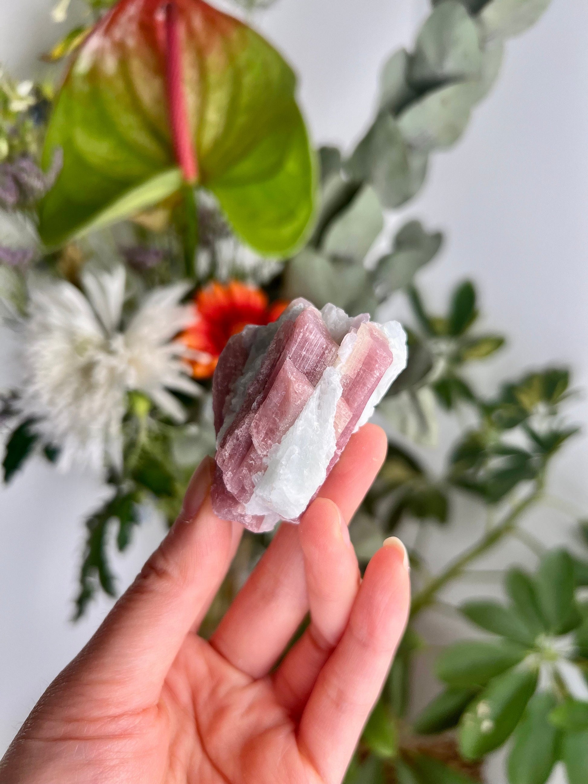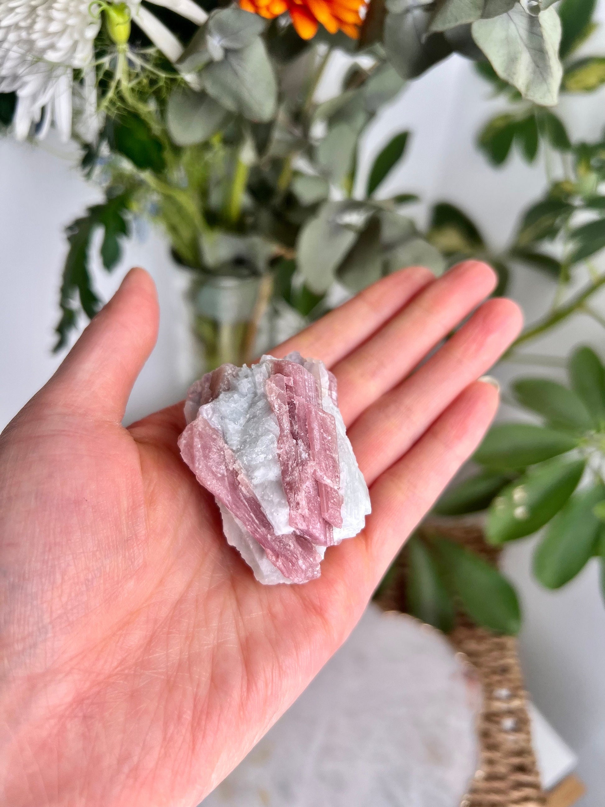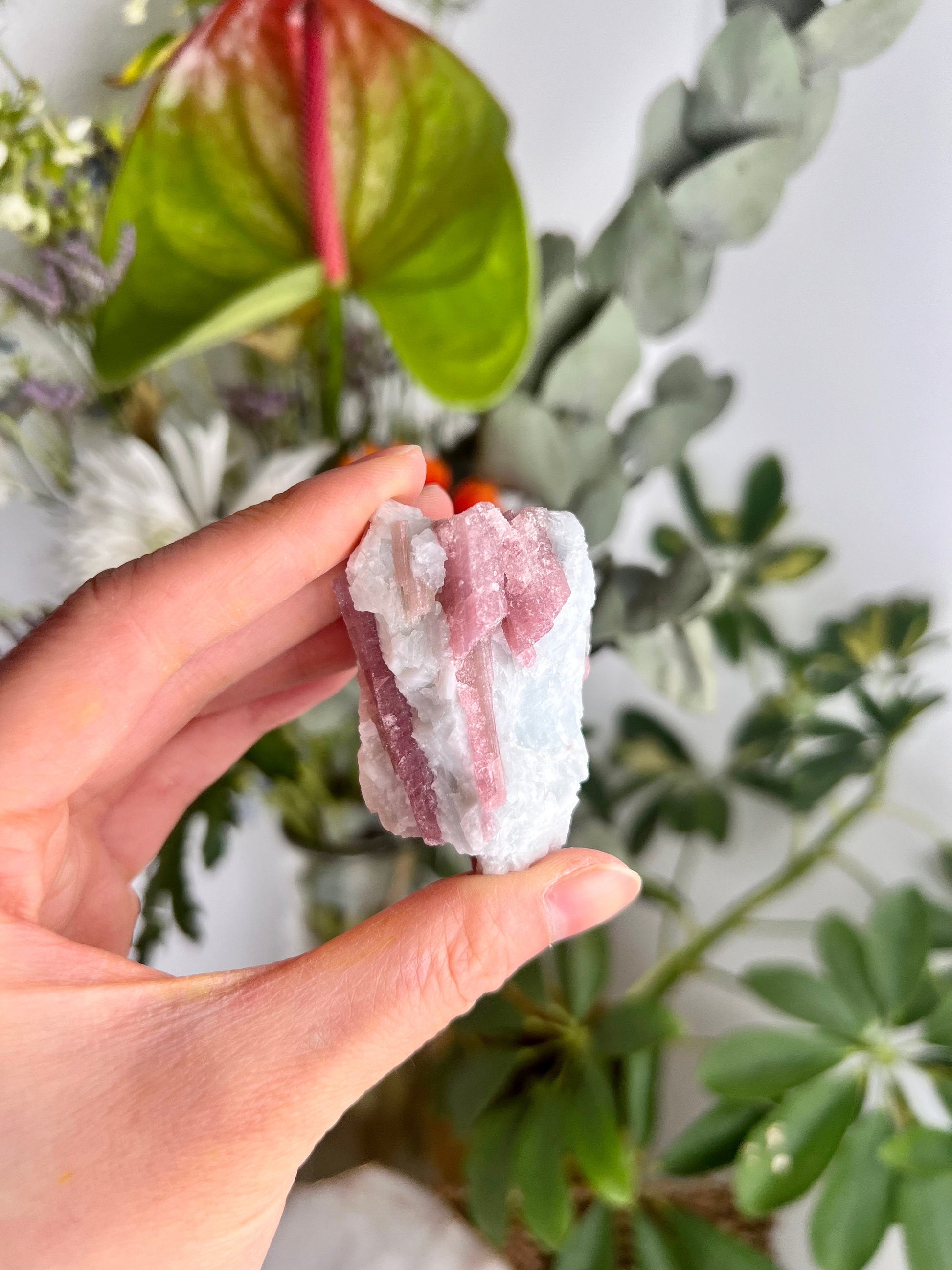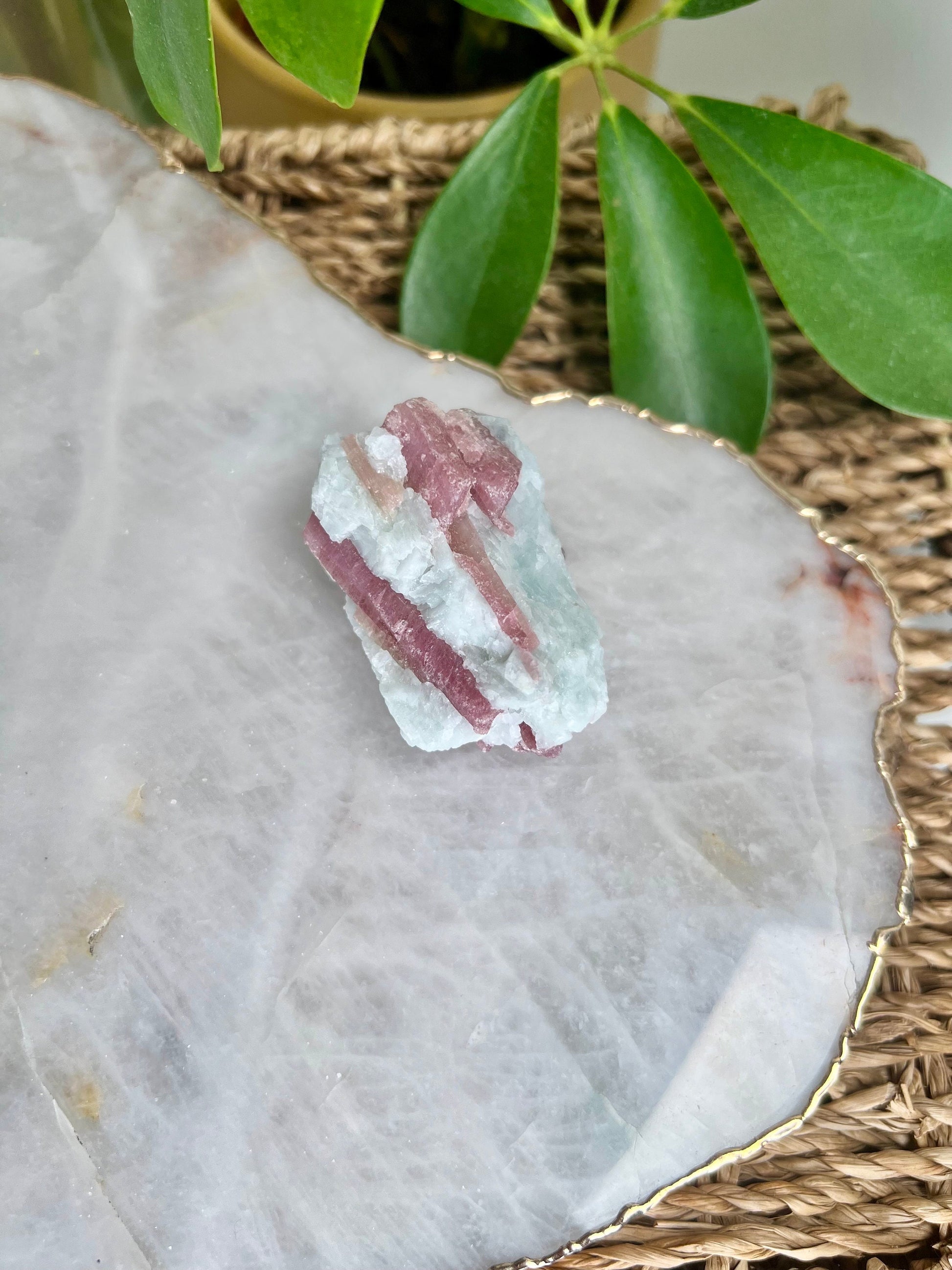 Grade A Natural Pink Tourmaline on Aquamarine,A Harmonious Blend of Love and Serenity PTC22, 76g