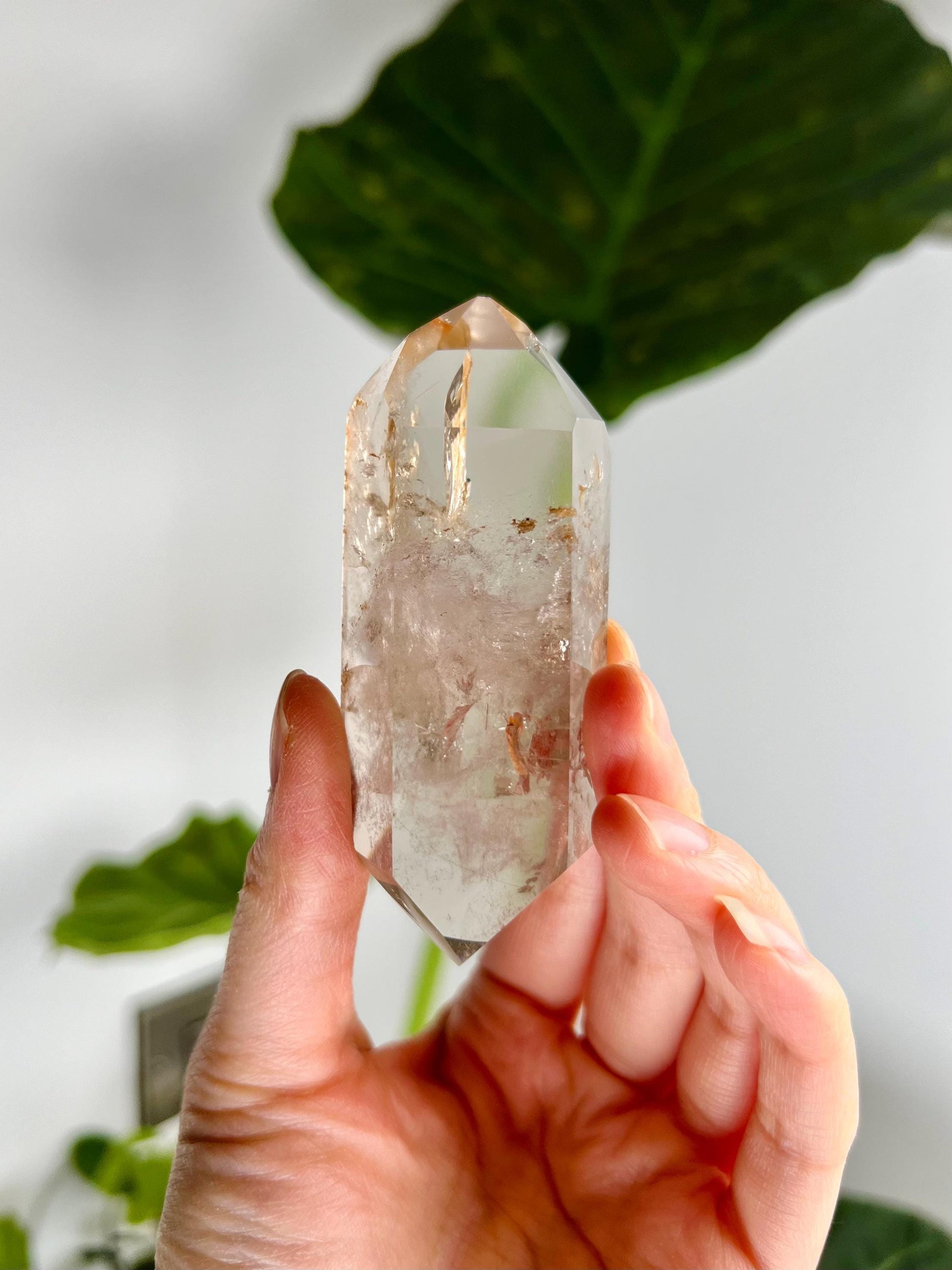 🔮Metaphysical Properties: Double-Terminated Quartz with Hematite and Iron inclusions is a potent tool for grounding, protection, and energy amplification. The Hematite inclusion brings stabilizing, earthy energy, fostering mental clarity, courage, and emotional balance. Iron inclusions, rooted in Earth energy, enhance your ability to remain grounded during spiritual work. This unique blend allows for a perfect combination of spiritual growth and emotional resilience while also fortifying the aura and shielding from negative influences.