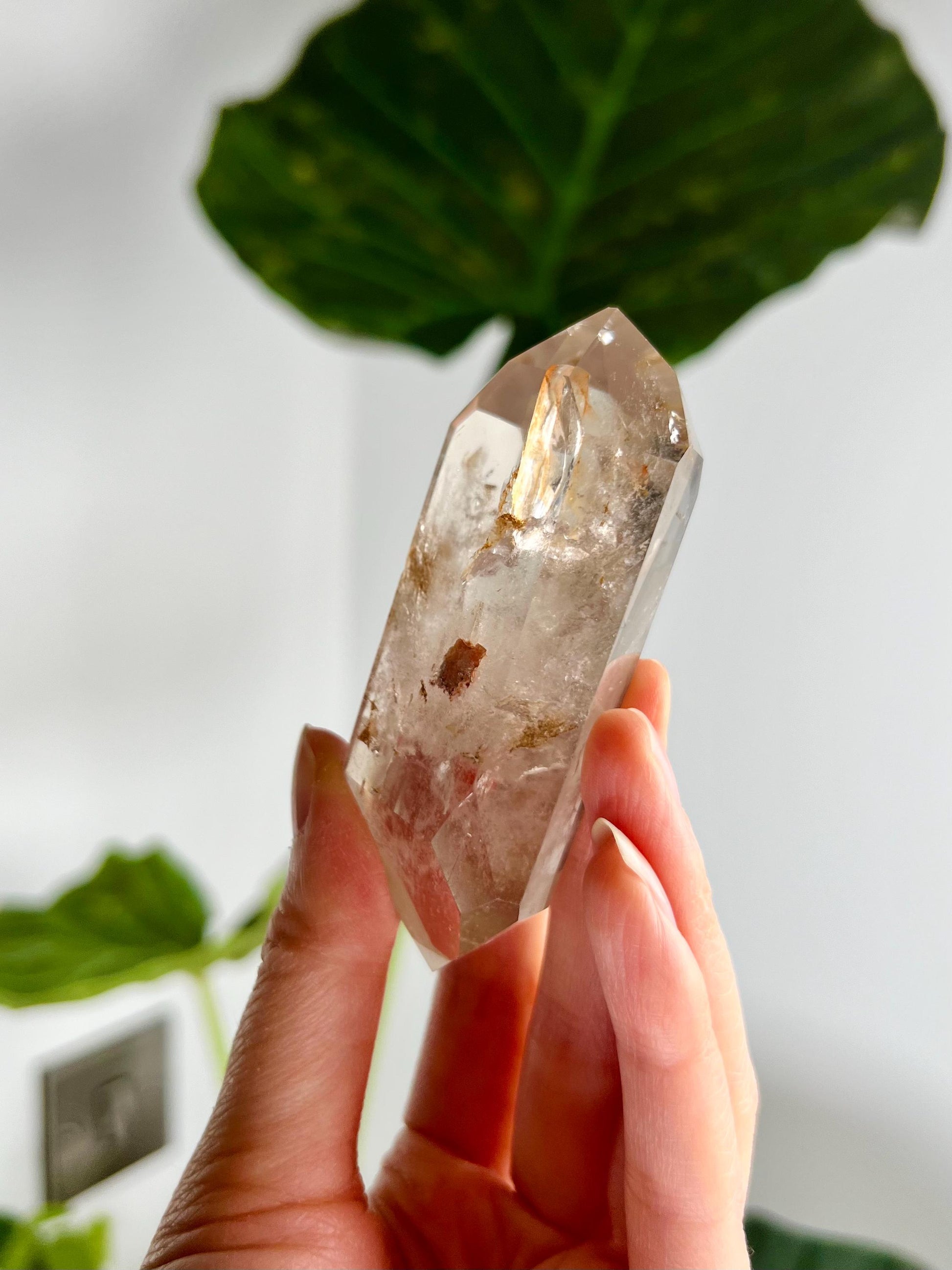 The Double-Terminated structure of the quartz allows it to send and receive energy simultaneously, creating a continuous flow of healing energy. It is especially helpful in spiritual communication and enhancing intuition. These inclusions in quartz also improve the crystal's ability to balance dualities-like spiritual and physical realities, thought and action-making it a perfect tool for those undergoing personal transformation.