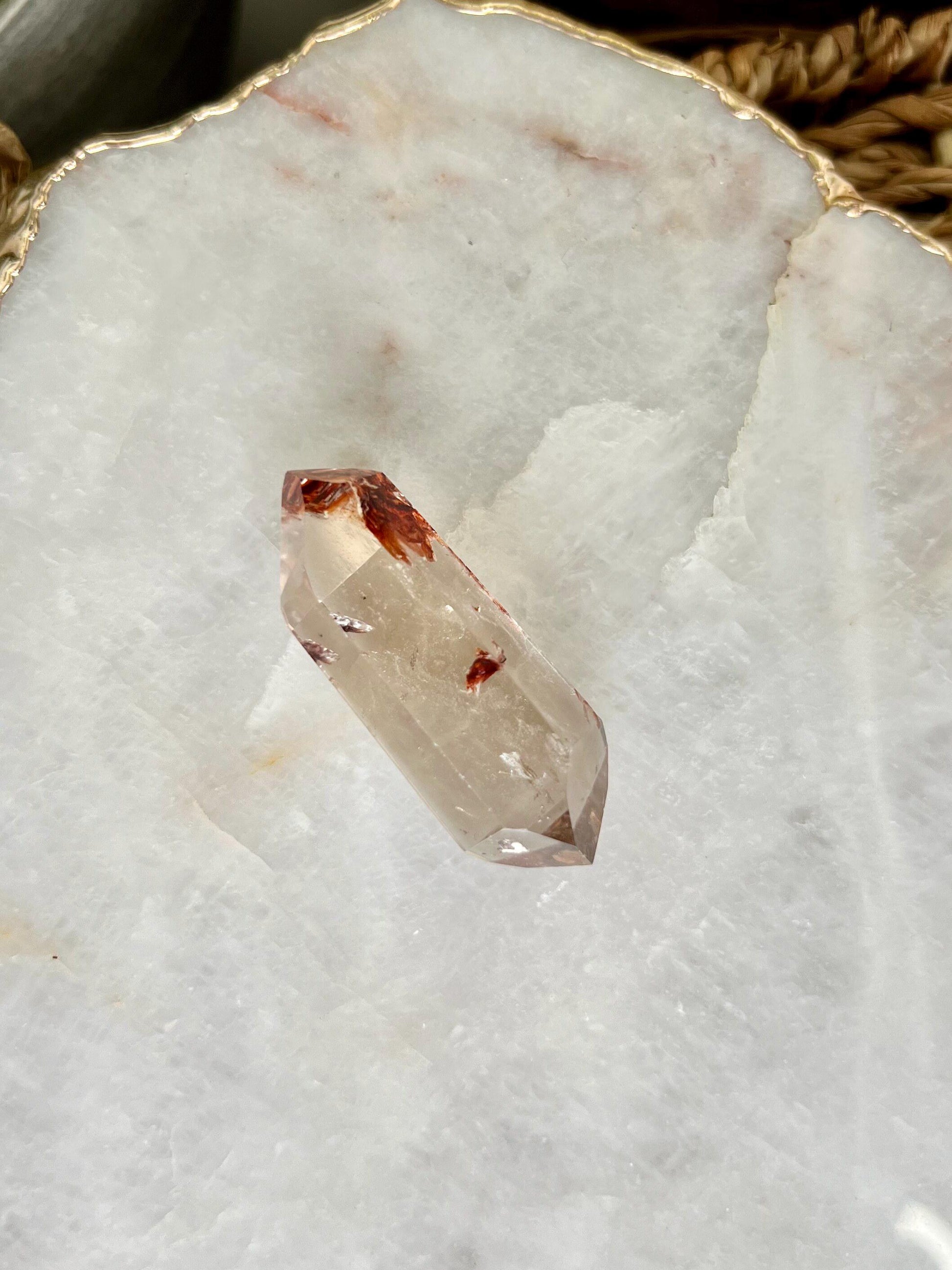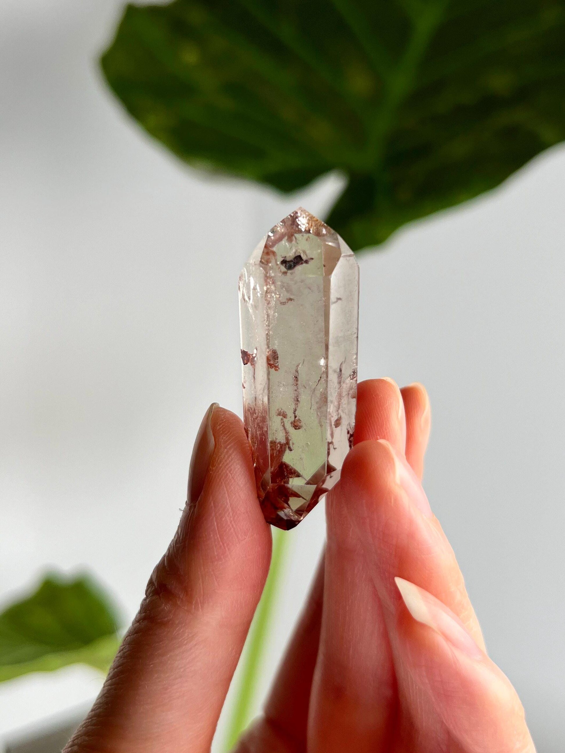 🔮Metaphysical Properties: Double-Terminated Quartz with Hematite and Iron inclusions is a potent tool for grounding, protection, and energy amplification. The Hematite inclusion brings stabilizing, earthy energy, fostering mental clarity, courage, and emotional balance. Iron inclusions, rooted in Earth energy, enhance your ability to remain grounded during spiritual work. This unique blend allows for a perfect combination of spiritual growth and emotional resilience while also fortifying the aura and shielding from negative influences.