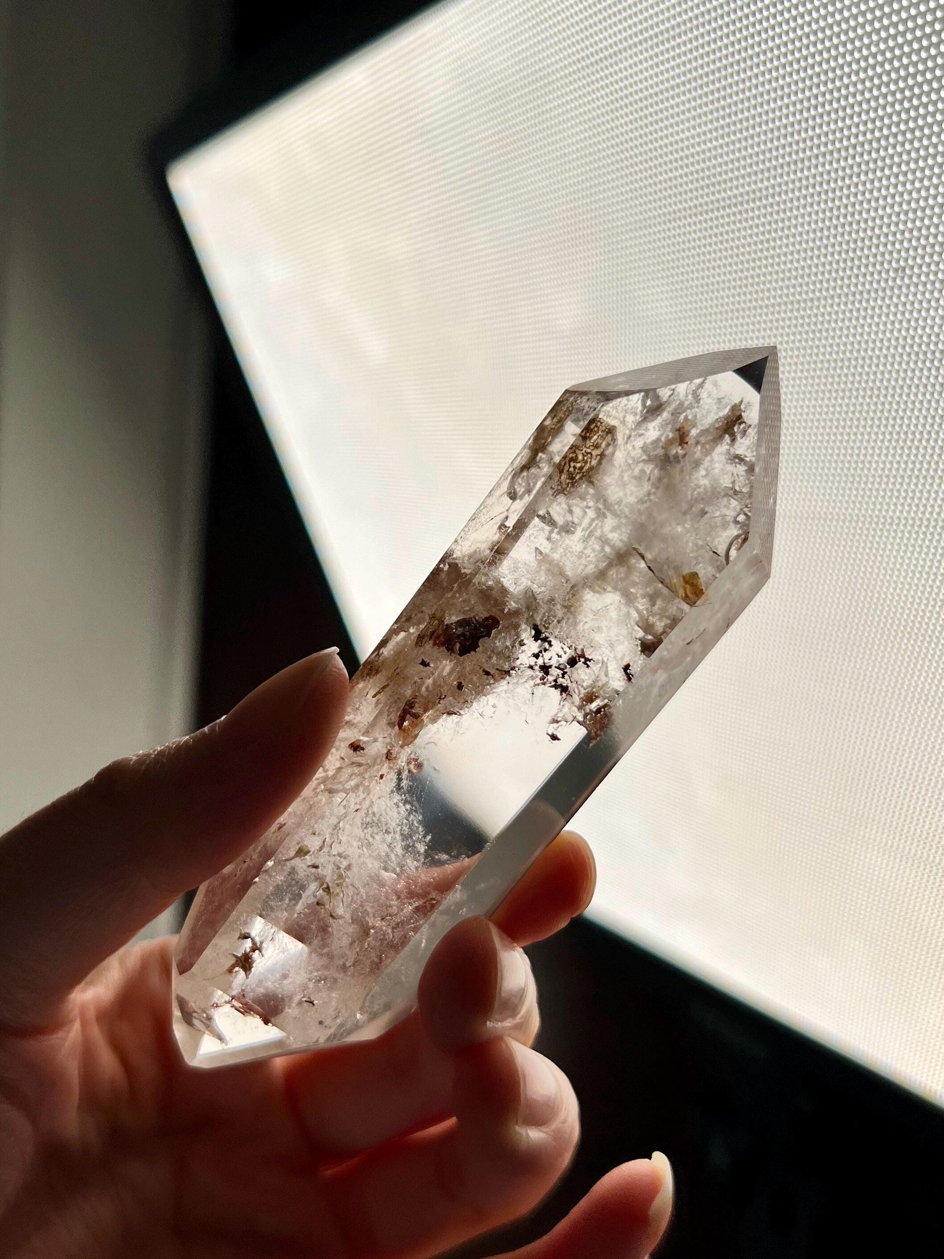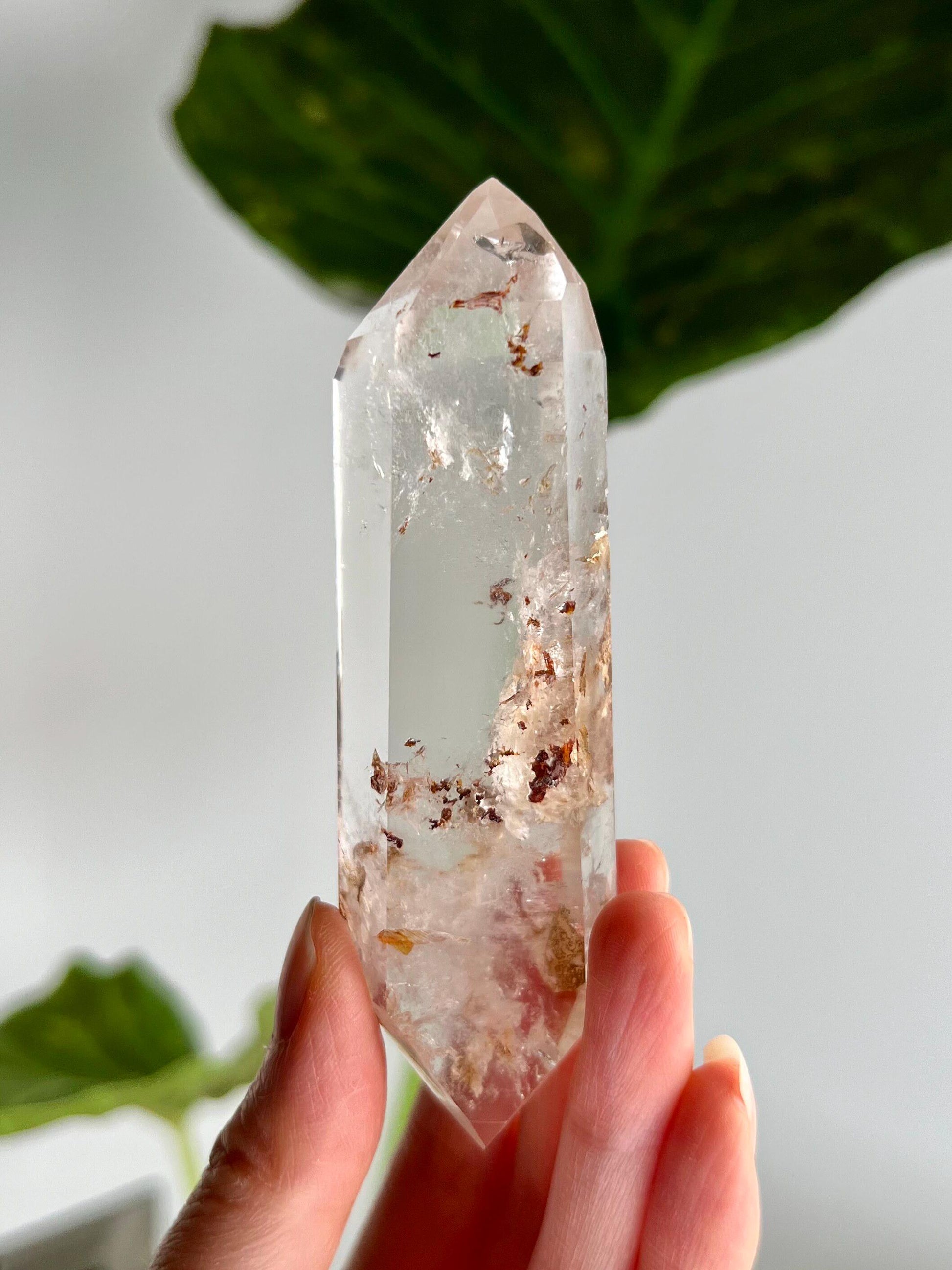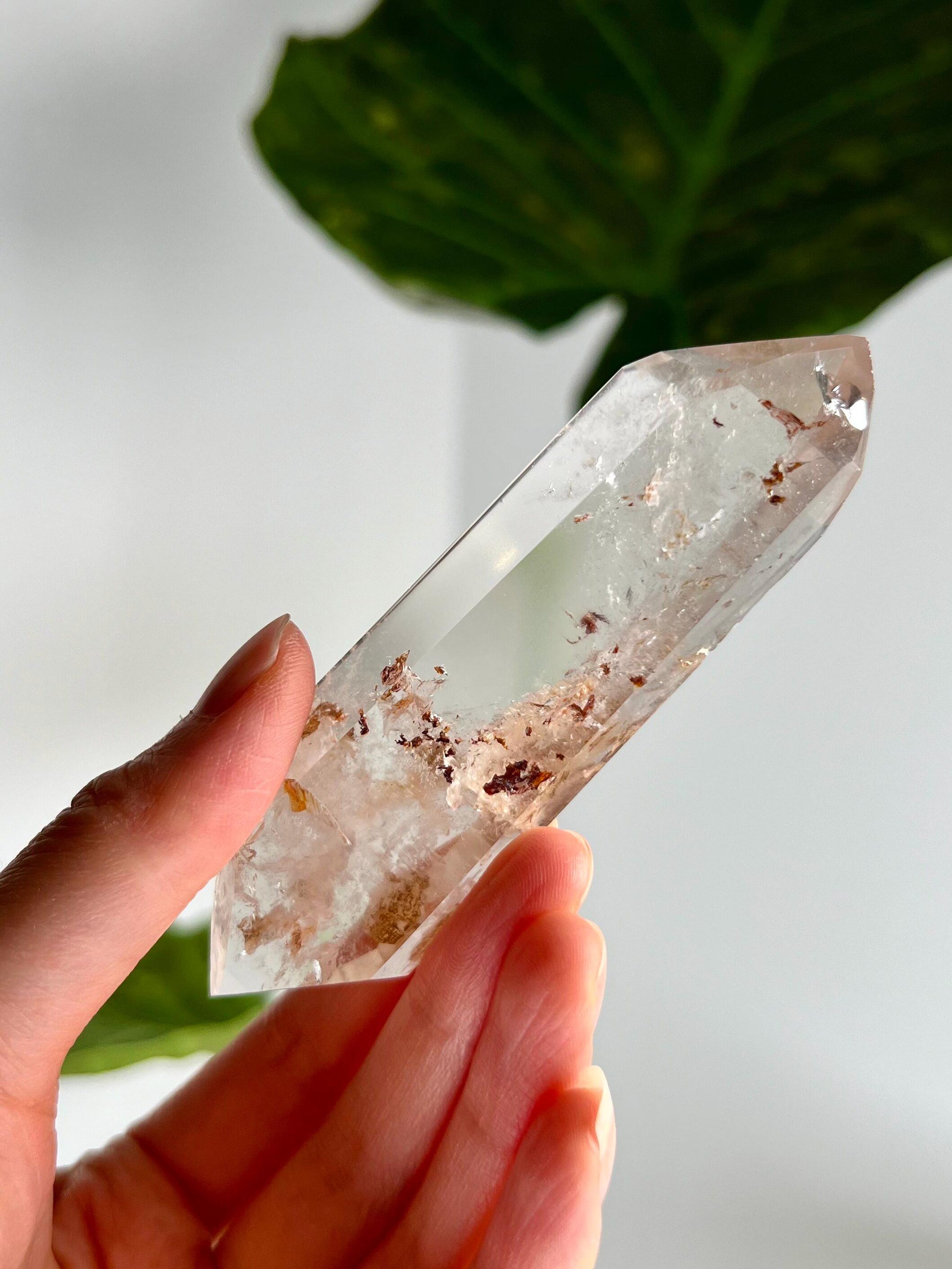 🔮Metaphysical Properties: Double-Terminated Quartz with Hematite and Iron inclusions is a potent tool for grounding, protection, and energy amplification. The Hematite inclusion brings stabilizing, earthy energy, fostering mental clarity, courage, and emotional balance. Iron inclusions, rooted in Earth energy, enhance your ability to remain grounded during spiritual work. This unique blend allows for a perfect combination of spiritual growth and emotional resilience while also fortifying the aura and shielding from negative influences.