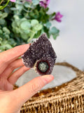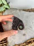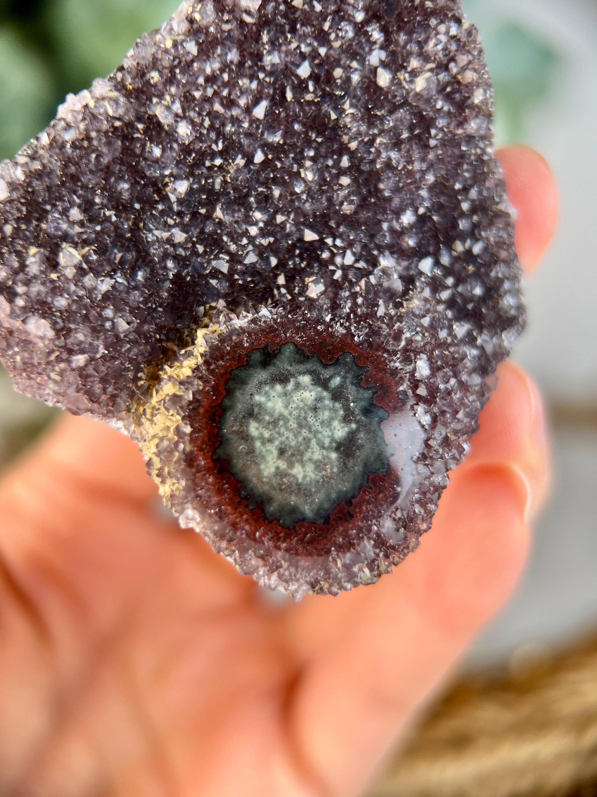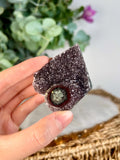 Grade A+ Natural Red Druzy with Green Jasper Stalactite Eye from Uruguay – Rainbow Amethyst, Crown, Heart and Root Chakra, US117, 62g