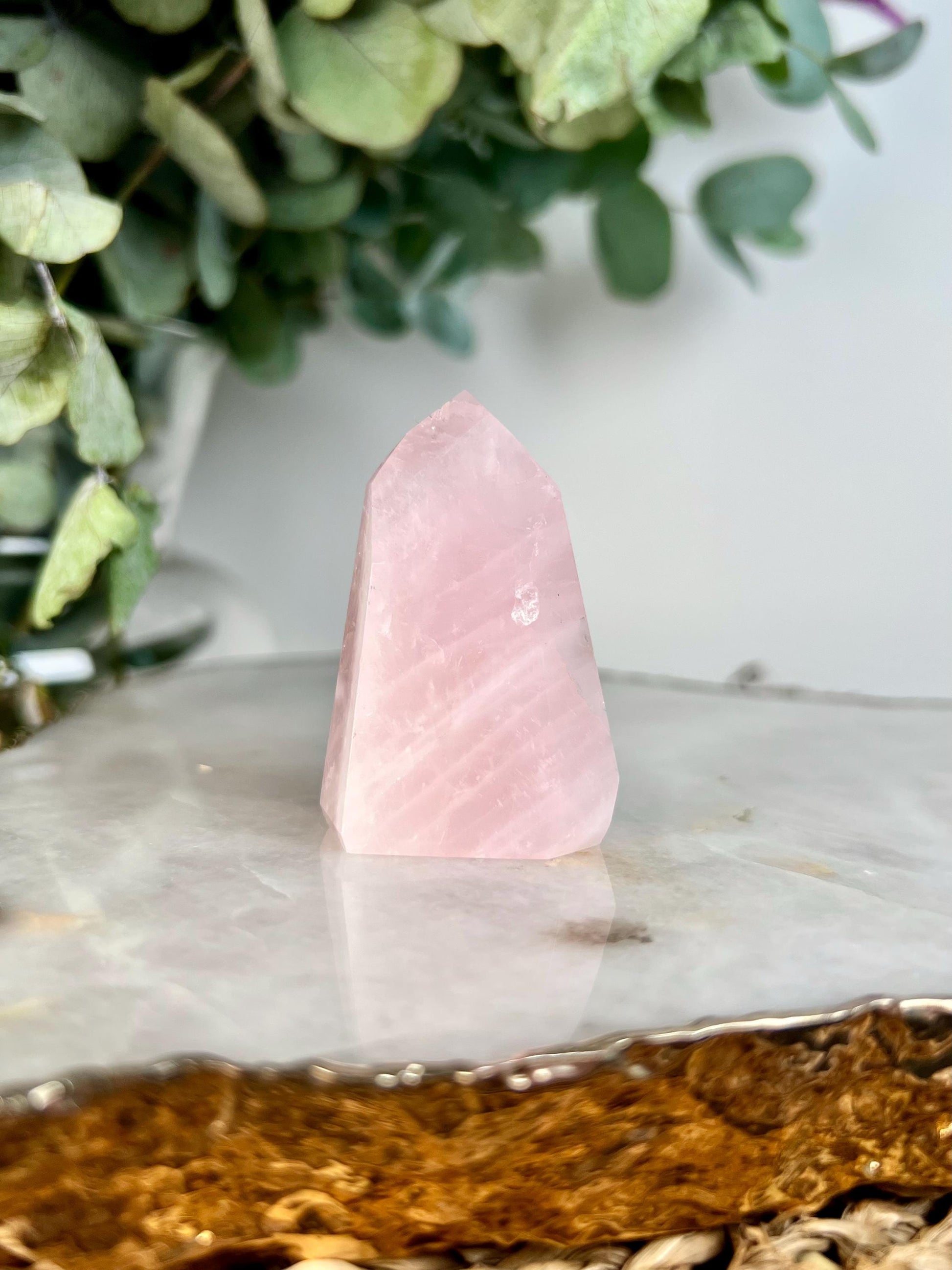 Sourced from Bahia, Brazil, these pieces carry a naturally nurturing and harmonizing frequency. The tower shape is intentional: it channels energy upward, making this crystal a potent tool for amplifying affirmations, supporting spiritual growth, and creating a beacon of love energy in your space.