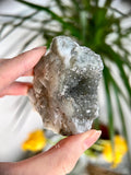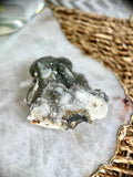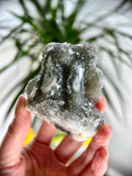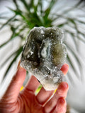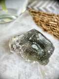 This Dark Grey/Black Druzy with Stalactite Eye combines grounding, intuitive, and emotional balancing properties. The dark druzy quartz connects deeply with the Root and Third Eye Chakras, offering grounding and heightened spiritual awareness. The Stalactite Eye focuses energy, amplifying intentions, and promoting clarity. Known as a unique variation of Rainbow Amethyst, this crystal bridges grounding energy with intuitive and emotional insight, making it a powerful tool for meditation and manifestation.