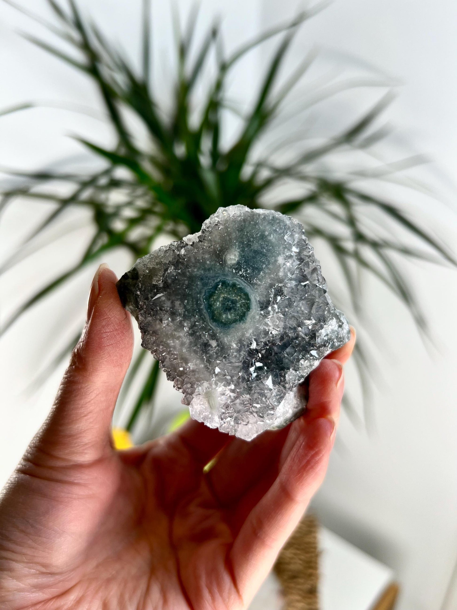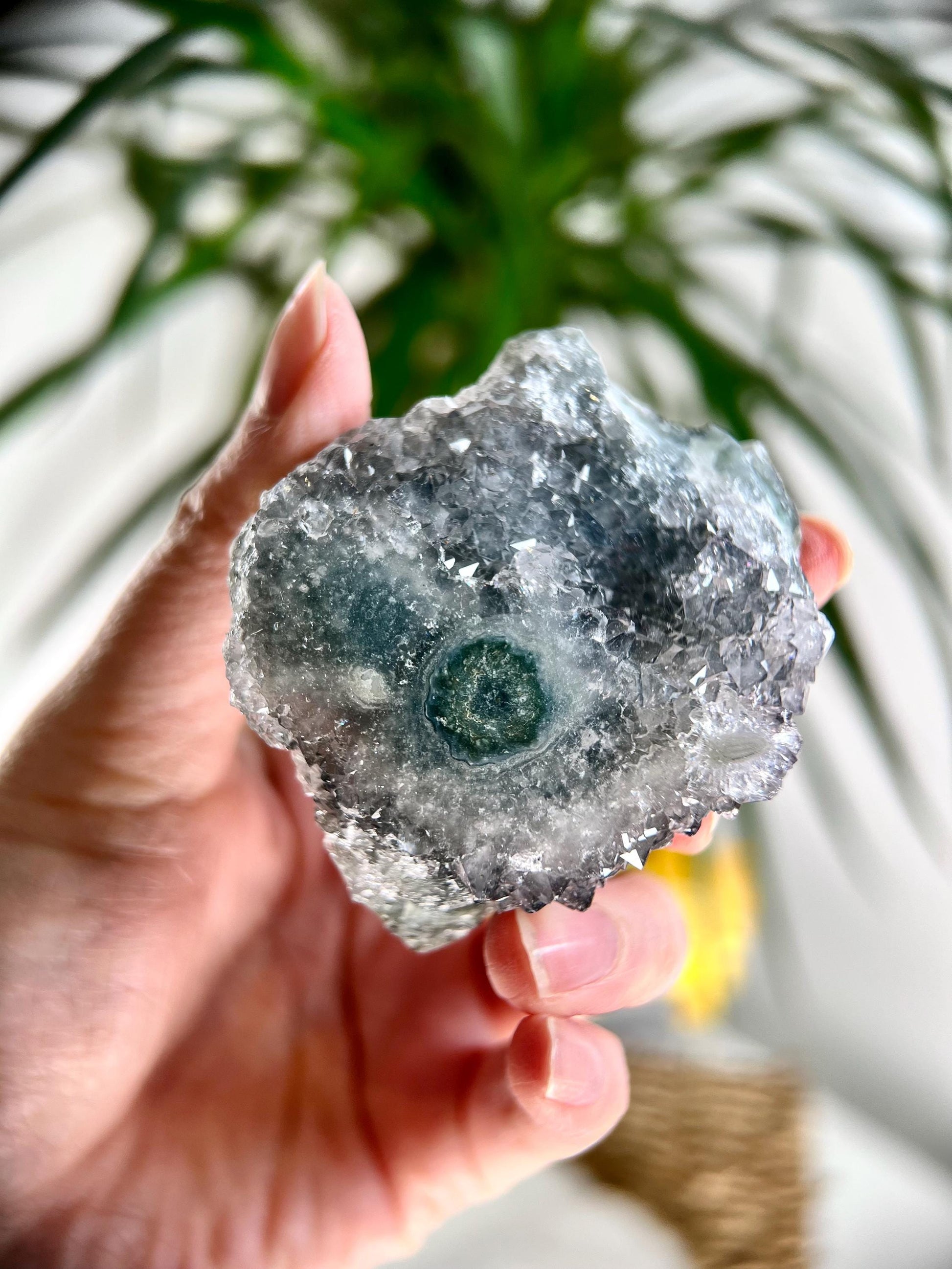 🌍 Origin: This rare and stunning druzy with a stalactite eye is ethically sourced from Uruguay, a region renowned for producing exceptional quartz formations with vibrant energies.