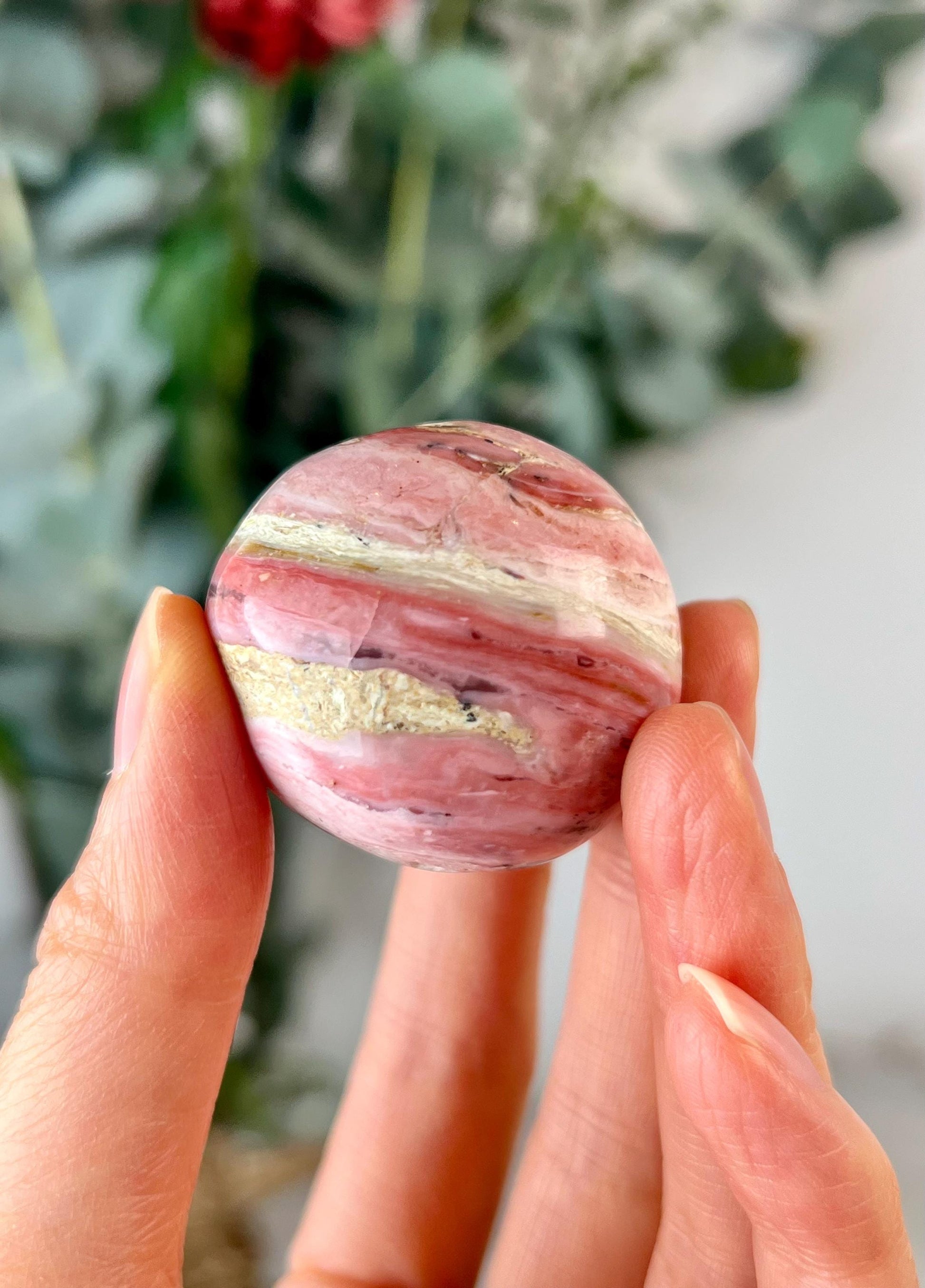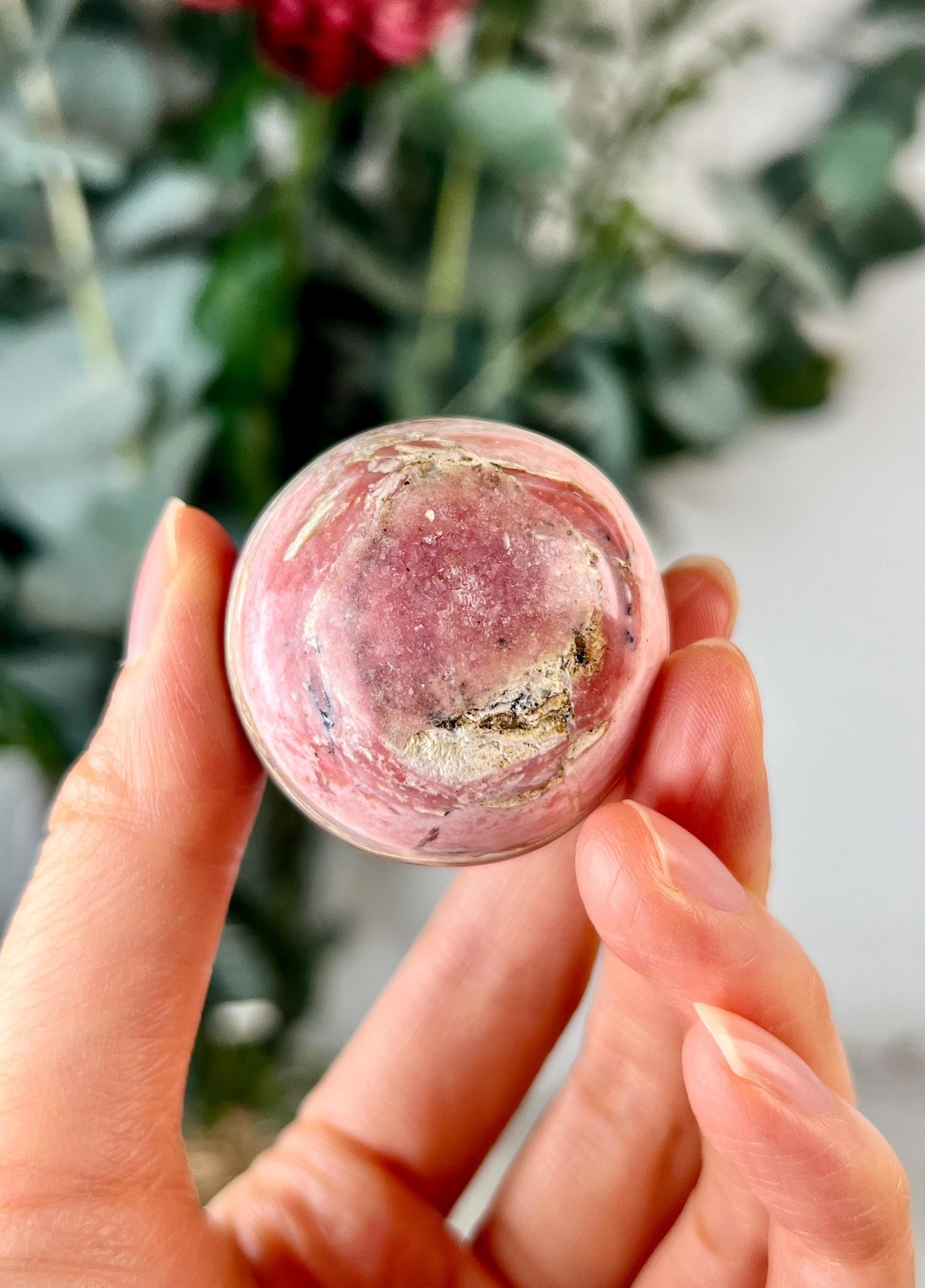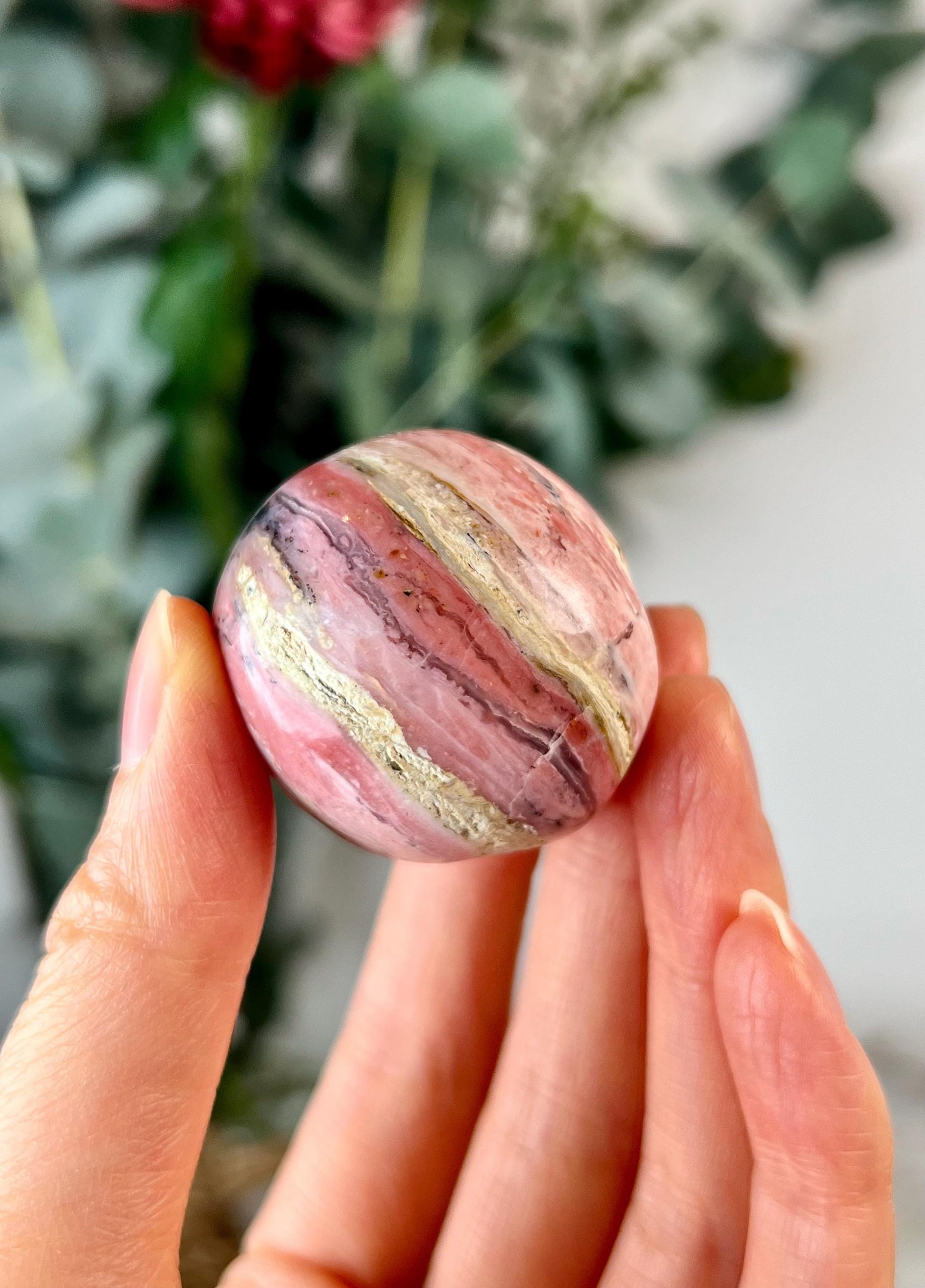 Hand-selected from local miners in Peru, these Pink Opal spheres are polished with love - not perfection. Each one carries the story of the land, the hands who shaped it, and the heart that now holds it.