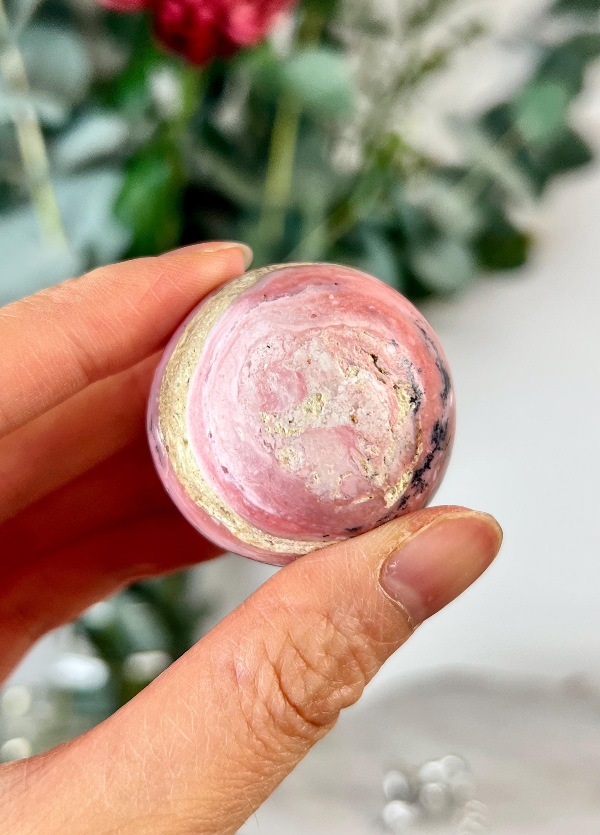 These Grade A Pink Opal Spheres come straight from the sacred lands of Peru, lovingly hand-polished by local miners using traditional methods. Each piece is uniquely organic - not the machine-perfect shape of factory-cut spheres, but a true artisan treasure, full of character, care, and spirit.