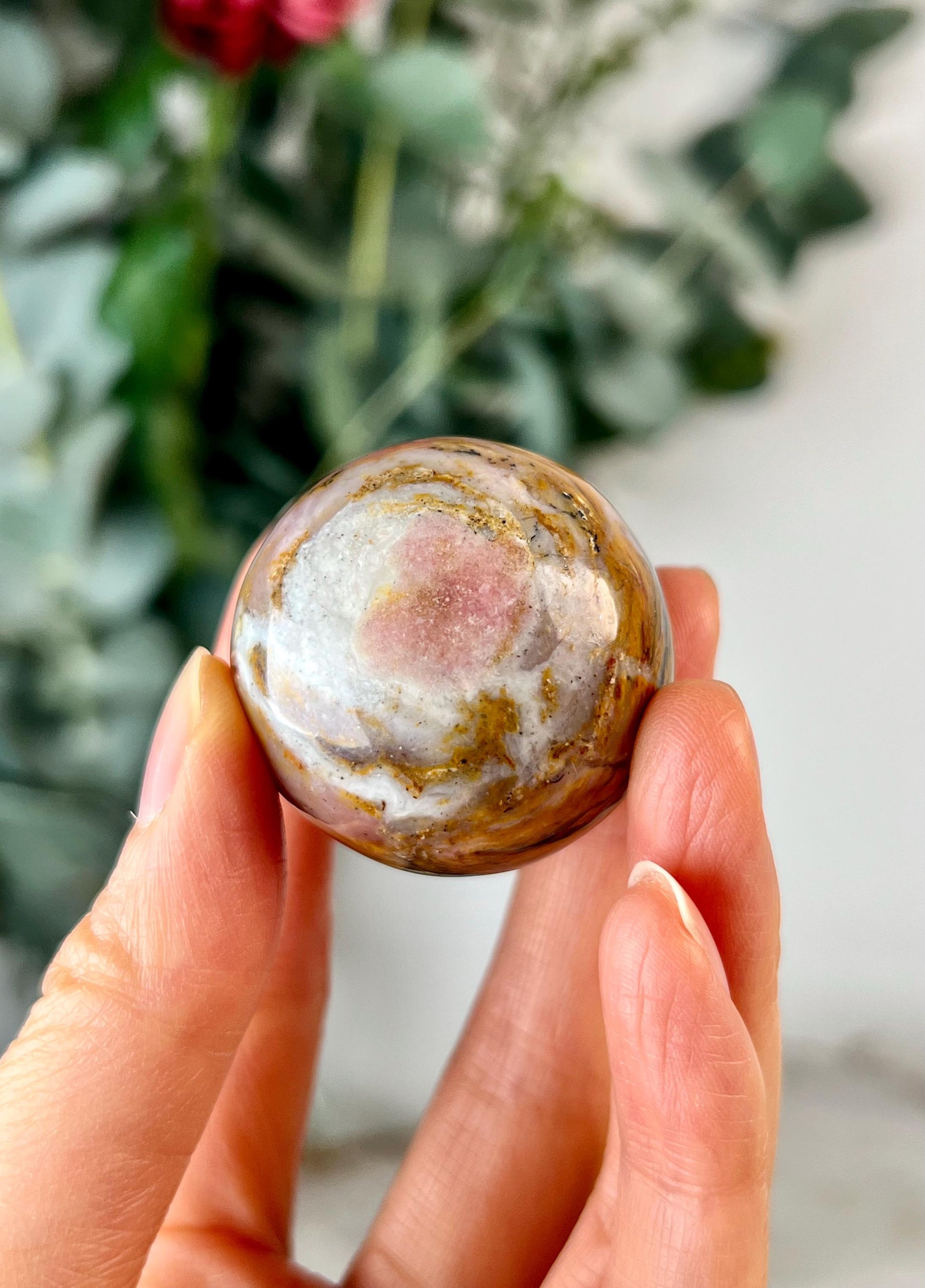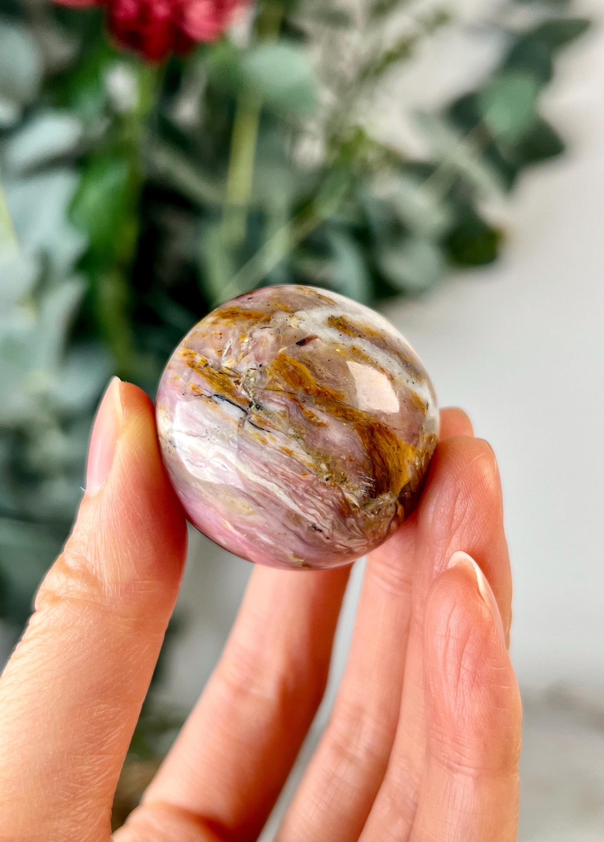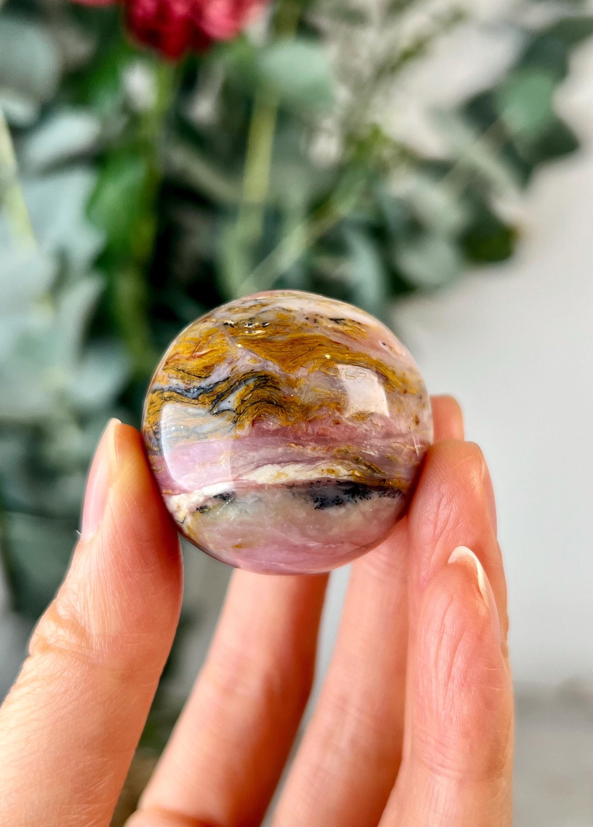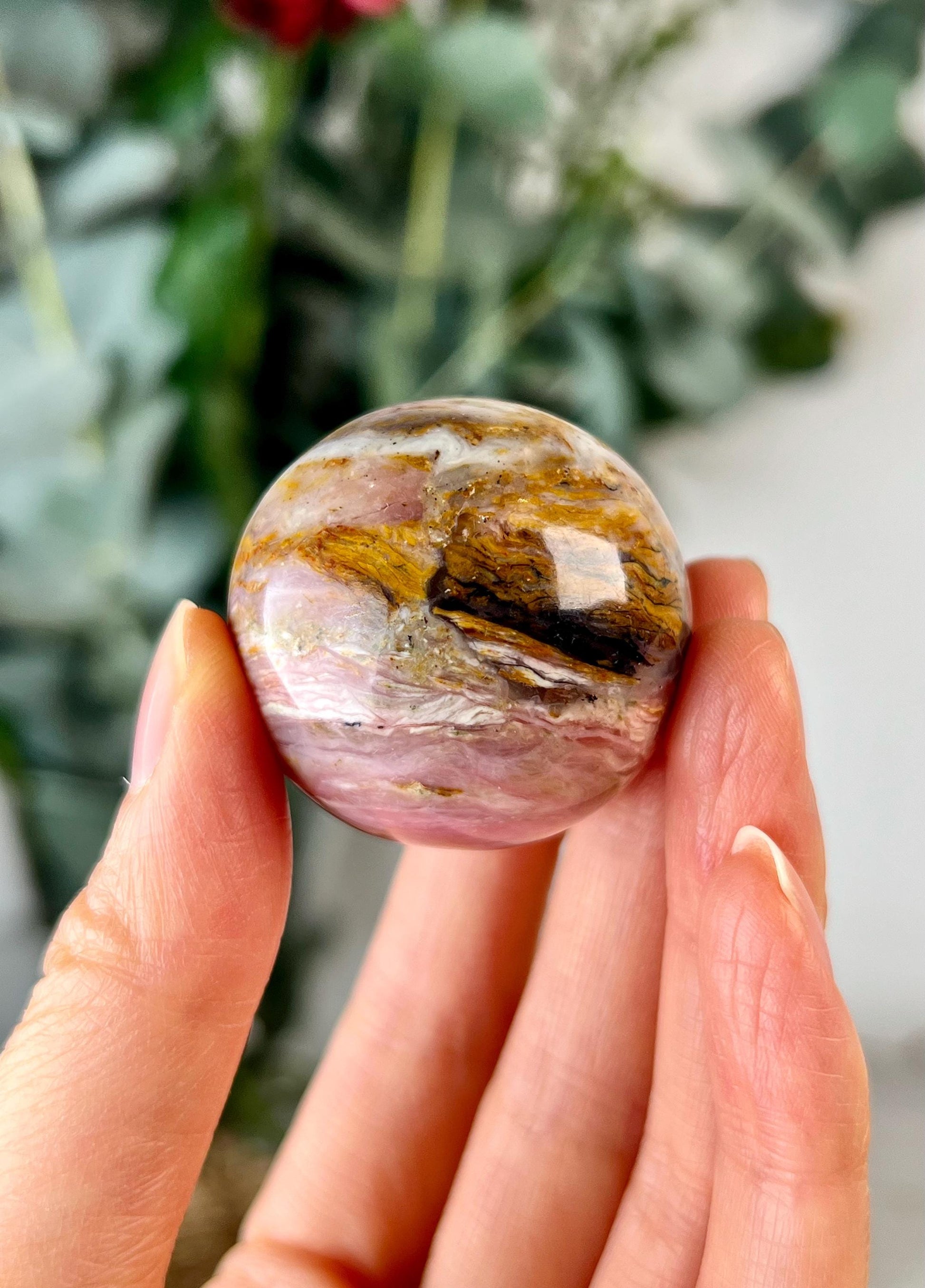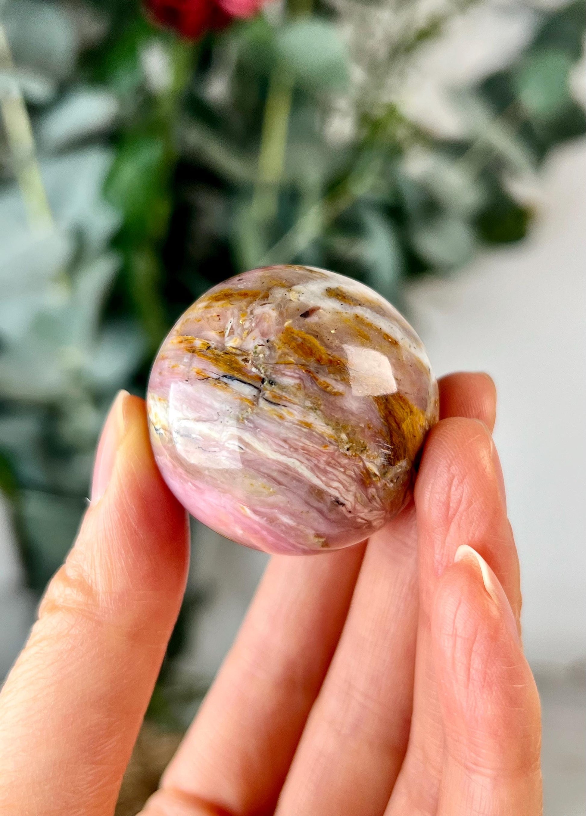 Grade A Pink Opal Sphere from Peru, Organic Hand-Polished, Stone of the Gods, Heart Healing,Spiritual Protection, Ancestral Wisdom PS24, 54g