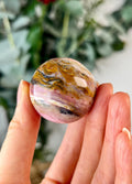 Hand-selected from local miners in Peru, these Pink Opal spheres are polished with love - not perfection. Each one carries the story of the land, the hands who shaped it, and the heart that now holds it.