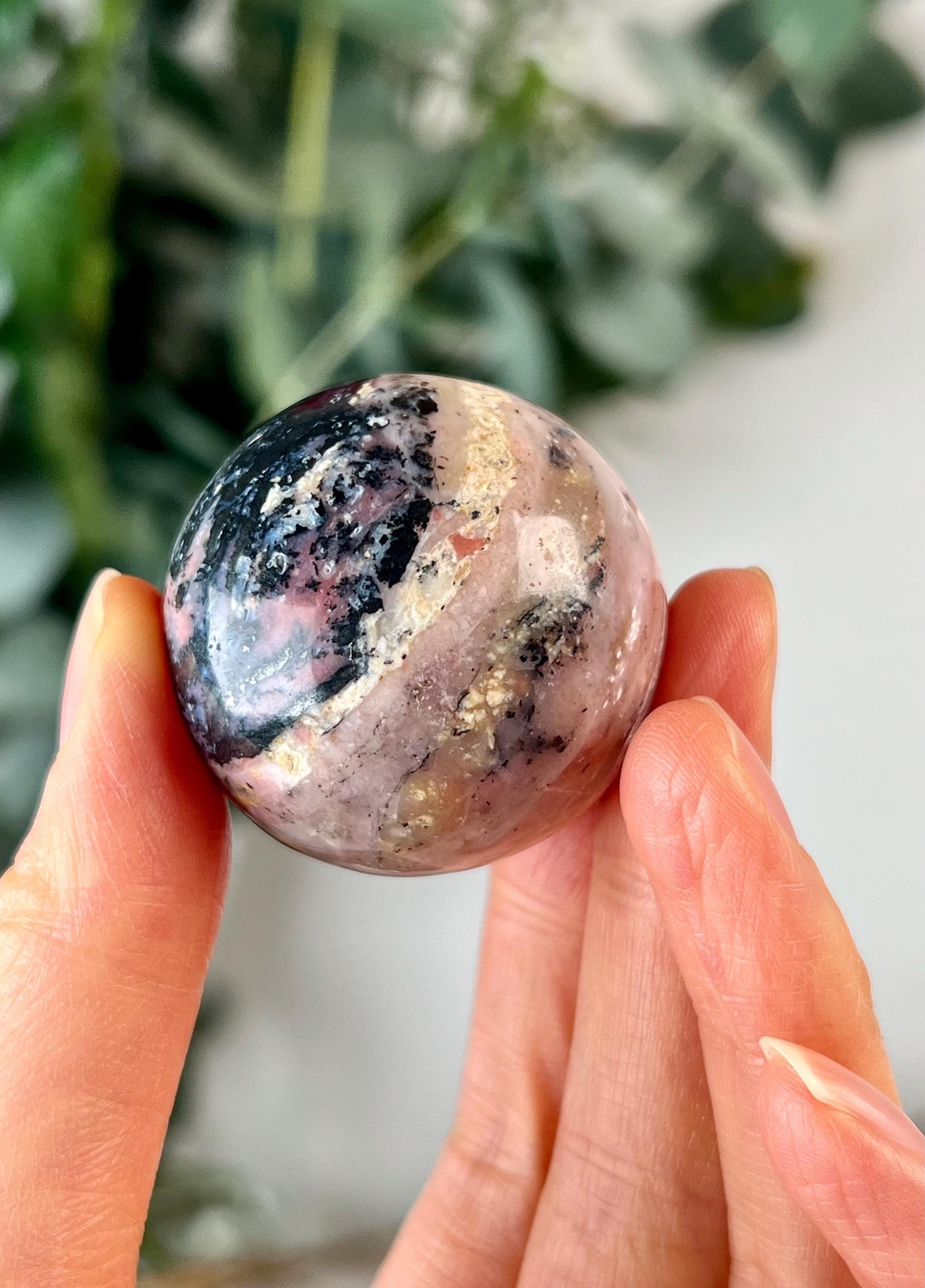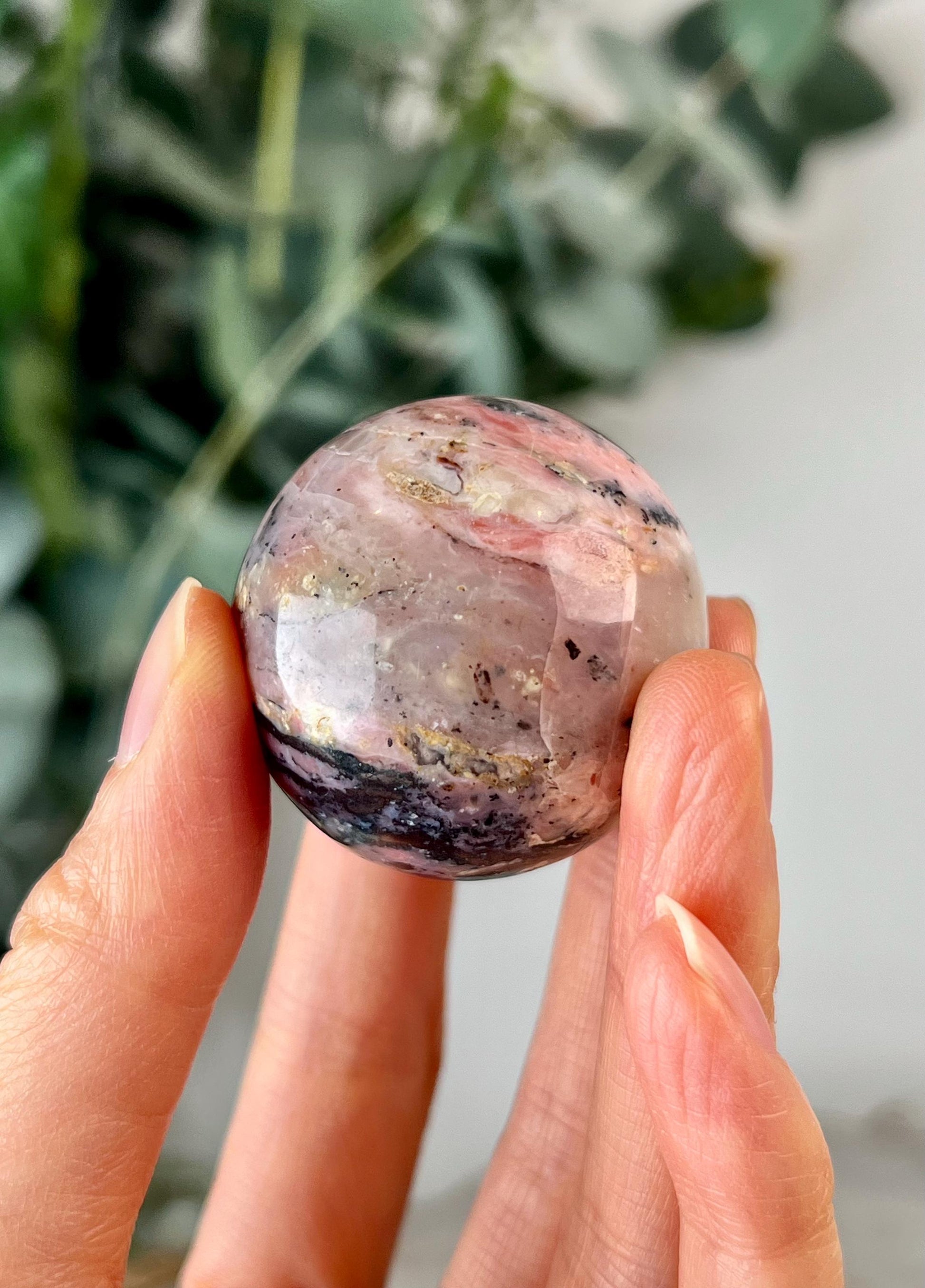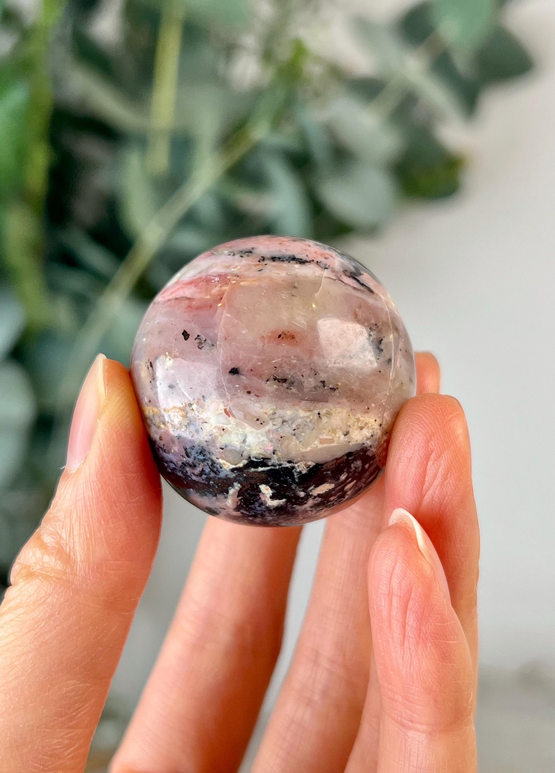 Hand-selected from local miners in Peru, these Pink Opal spheres are polished with love - not perfection. Each one carries the story of the land, the hands who shaped it, and the heart that now holds it.