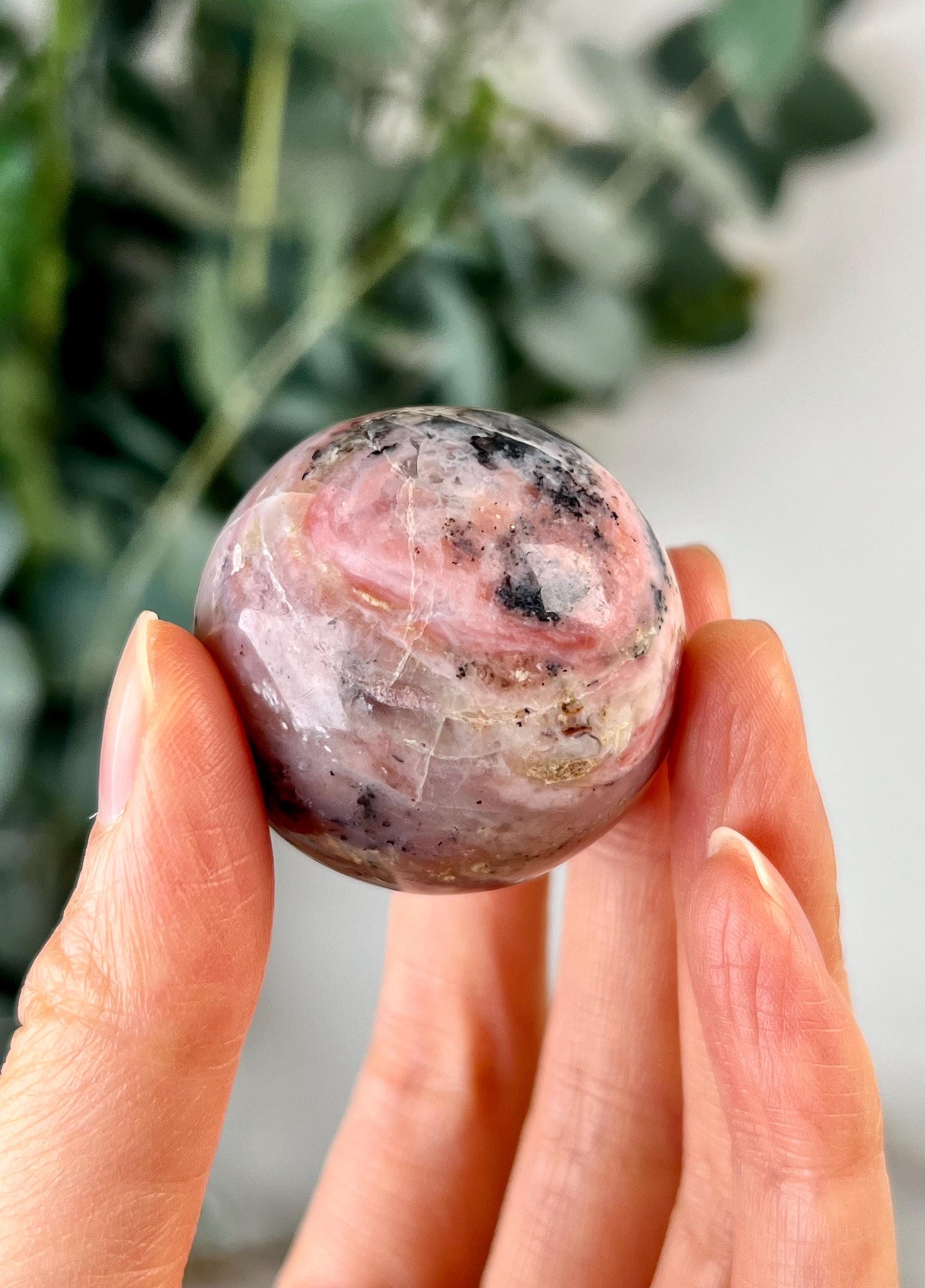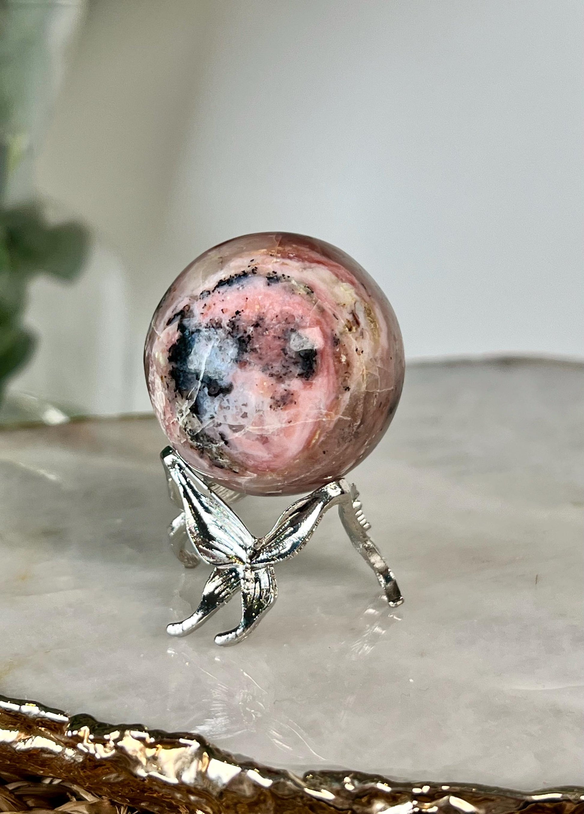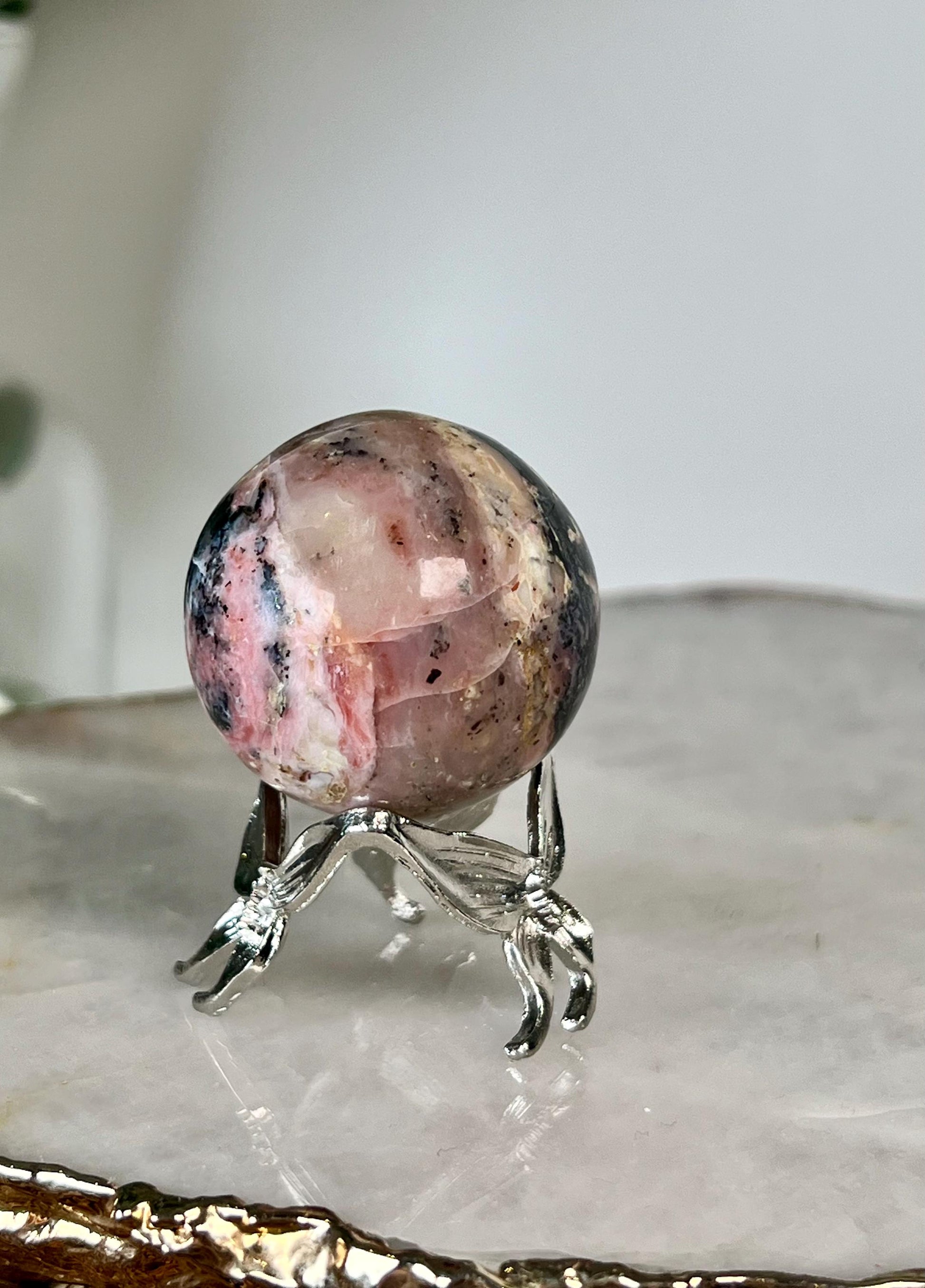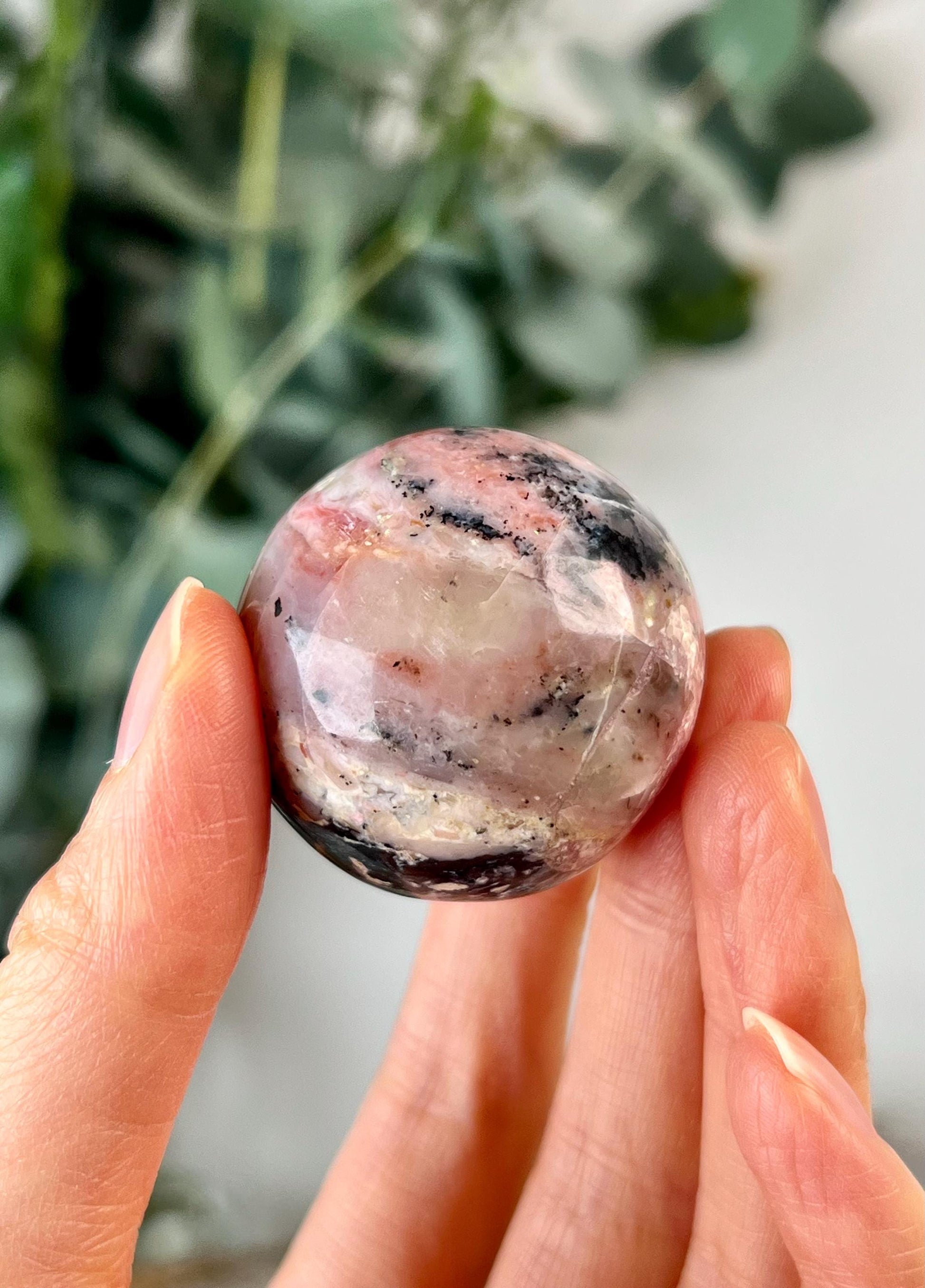 Hand-selected from local miners in Peru, these Pink Opal spheres are polished with love - not perfection. Each one carries the story of the land, the hands who shaped it, and the heart that now holds it.