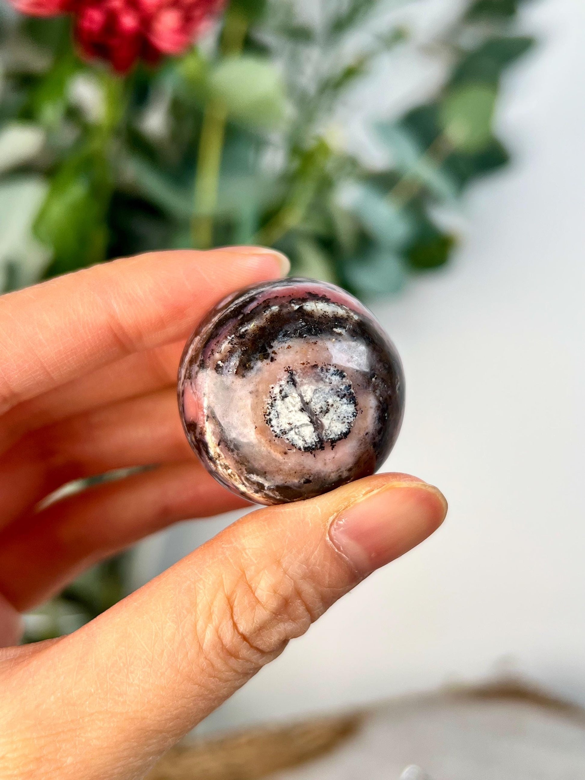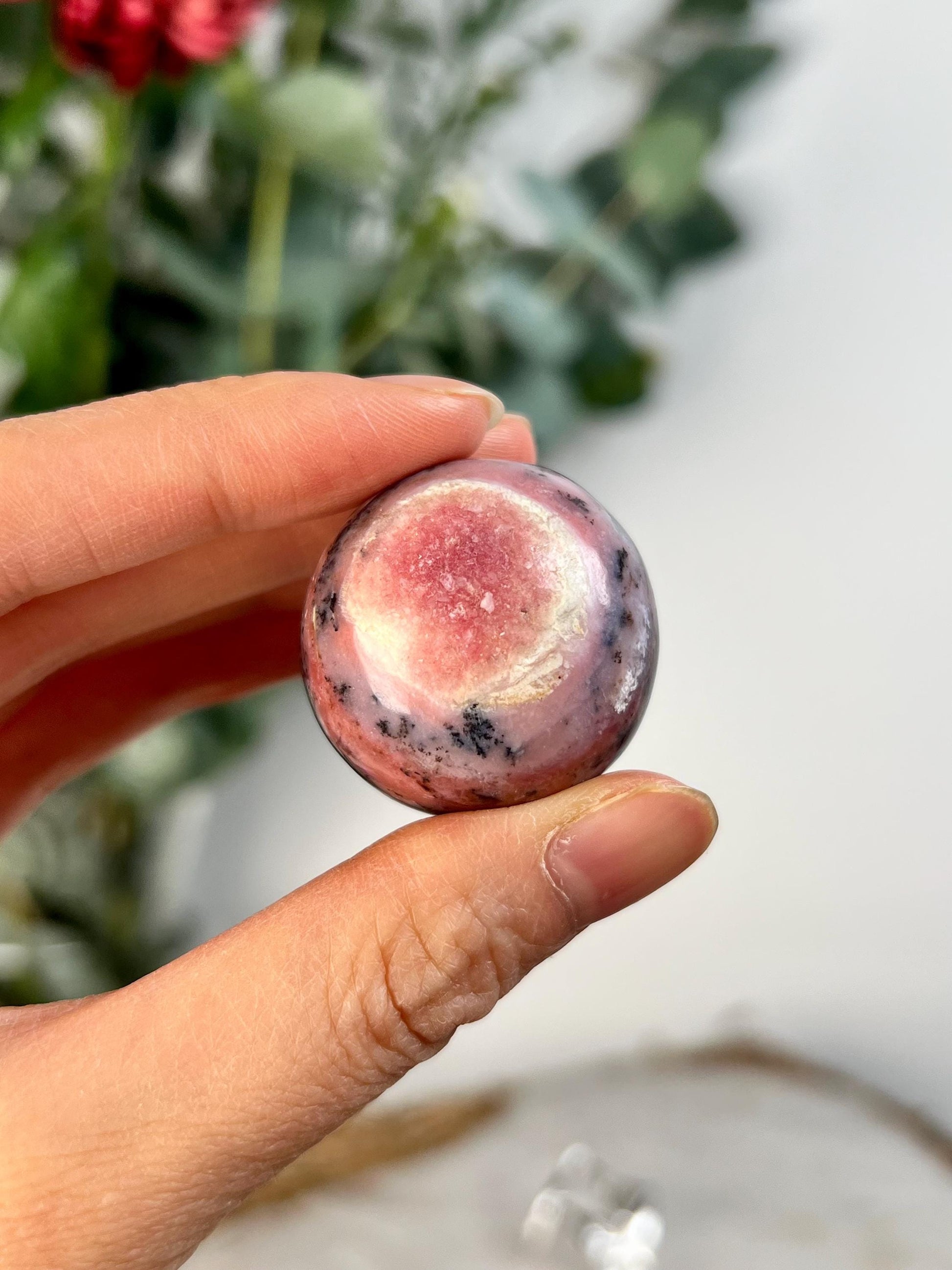 Hand-selected from local miners in Peru, these Pink Opal spheres are polished with love - not perfection. Each one carries the story of the land, the hands who shaped it, and the heart that now holds it.