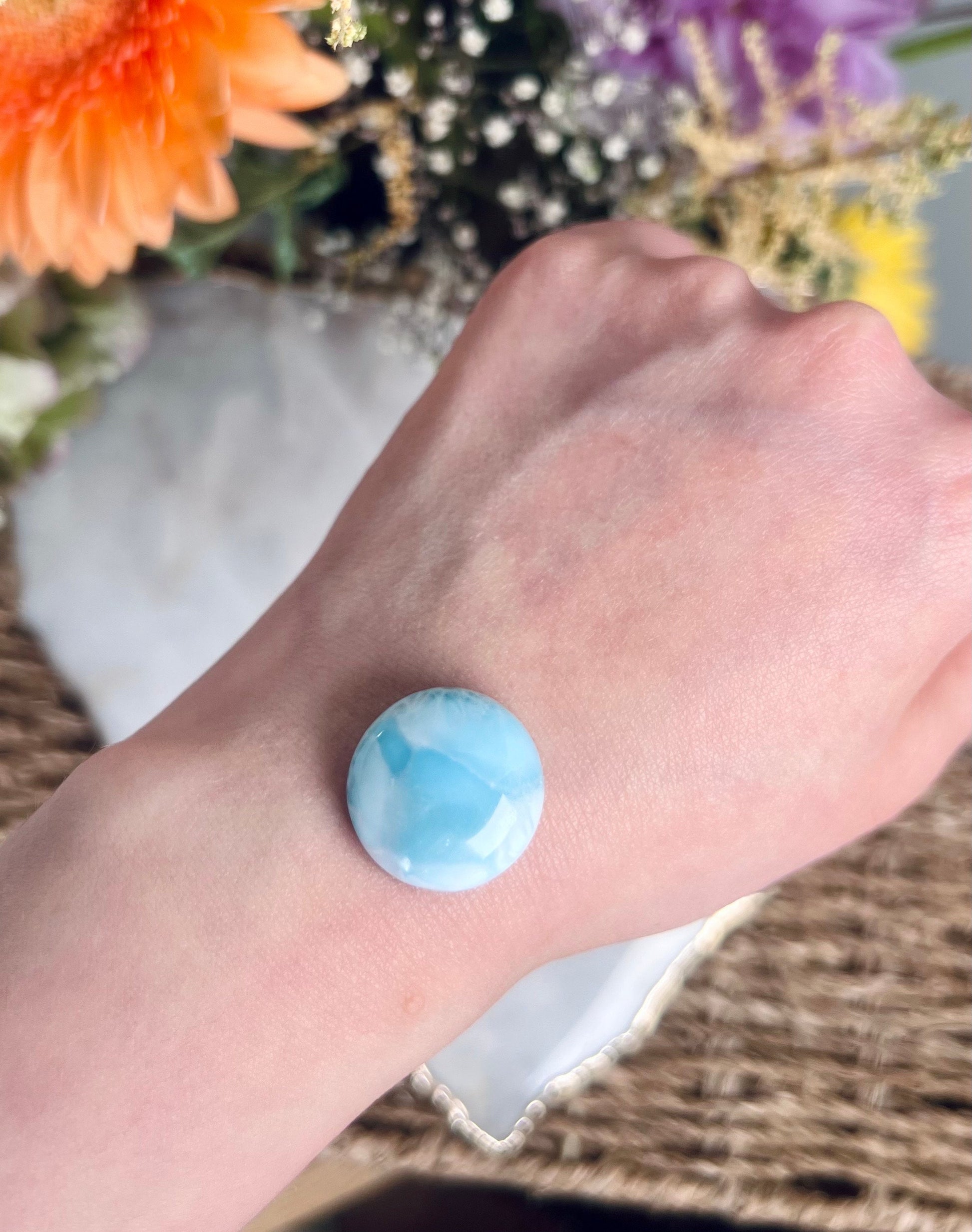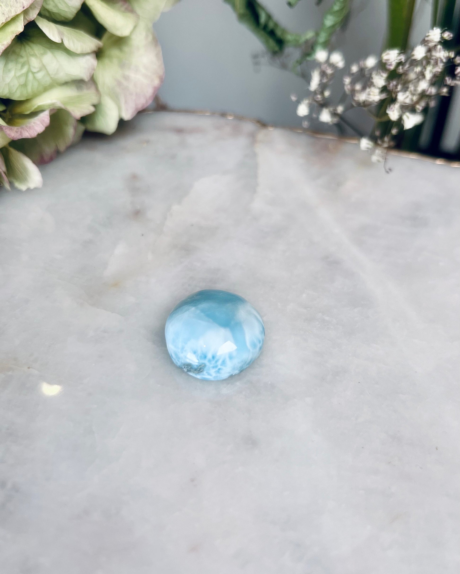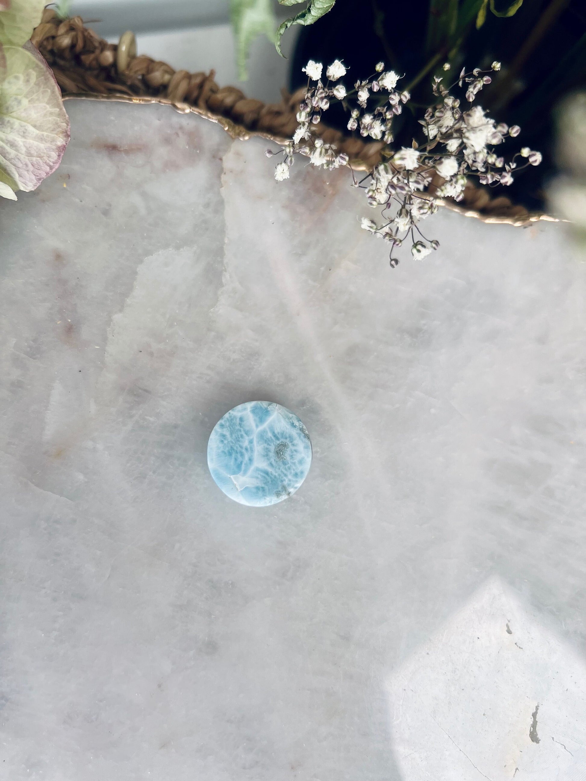 Grade AA 100% Natural Larimar Round Cabochon from Dominican Republic, Good Fortune, Earth Healing Crystal 8g