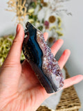 Grade AA Brazilian Amethyst Geode Tower with Agate, Crystal Healing Home Decord, Wealth Attraction and Protective Fengshui EAT12 317g