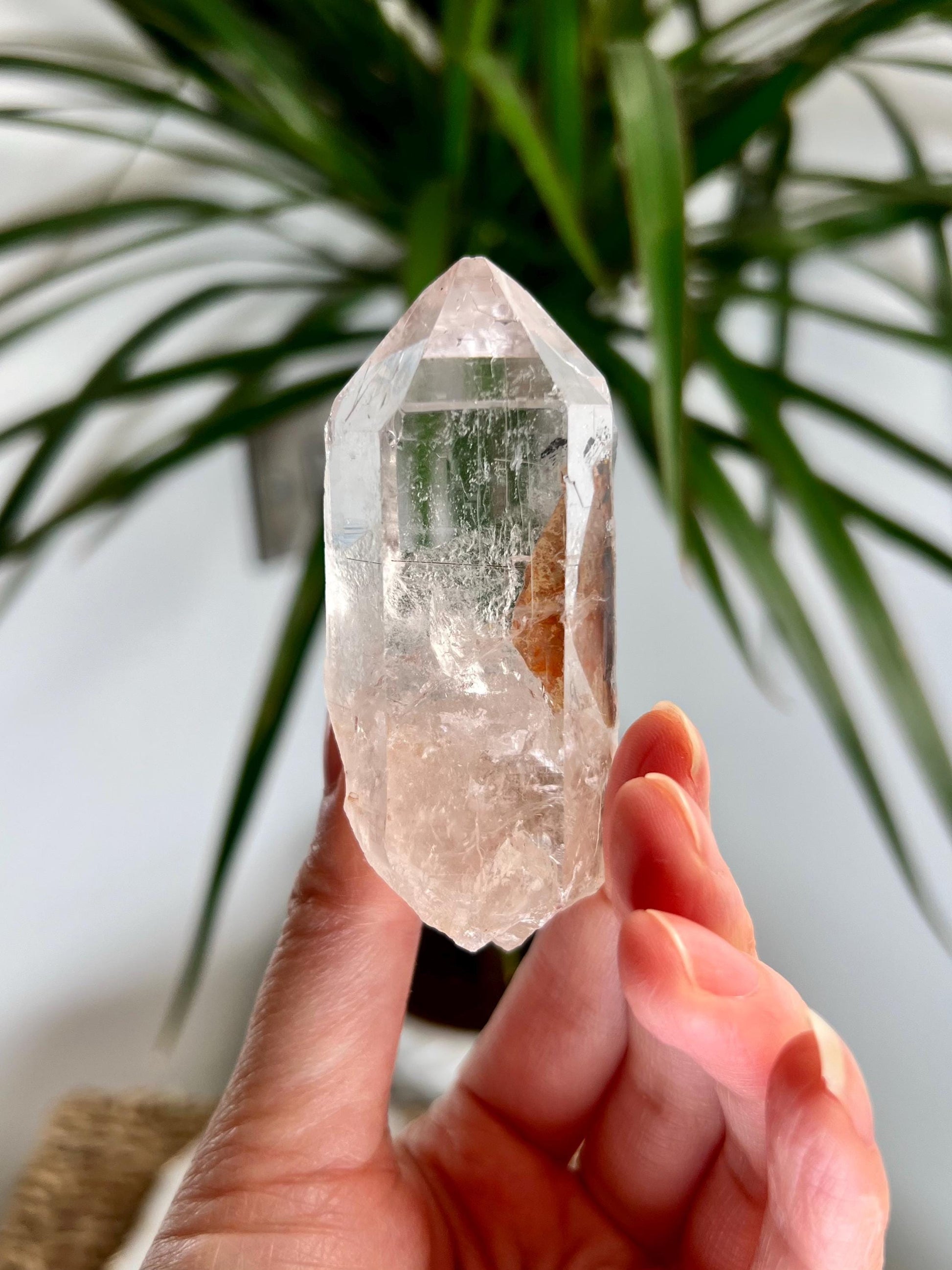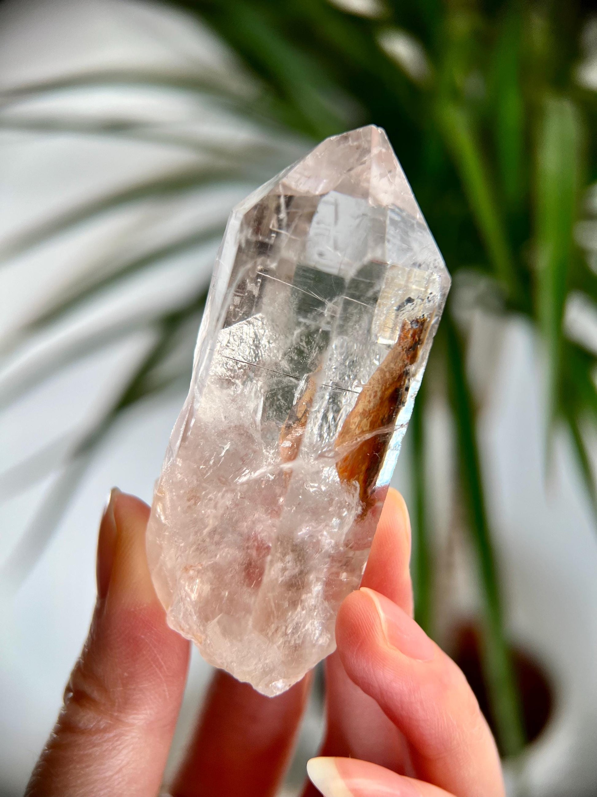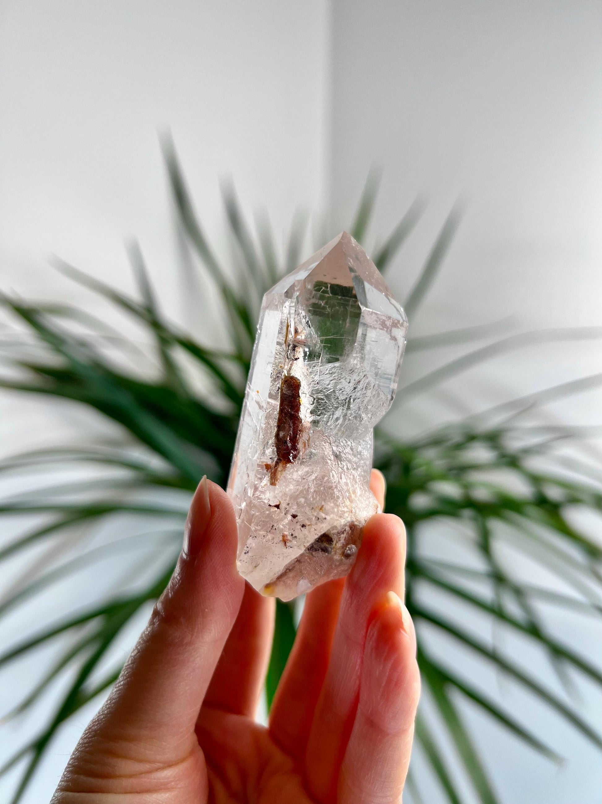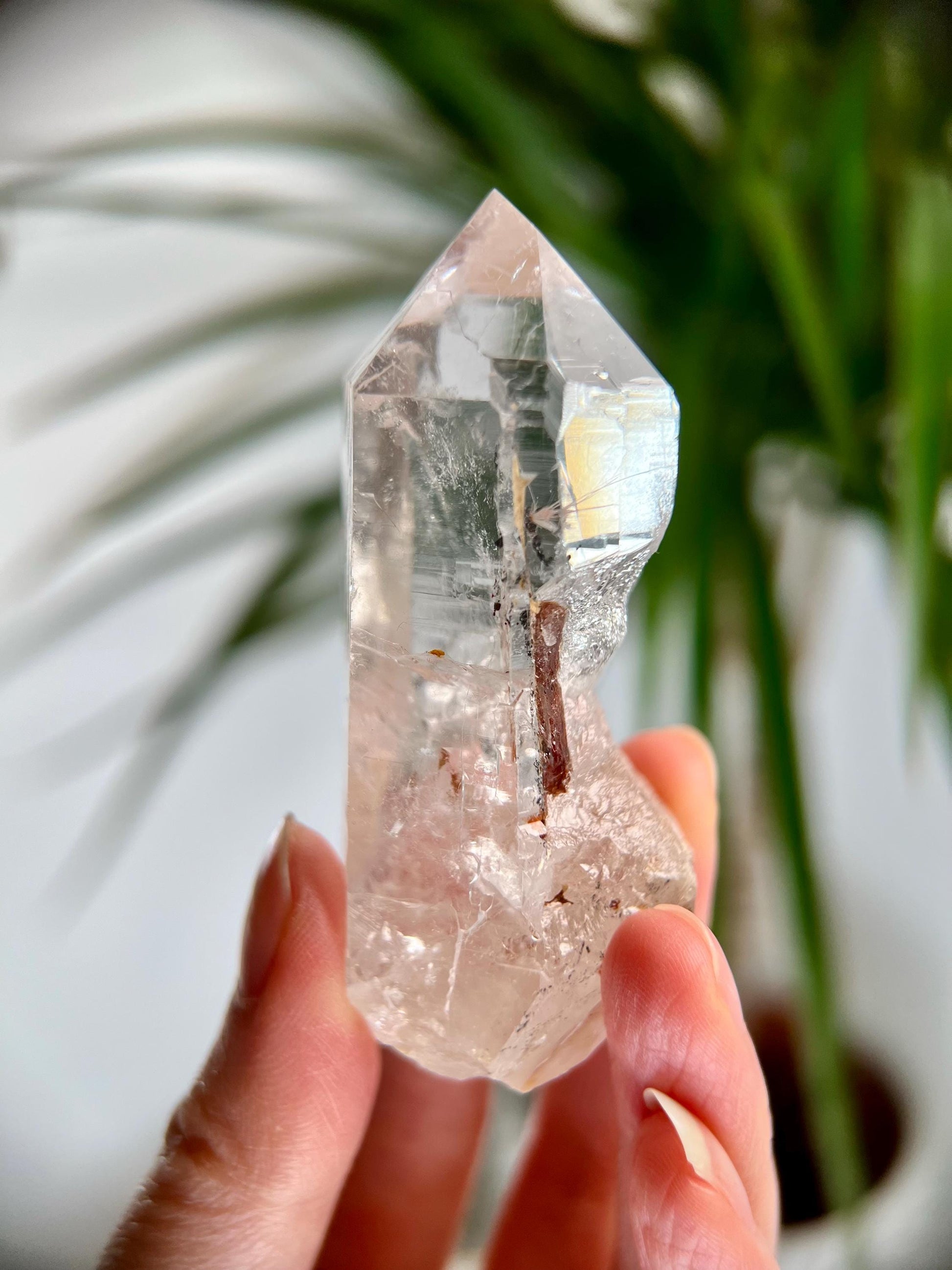 Grade AA Cathedral Lemurian Quartz Point with Iron and Black Rutile, from Diamantina, Brazil- LCC14, 95g