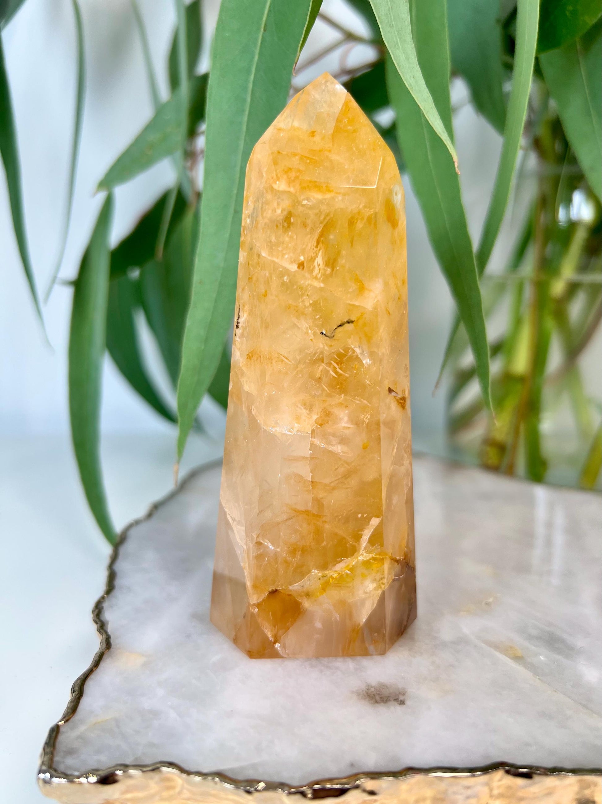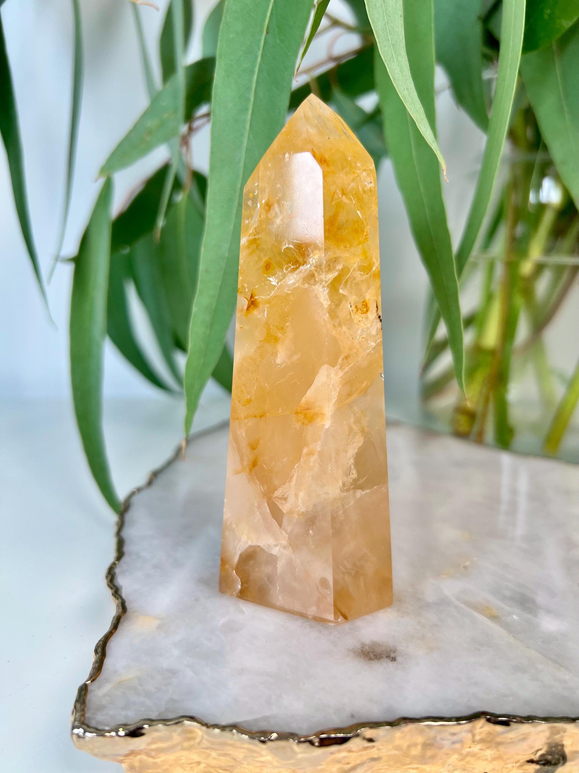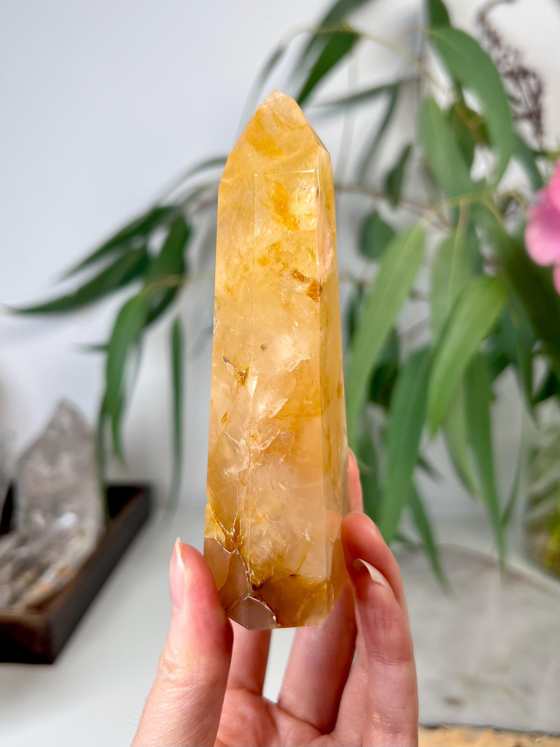 Grade AA Golden Healer Tower - Natural Hematoid Quartz for Ultimate Healing, Abundance, and High Energy Frequency GHC32, 239g