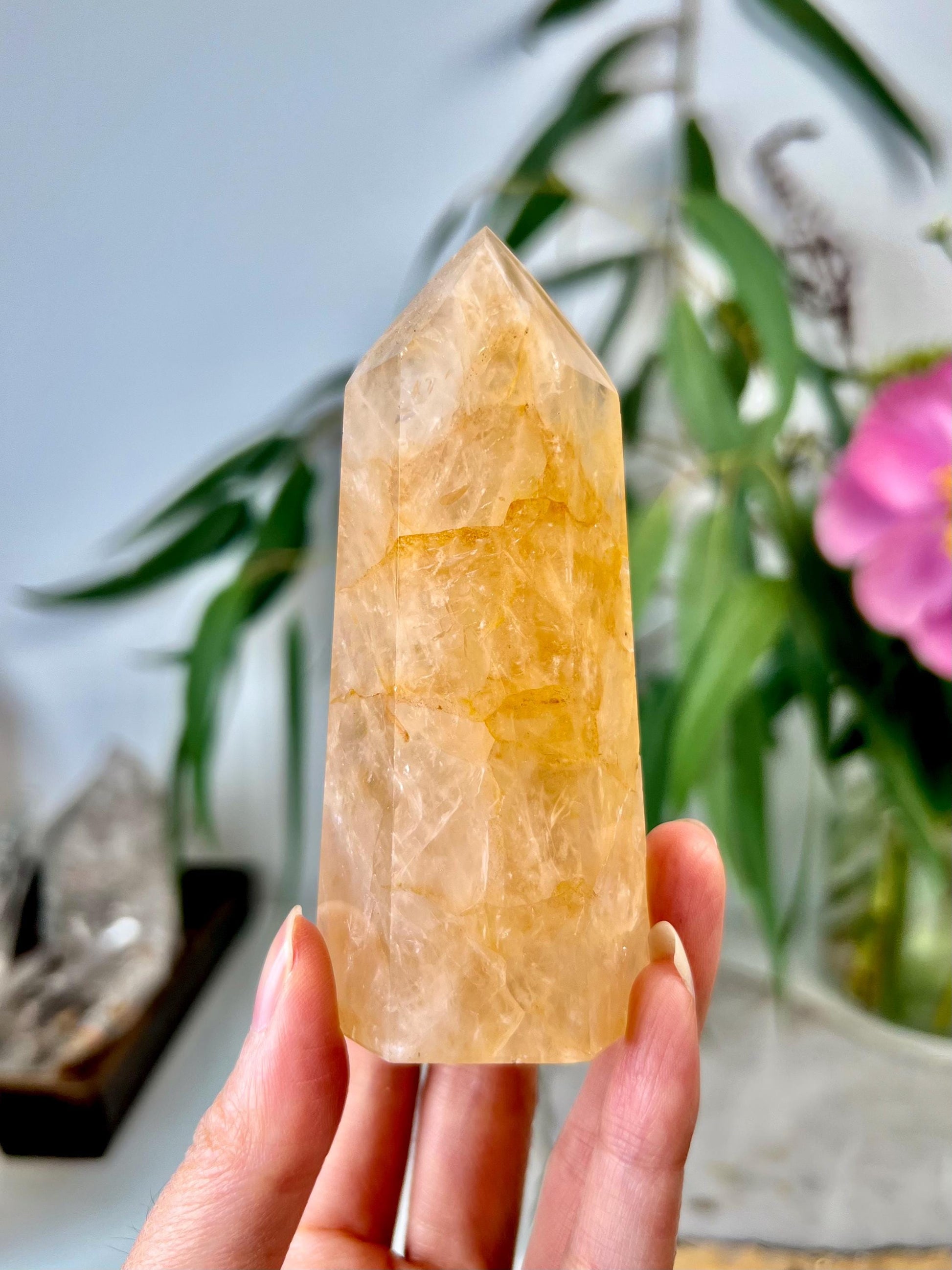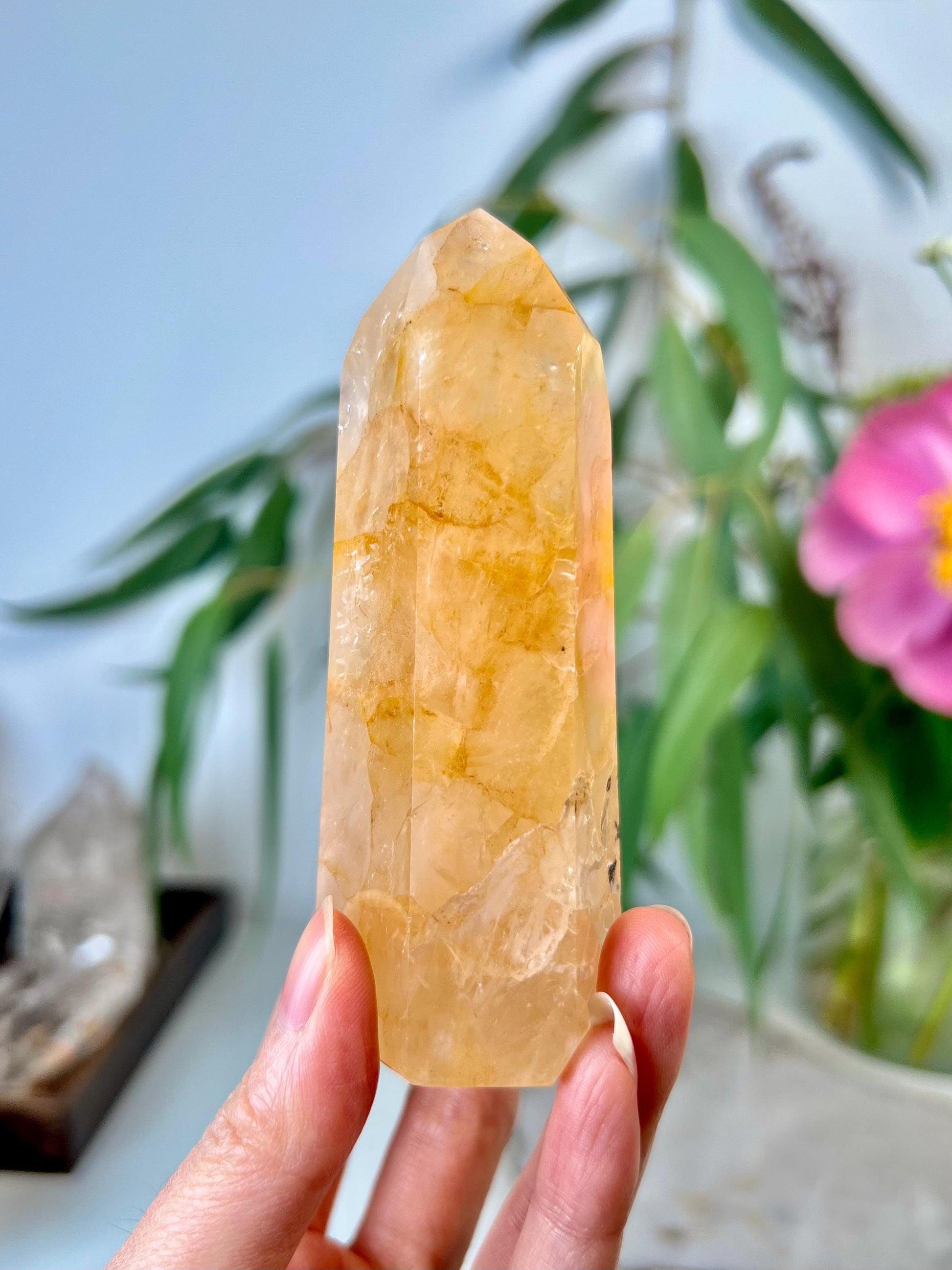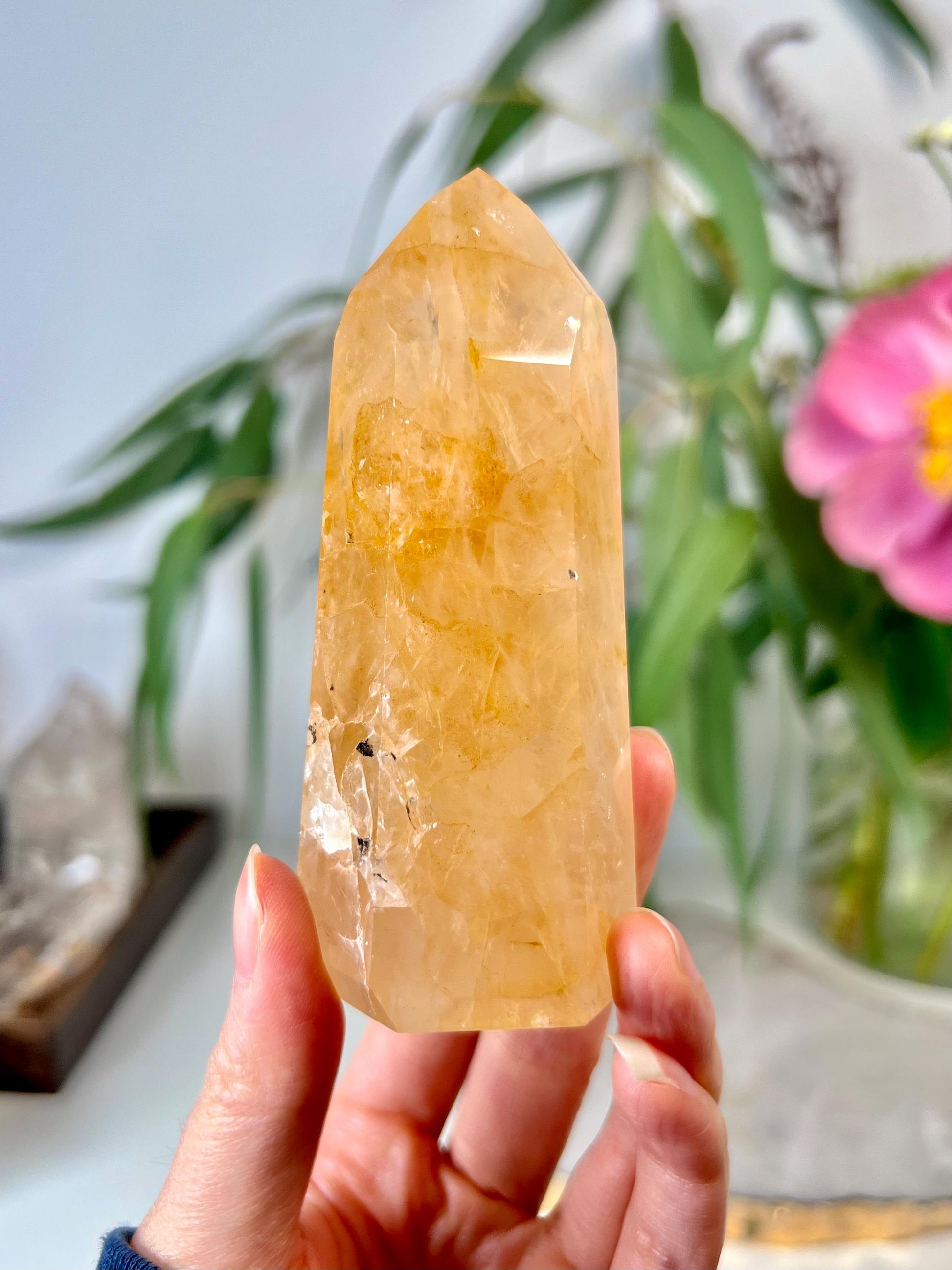 Grade AA Golden Healer Tower - Natural Hematoid Quartz for Ultimate Healing, Abundance, and High Energy Frequency GHC43, 203g